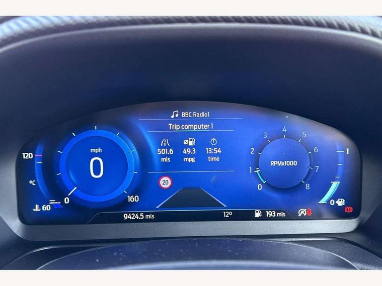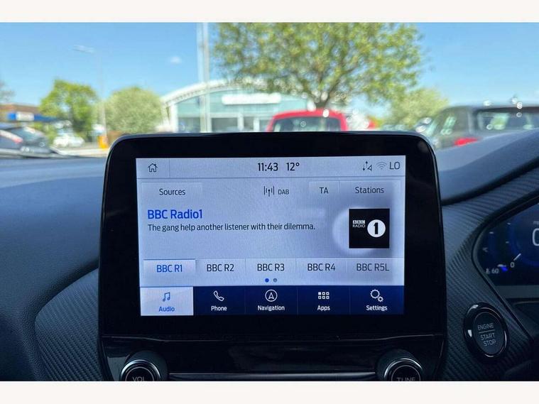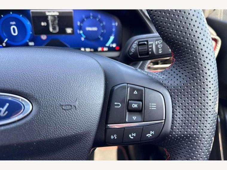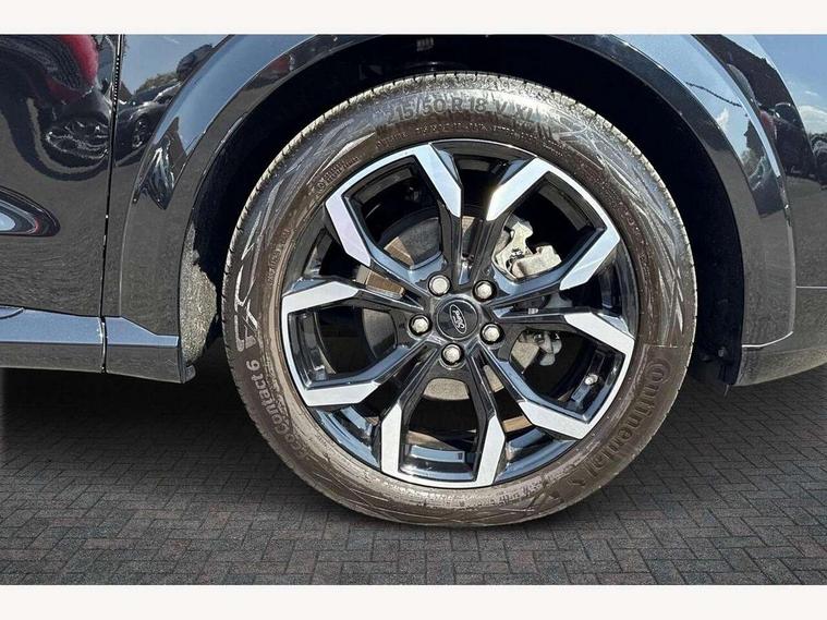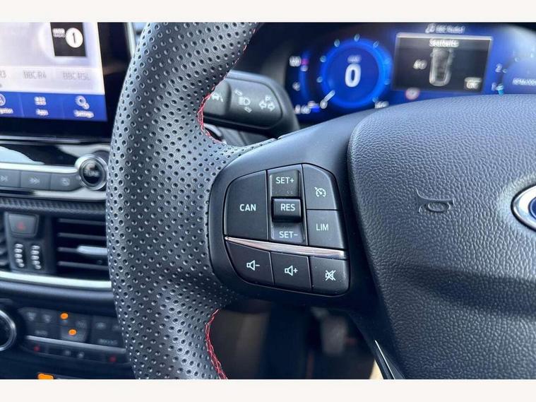 Driver impairment monitor, Emergency call service, Ford easy fuel, Full digital 12.3" instrument cluster, Lane keeping aid with lane departure warning, Power assist steering, Power start button, Rear parking sensor, Selectable drive modes(Normal, Eco, Sport, Slippery and Trail), Speed sign recognition, Sport suspension, Automatic headlights with auto high beam, Automatic rain sensing wipers, Front fog lamps, LED daytime running lights, LED rear lamps, Power foldable heated door mirrors with puddle lamps, Privacy glass to side rear windows and tailgate glass, Quickclear heated windscreen, Rear side wing doors, Rear wiper, ST-Line body styling kit with unique grille, Third brake light, 3 seat bench in 2nd row, Centre console with armrest and stowage, Ford megabox extended bootspace, Front and rear head restraints, Front floor mats, Manual 4 way driver seat adjust with lumbar adjustment, Manual 4 way passenger seat with lumbar seat adjustment, Sensico partial premium upholstery, Single front passenger seat, ST-Line flat bottomed sensico leather steering wheel with leather handbrake and aluminium gear knob, Wireless charging pad with electronic air temperature control (EATC), B&O Premium Audio system + Ford SYNC 3 navigation pack - Puma, 3 rear seatbelts, Child safety lock, Electronic stability control (ESC) and hill start assist, Pedestrian/cyclist detection & post-collision braking, Pre collision assist system, Tyre pressure monitoring system (TPMS), Thatcham alarm, Carbon look interior deco spears,