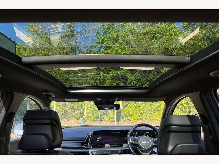12.3" Display with navigation, 12.3" supervision colour cluster display, 360 degree around view monitor, Apple car play/Android Auto with voice control, Blind spot collision avoidance assist, Blind spot view monitor, Drive mode selector, E-call, Forward collision avoidance assist (FCA) - city/pedestrian/cyclist/junction covering, Front and rear parking sensors, Highway Driving Assist (HDA), Intelligent speed limit assist, Kia Connect (UVO), Lane Following Assist (LFA), Lane keep assist, Low washer fluid warning, Parking collision avoidance assist (PCA), Remote smart parking assist, Reversing camera system integrated into centre fascia screen, Smart cruise control with stop and go functionality, Smart power tailgate, Speed sensitive power steering, Trip computer, Windscreen washer level indicator, Wireless Smartphone charger, Intelligent Stop and Go, Bluetooth audio streaming, DAB Radio with MP3, Harman Kardon premium sound system, Rear USB port, Steering wheel mounted audio controls, USB C type charging ports on centre console, USB C type charging ports on side of front seats, USB port for connection of a media device, All round electric windows with drivers and front passenger auto up/down function, Automatic headlight control system, Automatic window defogger, Backlite glass heated with timer, Body colour and black bumper with silver accents, Body colour exterior door handles, Body colour radiator upper garnish and door garnish, Dual LED adaptive headlamps, Electric panoramic glass sunroof (Electric one touch with safety function), Electrically adjustable/heated/folding door mirrors with LED indicators, Front and rear chrome skid plates, Gloss black door mirrors, Gloss black radiator grille, Gloss black side sill and wheel arch body mouldings, Glossy black roof rack, High beam assist, Interior electrochromic mirror, LED daytime running lights, LED front fog lamps, LED High mounted stop light, LED rear combination lamp, Rain sensing wipers with aero blades, Rear fog lamp, Rear privacy glass, Rear side wing doors, Rear spoiler, Rear wiper, Satin finished beltline, Silver coloured inserts to bumpers, Tinted rear glass, Trailer stability assist, 10 way driver/8 way passenger electrically power adjustable seats, 12V power socket in front centre fascia and luggage compartment, 3 seat bench in 2nd row, 3 x passenger assist grips, 40/20/40 split folding rear seat, All-round height adjustable headrests, Ambient lighting, Black headlining, Centre console storage box, Cupholders in rear armrest, D-Shaped sports leather steering wheel and perforated inserts with GT-Line logo, Door courtesy lamps, Drink holder at centre armrest, Driver and front passenger side sunvisors with illuminated vanity mirrors, Driver seat memory function, Drivers seat power lumbar support, Front and rear door storage, Front seat and rear pockets, Front/rear centre armrests, Gear shift indicator, Glovebox illumination, Heated front and outer rear seats, Heated steering wheel, Interior door lock/unlock function, ISOFIX Child seat top tethers and anchor fixings outer rear seats, LED interior personal lamp, LED lighting in overhead console, Luggage area LED light, Luggage area load cover, Luggage net with hooks, Metal paint interior door handles, Paddle shift controls, Rear cabin light, Rear coat hooks, Single front passenger seat, Sports pedals, Suede leather upholstery, Three zone climate control, Tilt/telescopic adjustable steering wheel, Ventilated front seats, Ventilation ducts to rear compartment, Active front headrests, All round 3-point seatbelts, Anti-lock braking system (ABS), Dual front side airbags, Dual horn, Electronic parking brake, Electronic stability control with downhill brake control, Front passenger airbag cut-off switch, Front seatbelt pretensioners + load limiters, Height adjustable front seatbelts, Hill start assist control (HAC), Impact sensing auto door unlocking, Multi collision brake assist, Rear door child safety locks, Rear seat alert system, Traction control, Twin curtain airbags, Twin front airbags, Tyre pressure monitoring system, Advanced anti-theft system including immobiliser and alarm, Door deadlocks, Engine Start/Stop Button with Smart Entry System, Locking wheel nuts, Speed sensitive auto door locking, Visible vehicle identification number, Aluminium pattern finish centre fascia and door garnish, 18" GT-Line alloy wheels, Michelin tyres, Tyre mobility kit,