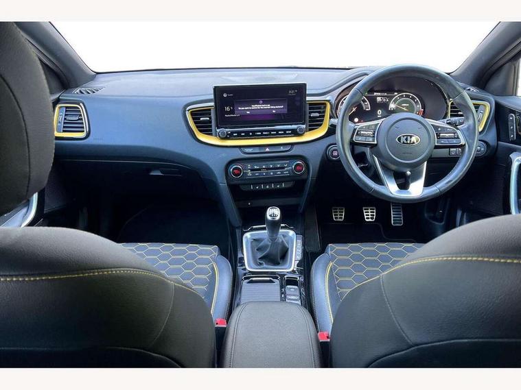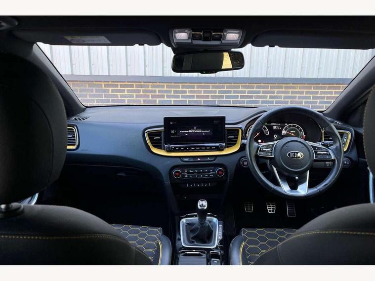 10.25" touchscreen satellite navigation with telematics, 12.3" TFT supervision cluster display, Android auto with voice control, Apple car play with voice control, Blind spot collision warning, Bluetooth with Voice Recognition & Music Streaming, Cruise control + speed limiter, Driver attention warning, Forward Collision-Avoidance Assist (FCA) - City/Pedestrian/Cyclist, Intelligent speed limit warning, Kia connected services featuring TomTom live, Lane keep assist, Motor driven power steering, Reversing camera with dynamic guide lines, Smart park assist system (SPAS) with parallel/perpendicular/reverse with front/rear parking sensors, Smart power tailgate, Trip computer, Wireless Mobile Phone Charger, Intelligent Stop and Go, DAB Radio with MP3, Front USB port, JBL Premium sound system with 8 speakers, Steering wheel mounted controls, USB Fast Charger in Front Centre Console, All-round Electric Windows with Auto Up & Down Function, Auto dimming rear view mirror, Automatic defog system, Automatic headlights, Black wheel arch extensions, Body colour bumpers, Body colour exterior door handles, Body colour side sill mouldings, Body coloured rear spoiler, Dark chrome and satin chrome radiator grille, Electrically folding, adjustable and heated door mirrors with integrated LED indicator lights, Gloss black shark fin antenna, Heated rear window with timer, High beam assist, High gloss black door mirrors with matt black lower housing, LED Bi-Function projection headlights, LED daytime running lights, LED High-mounted Brake Light, LED rear fog light, LED rear lights, Panoramic sunroof with tilt/slide function and automatic electric roll blinds, Premium paint, Privacy glass - Rear windows and tailgate, Projection front fog lights, Rain sensing front wipers, Rear wiper, Satin chrome window surround, Silver roof rails, Tinted glass, Wide view drivers door mirror, Windscreen Washer Level Warning, 12V power socket in front centre console, 12V socket in luggage compartment, 40:20:40 split folding rear bench seat, All-round height adjustable headrests, Aluminium pedals, Centre console with cupholders and sliding cover, Centre Console with Storage Box and Sliding Armrest, Chrome interior door handles, Cloth/faux leather upholstery, Driver + front passenger electric lumbar support, Driver seat memory function, Driver seat power height adjuster, Dual zone automatic air conditioning, Faux leather door trim with yellow stitching, Front and rear door storage, Front cabin LED map light with sunglasses case, Front Passenger Seat Height Adjuster, Front seat and rear pockets, Heated front seats, Heated outer rear seats, Heated steering wheel, Illuminated driver and front passenger sunvisors with vanity mirror, ISOFIX Child seat top tethers and anchor fixings, Leather steering wheel and gearshift, Luggage area light, Luggage area parcel shelf, Luggage hooks, Rear cabin light, Rear centre armrest with cupholders, Tilt/telescopic adjustable steering wheel, ABS with Electronic Brakeforce Distribution (EBD) and Brake Assist System (BAS), All round 3-point seatbelts, Dual front side airbags, Dual horn, Electronic parking brake, Electronic stability control (ESC) and vehicle stability management (VSM), Front passenger airbag cut off switch, Height adjustable front seatbelts, Hill start assist control (HAC), Impact sensing auto door unlocking, Rear door child safety locks, Seatbelt reminder warning, Traction control, Twin curtain airbags, Twin front airbags, Tyre pressure monitoring system, Alarm system, Engine Immobiliser & Deadlocks, Engine Start/Stop Button with Smart Entry System, Locking wheel nuts, 18" Alloy wheels, Temporary spare wheel,