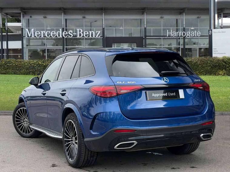 11.9" high resolution multimedia colour display, 12.3" Digital individually configurable instrument display, Acoustic presence indicator, Active lane keeping assist, Attention assist, Blind spot assist, Bluetooth interface for hands free telephone, Collision prevention assist plus, Direct steer speed sensitive steering, DYNAMIC SELECT with a choice of driving modes (ECO, Comfort, Sport and Individual), eCall emergency call system, ECO start/stop function, Fingerprint scanner, Fluorescent jacket for driver, Hard disc navigation, Head up Display, Instrument display in miles with English lettering, MBUX augmented reality for navigation, MBUX navigation premium, MBUX voice control activated by keywords "Hey Mercedes", Mercedes me connect, Multi function trip computer, Outside temperature display, Remote boot release, Remote services plus, Road sign recognition system, Service indicator (ASSYST), Smartphone integration, Status display for rear seat belts in instrument cluster, Tailgate, Traffic sign assist, Wireless charging system for mobile devices in the front, 48V Mild hybrid technology, 4MATIC permanent four wheel drive, 62 litre fuel tank, 9G TRONIC plus automatic transmission, Petrol Particulate Filter (PPF), Residual engine heat utilisation, Burmester 3D surround sound system, DAB digital radio tuner, MBUX extended functions, Pre installation for Mercedes Benz Link, Sound personalisation, Adaptive brake lights, Adaptive high beam assist plus, Aluminium look running boards with rubber studs, AMG bodystyling front apron, rear apron and side skirts, AMG Line exterior, Auto headlights, Black roof rails, Body colour bumpers, Body colour door mirrors, Digital light LED headlights, Electric panoramic glass sunroof, Electrically adjustable door mirrors, Front and rear electric windows, Headlight washers, Heat and noise insulating acoustic glass, Heat insulating dark tinted glass, Heated rear window, High level LED brake light, Integrated LED daytime running lights, LED indicator lights, LED rear fog lights, LED tail lamp, Motor way mode function and locator lighting, Radiator grille with Mercedes Benz pattern and integreated Mercedes star and louvre in dark grey matt with chrome inlay and black frame, Rain sensor windscreen wipers, Range adjustable headlights, Rear side wing doors, Rear wiper, Transparent Bonnet, Two chrome plated tailpipe trim elements, Variable front intermittent wipers, Welcome and follow-me home light functionality, Wheel arch liners in the vehicle colour, 3 seat bench in 2nd row, 40:20:40 split folding rear seats, Ambient lighting premium with projection of brand logo, AMG floor mats, AMG line interior, Artico man-made leather upholstery, Audio and onboard settings control on multifunction steering wheel, Automatic child seat recognition sensor, Black fabric roof lining, Comfort seats, Double cup holder in centre console, Easy-pack removable load compartment cover, Electrically height/reach adjustable steering column, Front centre armrest with stowage compartment, Front head restraints, Galvanised steering wheel gearshift paddles, Heated front seats, Heated steering wheel, Illuminated door sill panels with Mercedes Benz lettering, Illuminated glove compartment, Instrument panel and beltlines in ARTICO manmade leather in nappa look, Multicontour and climatised front seats, Multifunction sports steering wheel in nappa leather, Partition net, Rear centre headrest, Rear head restraints, Rear top tether child seat ISOFIX attachment, Single front passenger seat, Sports pedals with stainless steel surfaces and rubber studs, Sun visors, THERMATIC automatic climate control, Anti theft protection package - GLC, Boot comfort package - GLC, Easy tailgate pack - GLC, Exterior chrome package - GLC, Interior chrome package - GLC, Interior lighting pack - GLC, Keyless-Go comfort package - GLC, Memory pack - GLC, Mirror pack - GLC, Night package - GLC Urban Edition, Parking package with 360 degree camera - GLC, Stowage space package - GLC, USB Plus Pack - GLC, 3 rear 3 point seatbelts, Anti-lock braking system (ABS), ASR traction control, Automatic front passenger airbag deactivation, Black seat belts, Brake calipers with Mercedes-Benz lettering + perforated brake discs, Braking system with larger brake discs on the front axle, Child proof door locks, Dual-stage airbags - driver and front passenger, driver knee bag and window bags for driver, front passenger and rear passengers, Electronic parking brake, Electronic stability programme (ESP) with curve dynamic assist and cross wind assist, Front and rear seatbelt reminder, Front passenger seat occupancy sensor, Front seatbelt pretensioners, Hill start assist, Tyre pressure monitoring system, Warning triangle and first aid kit, Automatic door locking, Guard 360 degree vehicle protection plus, Interior protection/immobiliser, Remote central locking, Black open pore aluminium lines wood trim with centre console in black fine structure, 20" AMG multi spoke light alloy wheels in painted black with high sheen finish, Summer tyres, TIREFIT with tyre inflation compressor,