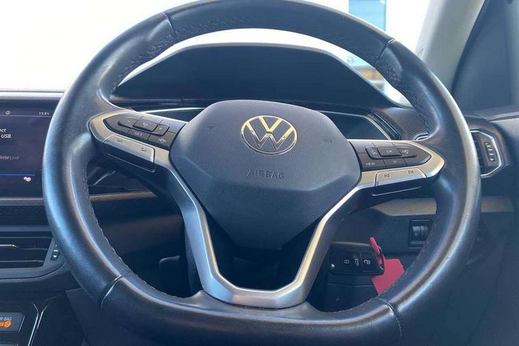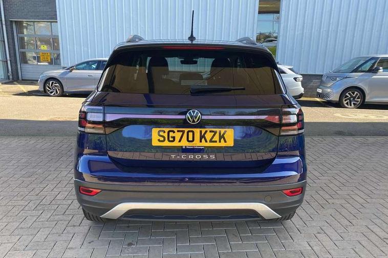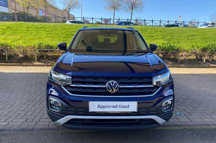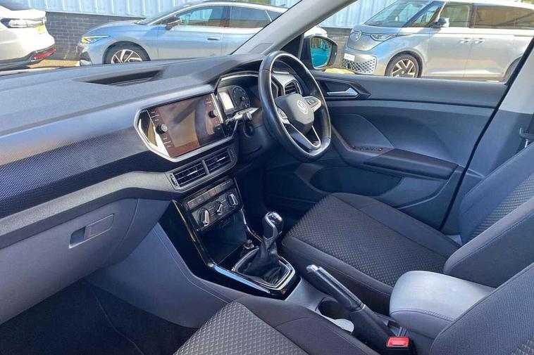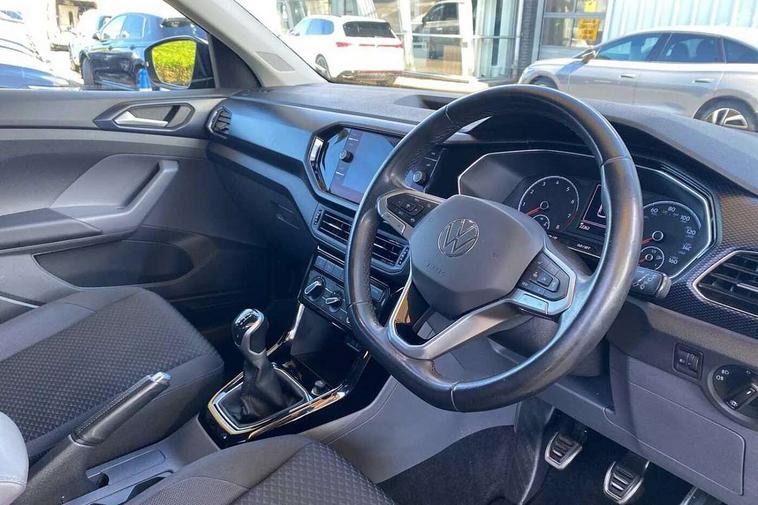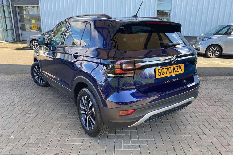 'Lights On' Reminder warning buzzer, Adaptive cruise control including front assist, forward collision warning, autonomous emergency braking, speed limiter, Driver alert system, eCall emergency call system, Front and rear parking sensors, Lane assist, Multifunction computer with visual gear change recommendation for fuel consumption, Power assisted speed sensitive steering, Ready 2 Discover system with 8" display including streaming and internet, Speedo, rev counter, electronic odometer, trip, service interval display, exterior temperature and fuel gauge, Stop/start system, Voice activation, Warning sound and light for doors and tailgate open, Warning sound and light for front seatbelts unfastened, We Connect Go Dongle, Wireless Car net app connect with Apple CarPlay, combined functionality of Apple CarPlay/Android Auto and MirrorLink, Battery regeneration during braking, Misfuel prevention device, 2x USB connection with USB charging sockets and in rear centre console, Diversity antenna for FM reception, Front and rear 6 speakers, Premium USB cable for Apple or Android smartphone compatibility, Automatic dimming interior rear view mirror, Automatic hazard lights activation under emergency braking, Black non metallic door mirror housings, Black roof rails, Body colour door handles, Body coloured bumpers, Darkened 65% privacy glass in side and rear window, Dusk sensor + automatic driving lights, Electric adjustable/heated door mirrors, Front and rear electric windows, Front fog lights with chrome bezel, Galvanised body, Halogen clear headlights range adjustable via infotainment system with automatic headlight activation and separate LED daytime running lights, Heated rear window, High level 3rd brake light, Lower door sills and door pillars in black, Manual coming/automatic leaving home lighting function, Rain sensor, Rear lights incorporating LED technology, Rear window aerial, Rear windscreen washer and wiper with interval delay, Reflectors in all doors, Tailgate with integrated roof spoiler, United badge on B-pillar, Windscreen wipers/ intermittent wipe + 4 position delay, 12V Accessory socket in centre console, 3 rear head restraints and 3 rear three point seat belts with ECE label, 60/40 split folding rear seat backrest, Brushed stainless steel pedals, Chrome plated radiator grille inserts, air vent surrounds and light switch surrounds, Drawer under drivers seat, Driver and front passenger sunvisor with vanity mirror, Driver's sunvisor with ticket holder, Dust and pollen filter, Front + rear carpet mats, Front centre armrest with storage compartment and two rear air vents, Front seat back storage pockets, Front seats with adj lumbar support, Glovebox, Heating and fresh air system with 4 stage blower, Height/reach adjust steering wheel, Instrument lighting white adjustable panel illumination, Isofix child seat preparation for 2 rear child seats, LED interior light with switch off delay/dimmer and 2 front/rear LED reading lights, Luggage compartment cover, Luggage compartment lighting, Manual air conditioning, Manual front seats with height adjustment, Moveable and foldable Rear bench seat, Storage compartment in drivers and front passengers door, Three spoke multi-function leather trimmed steering wheel and gearknob, United door sills, Variable boot floor, Waveform cloth upholstery, White ambient lighting, Composition Media infotainment system pack - T cross, Winter pack - T-cross, Anti-lock Braking System (ABS) with Hydraulic Brake Assist (HBA), Automatic post collision braking system, Driver and front passenger safety-optimised head restraints, Drivers and Front Passengers airbags with front passengers airbag deactivation switch, ESC with EDL, ASR, EDTC and trailer stabilisation function, Extended and proactive pedestrian protection, Front and rear curtain airbags, Front seat side impact airbags, Height adjustable 3 point automatic front seatbelts with pretensioners, Hill start assist, Pre crash preventive occupant protection, Rigid safety cell with front and rear crumple zones, Tyre pressure loss indicator, Volkswagen roadside assistance, Alarm with interior protection and deactivation via infotainment system, Child security locks in rear doors, Remote central locking with 2 remote folding keys, Remote tailgate unlocking using key fob, Altantic blue united decorative inserts, 16" Dublin black diamond turned alloy wheels + anti theft wheel bolts, Tyre mobility kit and compressor,