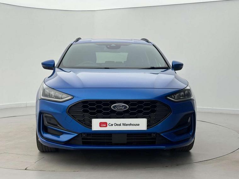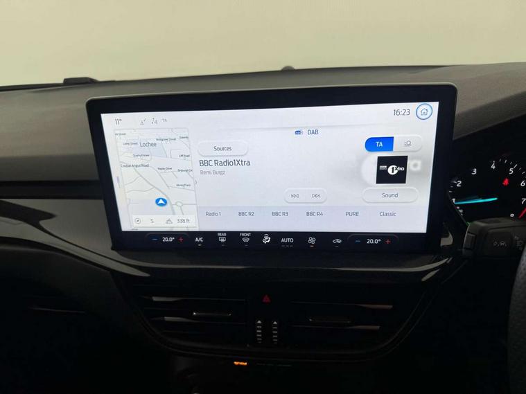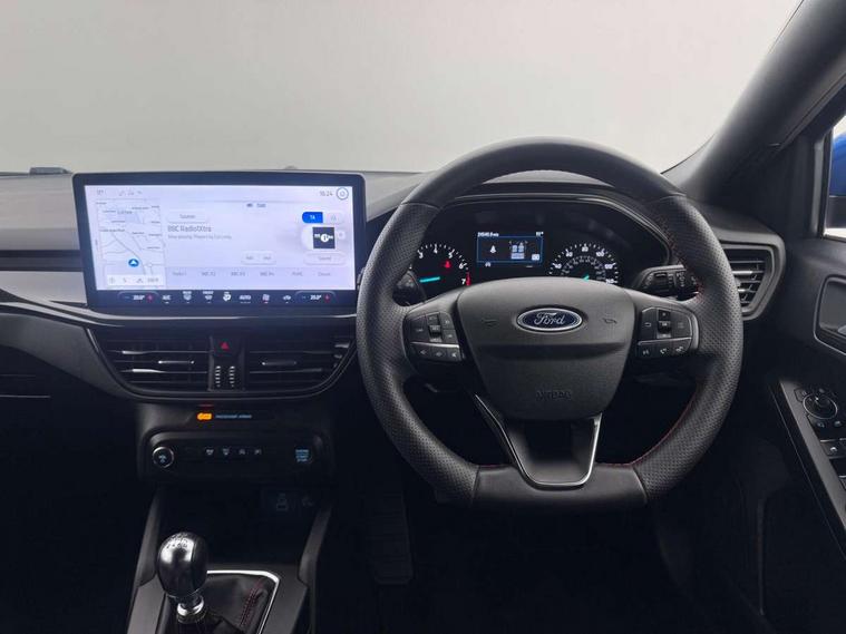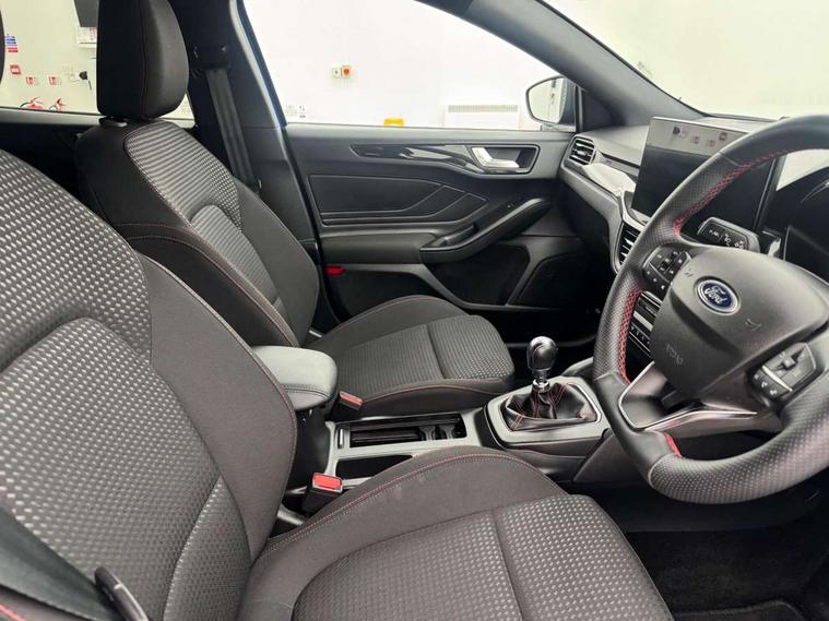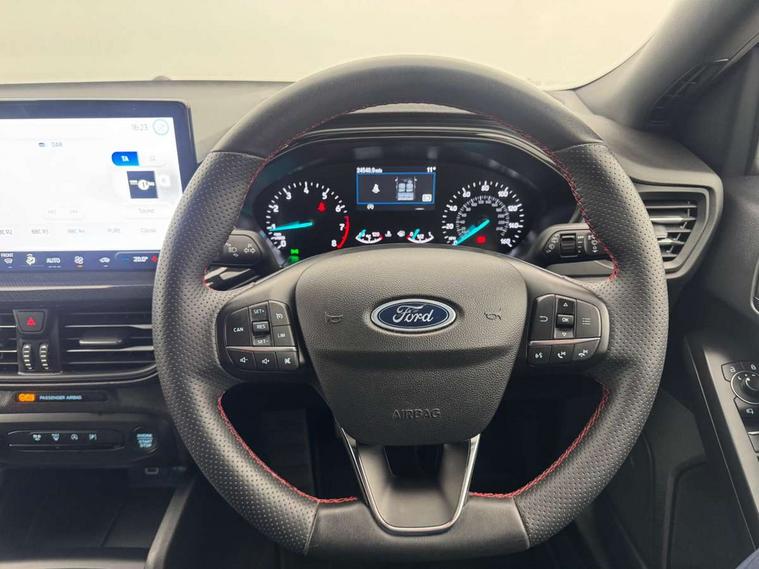 4.2" Colour TFT Ice blue illumination analogue cluster with trip computer, Bluetooth system, Digital clock, Easy fuel capless refuelling system, Eco mode, Ford SYNC 4 Navigation with 13.2'' touchscreen, DAB radio, Emergency Assistance, Apple Carplay & Android Auto, 6 speakers & FordPass Connect, Lane keeping system - lane keeping alert and lane keeping aid, PAS, Rev counter, Selectable drive mode, Service interval indicator, Sports tuned suspension, 2 USB ports, Auto headlamps (on/off), Body coloured door handles, Electrically operated front and rear windows with one touch opening and closing, Electrically operated heated power fold door mirrors with puddle lamp with side indicators, Front variable intermittent wipers with electric wash, Full fixed LED headlamps, Heated rear window, LED daytime running lamp, LED rear lamps, LED third brake light, Polished twin tailpipe, Privacy glass, Quickclear heated windscreen, Rain sensor, Rear side wing doors, Tailgate wash/wipe, Unique ST-Line grille, full bodystyling kit, and large body coloured rear spoiler, 3 rear headrests, 3 seat bench in 2nd row, Cloth upholstery, Dual zone electronic air temperature control, Height adjustable front headrests, Isofix child seat preparation, Reach + rake adjustable steering column, Single front passenger seat, 3x3 point rear seatbelts, ABS+Electronic Brake force Distribution, Auto hold function, Driver airbag, EDL traction control, Electronic parking brake, Electronic stability control, Front and rear seatbelt reminder, Front inertia reel height adjustable seatbelts with pre-tensioners, Front passenger airbag, Front side airbags, Passenger airbag deactivate switch, Post collision braking, Pre collision assist with autonomous emergency braking and pedestrian/cyclist detection, Remote/power child rear door locks, Side curtain airbags, Three rear inertia reel lap/diagonal seatbelts, Tyre pressure monitoring system, Keyless entry and keyless start, MyKey system, Remote central locking & engine immobiliser, Thatcham alarm with power door dead locks, 17" 5 spoke Rock mettalic finish alloy wheels with mini spare wheel,