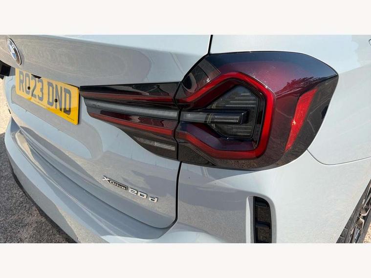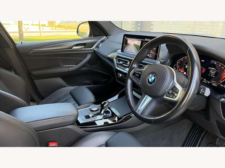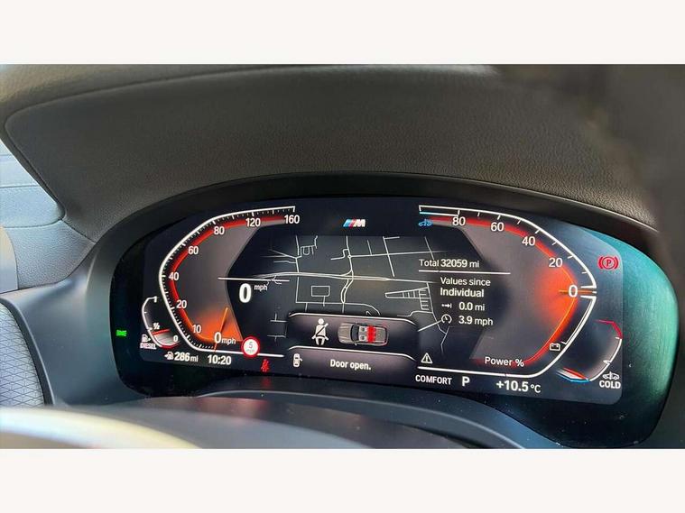 Active Guard, Attentiveness assist, BMW Live Cockpit Professional nav system including 12.3" instrument display + 12.3 high resolution control display, BMW Online services, BMW Teleservices, Brake pad wear indicator in front and rear, Check Control warning system for monitoring of lights and door/luggage compartment open warning, Condition based service - BMW service history, electronic service booklet, integrated owner's handbook, Connected drive services, Cruise control with brake function + speed limiter, Electric boot lid, Front/rear Parking distance control, iDrive touch controller with 8 favourite buttons, Instrument cluster with speedometer with mph readout, tachometer, fuel gauge and oil temperature gauge, Lights on warning by audio warning signal when ignition is switched off, Oil sensor for level and grade, warning by check control system, On board computer - average speed+fuel consumption, service interval, clock/date, odometer/trip meter, outside temperature display and ice warning, Optimum shift indicator, Personal Profile - automatic lock when driving away selectable, Run flat indicator, Stop/start system, Variable sports power steering with drive performance control Sport+ mode, Automatic transmission with gearshift paddles, Diesel particulate filter, Incorrect fuelling protection, Larger capacity fuel tank, M sport suspension, Multi-link rear suspension, BMW professional radio/CD/MP3, DAB tuner, Acoustic glazing, Automatic windscreen wipers and automatic headlight, Black finish on B pillars, Body colour door handles, Body colour electric adjust heated aspherical door mirrors, Body colour roof mouldings, Body coloured bumpers, Direction indicator, side repeaters, integrated in exterior mirrors, Dynamic brake lights, Exhaust tailpipes - dual, round, split left and right with chrome finisher, Fingertip control / anti-trap function on electric window, Folding wing mirrors with auto dimming, Follow me home headlights, Front and rear bumper system with replaceable deformation elements, Front and rear electric windows, Gloss chrome tailpipes finishers, Green tinted heat insulating glass, Heated windscreen washer jets, High beam assistant, High gloss black shadow line roof rails, High gloss shadowline exterior trim in decorative moulding side frame/recess cover/guide rail/B, C pillars/mirror frame and triangle with mirror base, High level 3rd brake light incorporating LED Technology, Interior rear view electrochromatic mirror with automatic anti dazzle function, LED tail lights, Lightweight engineering, M aerodynamic bodystyling, M Sport entry door sill strips, Model designation, Rain sensor, Rear side wing doors, Rear wing door, Rear wiper, Shark fin antenna, Side exterior M designation badges, Visible VIN plate, Welcome lighting, Windscreen wipers with adjustable interval, 12V power point in luggage area, 12V power socket in front centre console, 2 x USB Type C ports for charging and data transmission (front centre console) and 2 x USB Type C ports for charging (rear centre console), 3 rear headrests, 3 seat bench in 2nd row, 3 zone automatic air conditioning, 4 lashing points to secure luggage, 40:20:40 split folding rear seat with loading system, Ambient lighting, Anthracite headlining, Automatic interior light when door is opened/ignition switched off or via remote key, Floor mats in velour, Foldable storage floor with compartment, Four grab handles integrated in roof lining, Front and rear bottle holders integrated into door trim storage compartments, Front and rear side armrests integrated into door trim, Front centre armrest with storage compartment, Front footwell lights, Front head restraints, Front passenger seat, Front sports seats, Front/rear courtesy lights with soft on/off dimming, Front/rear reading lights, Heated front seats, Isofix rear child seat preparation, Leather gear knob, Lockable glove compartment, Luggage area underfloor compartment, Luggage compartment lighting, M sport leather steering wheel, Multifunction steering wheel, Parcel shelf removeable and storable under boot floor, Reach and rake adjustable steering column, Rear centre armrest with 2 cupholders, Removable / retractable luggage cover, Slope adjustable rear seats, Storage compartment in rear centre console and front/rear door trims, Sun visors with vanity mirrors and ticket pocket, Toolkit located in luggage compartment, Two front cupholders with removable oddments tray/lid, Connected pro pack - X3, Driving assistant pack - X3, ADB - Automatic Differential Brake, Anti-lock braking system (ABS) with brake assist, Automatic Stability Control (ASC), Battery safety cut-off, BMW emergency call, Brake drying, Brake energy regeneration, Braking pre-tensioning, Child locks on rear doors, Cornering brake control (CBC), Crash Sensor - activation of central locking release, hazard warning light and interior lighting, Deactivation of fuel pump in the event of a crash, Driver and front passenger front and side airbags with passenger deactivation and ITS front and rear head airbags, Driver and front passenger knee airbag, DSC+, Dynamic brake control, Dynamic Traction Control - DTC, Electromechanical parking brake, Hill descent control, Hill start assist, Seatbelt security check for front seats, Side impact protection, Three point seatbelts to all seats with front and outer rear pyrotechnic belt tensioners and seat belt force limiters, Two tone horn, Tyre pressure sensor, Ventilated front and rear disc brakes, Warning triangle and first aid kit, Central locking switch for all doors, fuel filler cap and luggage compartment, Electronic engine immobiliser, Locking wheel nuts, Remote control including two integrated key - one button for open/close all lockable content, windows and separate button for open luggage compartment, Remote control Thatcham category 1 alarm, Start/stop button with Comfort Go keyless engine start and auto Start/stop deactivation button, Low rolling resistance tyres,
