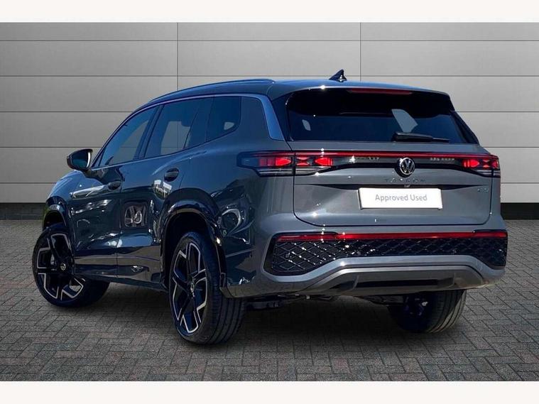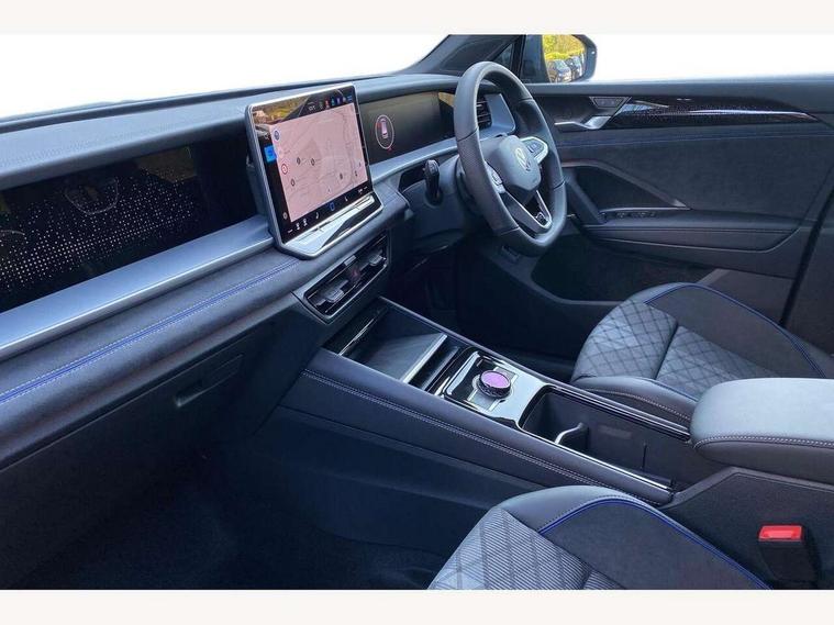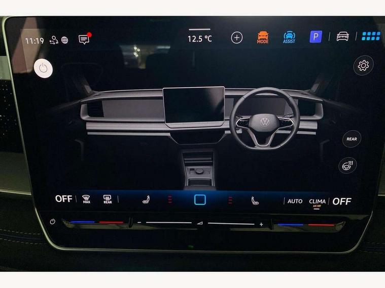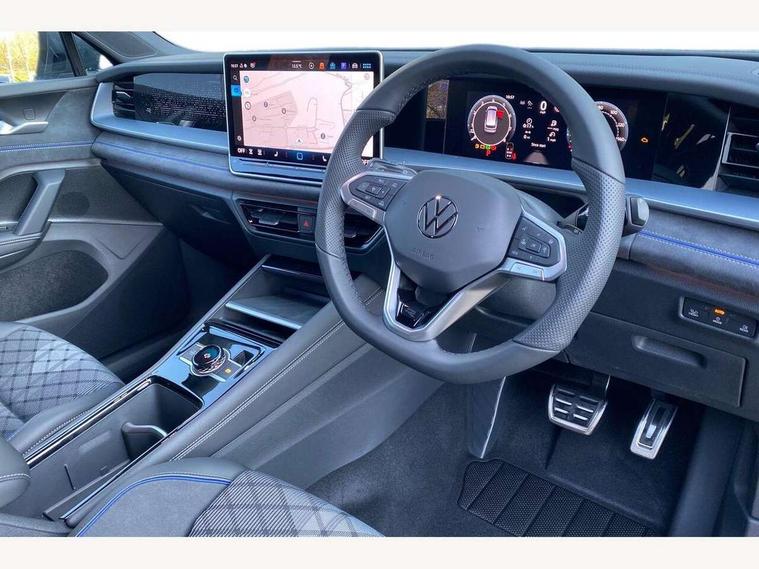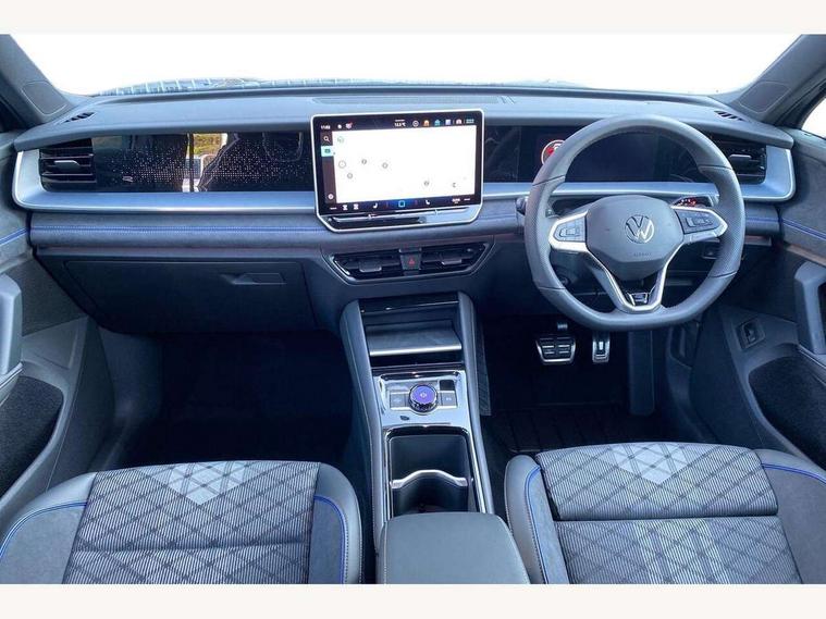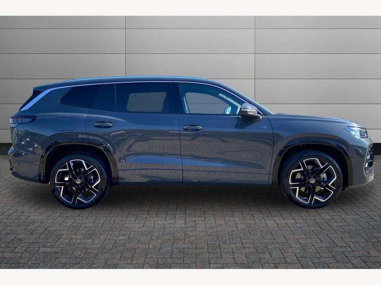 Adaptive cruise control (ACC), Digital Cockpit Pro - 10.25" high resolution dash display screen with customisable menus and information, Driver alert system, Driver attention monitoring system, Driving profile selection, Dynamic road sign display, E-Sim card for online connectivity, Easy Open and Close Electric tailgate with virtual pedal activation, eCall emergency call system, IDA voice assistance with ChatGPT, Lane change system, Side assist, Rear traffic alert and Exit warning system, Lane keeping system, Multifunction front facing camera, Navigation system, Oncoming vehicle braking when turning including swerve support, Park assist plus with park distance control, Power assisted steering with speed sensitive, Sports steering system, Start/stop system with regenerative braking, Voice activation spoken voice commands for telephone and navigation system, Warning signal and warning light for front and rear seatbelts not fastened, Wireless App-Connect, Front shock absorption G01, Front wheel drive, 12.9" infotainment display, Digital radio reception (DAB), Diversity antenna for FM reception, Air intake with Chrome trim, Auto dimming interior rear view mirror, Automatic headlight control system, Body colour door handles, Chrome moldings on the side windows, Coming/leaving home lighting function, Dynamic headlight range control with dynamic cornering light, Exterior mirrors convex on the left and aspherical on the right, Heat insulating glass in side and rear windows, High Beam Assist, automatic sensing for switching between dipped and main beam, Illuminated Volkswagen logo in front and rear, Laminated safety glass windshield, heat insulating, LED 3rd brake light, LED headlamps, LED separate signature day time running light, Poor weather light, Puddle lights, Rain sensor windscreen wipers, Rear combination lamps with special signal pattern, Rear fog light on one side, reversing light on both sides, Rear side wing doors, Rear wiper, Reverse activated passenger's door mirror, Sound insulating laminated safety glass from B-pillar backwards 90% tinted, Surround lighting with welcome light, Volkswagen logo in front, illuminated lighting animation with wake up/goodbye scenario and illuminated door handles, 12V outlet in center console rear and in luggage compartment, 12V socket in centre console, 2 USB-C ports in the front, 2 USB-C charging sockets on the centre console in rear, charging capacity up to 45 W, 230V socket in luggage compartment, 3 rear headrests, 3 rear seat bench in 2nd row, backrest split folding with centre armrest and 2 seats in 3rd row of seats, 3 zone air care climatronic with rear air conditioning control panel, 30 colours options interior ambient lighting, Art velours cloth upholstery, Black roof lining, Brushed stainless steel pedals, Carpet mats, front and rear, Centre console with illuminated storage compartment with sliding cover and two drinks holders, Chrome elements on the mirror switch and power window switches and door pulls, Door and side trim panel insert in Art velour, Drivers seat with manual adjustment of seat travel and height and backrest angle with thigh support longitudinally sliding, Flat luggage compartment floor, Front centre armrest, Front massage seats, Front scuff plates in aluminium, Inductive smartphone charging, ISOFIX anchors for child seats on outer rear seats and front passenger seat compatible with i-Size, Leather wrapped multifunction heated steering wheel with paddle shift, Manual height adjustable front passenger seat, Mechanical rear seat release, Power adjustable lumbar support in front, Safety optimised front integrated head restraints, Single front passenger seat, Sports comfort seats in front, Sun visors with illuminated vanity mirrors, Touch control steering wheel, 3 Point seat belts in front with pretensioners, 3 point seatbelts in outer rear with ECE label, Autonomous emergency braking front assist with pedestrian and cyclist monitoring, Driver and front passenger airbag with front passenger airbag deactivation, Electronic parking brake with auto hold, First aid kit with warning triangle and safety vest, Front and rear curtain airbags, Front and rear side airbags, Front centre airbag, Hill start assist, Manual rear child locks, Proactive passenger protection system, Two tone horn, Tyre pressure monitoring system, Alarm with interior protection, Central locking system keyless entry, Decorative material set R-Line, Interior door handle in matte chrome,