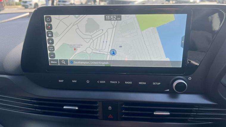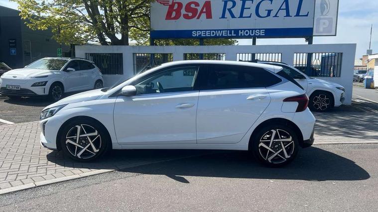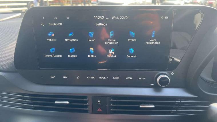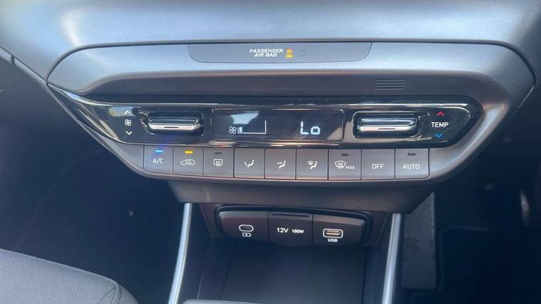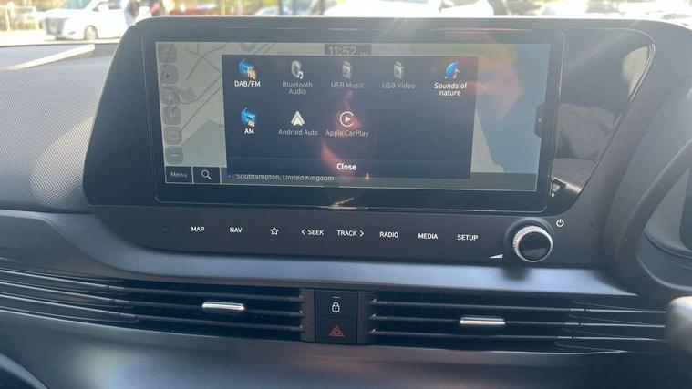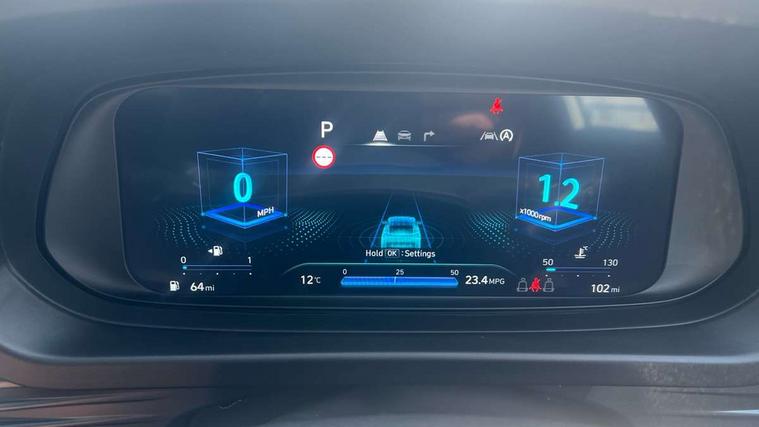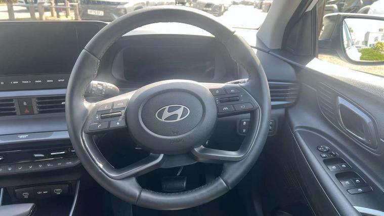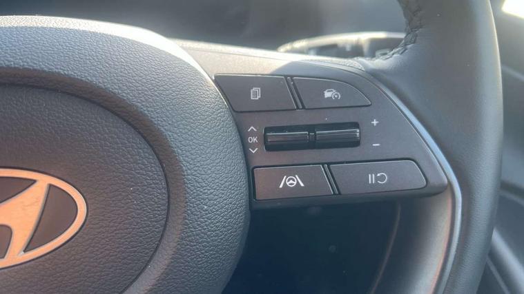 10.25" touchscreen + navigation, 2nd Gen eCall, 8" Touchscreen DAB Radio with android auto and apple carplay, Forward collision assist with car, pedestrian and cycle detection, Front parking sensor, Intelligent speed assist, Intelligent speed limit warning, Lane follow assist, Lane keep assist, MAP OTA updates, PAS, Rear parking sensor, Rear view camera with dynamic guidelines, USB C port front, USB C Port in rear, Automatic headlights with dusk sensor, Electric adjustable heated door mirrors, Electric folding door mirrors, Front grille mesh pattern design, High beam assist, LED 3rd brake light, LED daytime running lights, LED Headlights, LED taillights, Privacy glass - Rear windows and tailgate, Rain sensor, Rear side wing doors, Rear wiper, Repositioned flat metal hyundai emblem, Trailer wiring, 3 seat bench in 2nd row, Adjustable head restraints, Automatic air conditioning, Cloth upholstery, Floor mats, Heated front seats, Heated steering wheel, Leather steering wheel, Multi colour ambient lighting, Single front passenger seat, 3x3 point rear seatbelts, ABS with front and rear diagonally split, Autonomous emergency braking, Child locks on rear doors, Front ventilated disc brakes, Rear solid disc brakes, Tyre pressure monitoring system, 17" Alloy wheels, Tyre repair kit,