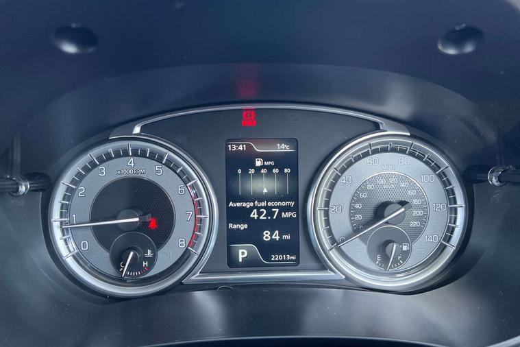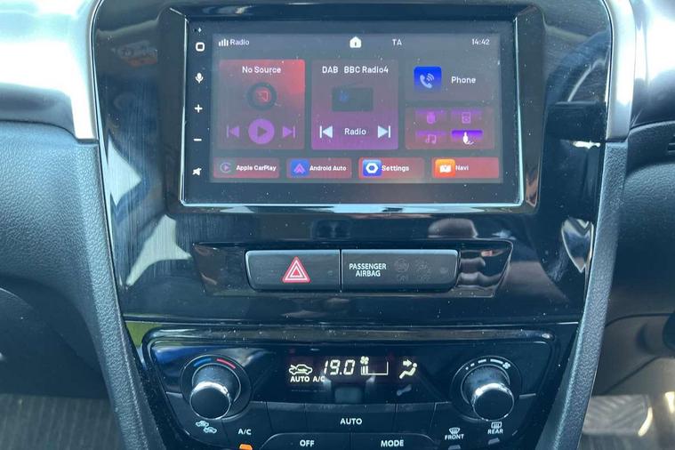 Adaptive cruise control, Blind spot monitor, Bluetooth integrated into audio unit, Door ajar warning lamp, E-call, Emergency stop signalling system, Engine oil change reminder, Engine start/stop button, Lane departure prevention, Lane departure warning system, Navigation system, PAS, Rear cross traffic alert, Rear parking camera, Service indicator, Smartphone link display with Apple CarPlay and Android Auto, Speed limiter, Tachometer, Traffic sign recognition, 4 speakers, 4.2-Inch Colour LCD display, DAB Digital radio, Steering wheel mounted audio controls, USB connection, 1 speed with intermittent rear wiper + washer, 2 speeds (low/high) with adjustable intermittent front wiper + washer, Automatic front rain sensing wipers, Automatic headlamp levelling, Automatic headlights, Body colour door mirrors and handles, Body coloured bumpers, Chrome front grille, Chrome lower front bumper insert, Electric adjustable heated door mirrors, Electric front+rear windows, Front fog lamps, Green tinted windows, High mounted stop lamp, LED daytime running lights, LED multi reflector headlamps with low and high beam, LED rear combination lamp, Low fuel warning lamp, Rear fog lamps, Rear privacy glass, Rear side wing doors, Rear window demister, Silver roof rails, Visible VIN plate, Wheel arch extensions with side skirts, 12V accessory socket in centre lower box, 12V Accessory socket in the load area, 2x Front and rear door bottle holders, 3 bench rear seats in 2nd row, 3 rear headrests, 3 spoke leather covered steering wheel, 60/40 split folding rear seat, Automatic air conditioning, Black shift knob with silver accent, Centre cabin light, Child seat tether anchorage points x3, Chrome handbrake release button, Chrome interior door handles, Driver/front passenger seat height adjustment, Driver/passenger sunvisors with ticket holders + illuminated vanity mirrors, Drivers footrest, Fabric upholstery with white stitching, Front centre armrest, Front cupholders x 2, Front fabric door trim insert, Front footwell and centre lower console box lights, Front head restraints, Front map light, Front passenger side assist grip, Gearshift paddles, Glovebox light, Heater, ISOFIX child seat anchorages X 2, Luggage area lamp, Luggage cover, Pollen filter, Rear assist grips x2, Removable double luggage room floor, Silver centre console ornament, Silver door trim ornaments, Single front passenger seat, Tilt/telescopic adjustable steering wheel, 3-point front ELR seatbelts with pretensioner, force limiter and shoulder height adjuster, 3-point rear ELR seatbelts with pretensioner and side force limiter and 3-point ELR centre seatbelt, ABS+EBD+Brake assist, Childproof rear door locks, Curtain airbags, Driver/Front Passenger airbags, Drivers knee airbag, Dual sensor brake support, ESP, Front and rear seatbelt reminder, Front passenger airbag deactivation, Hill hold control, Side airbags, Side impact protection beams, Sway warning system, Tyre pressure monitor, Alarm, Deadlocks, Freewheeling lock cylinders, Immobiliser, Keyless entry and start, Light - on and Key in reminder, Locking wheel nuts, Remote central door locking, Chrome dashboard trim rings, Coloured instrument panel ornament, 17" Painted alloy wheels, Emergency flat tyre repair kit,