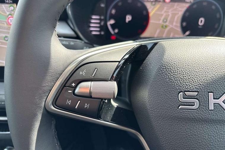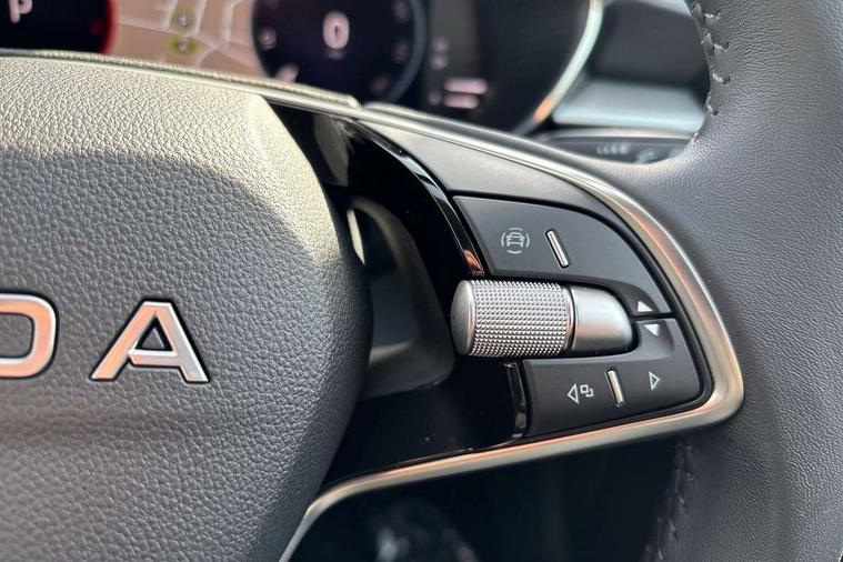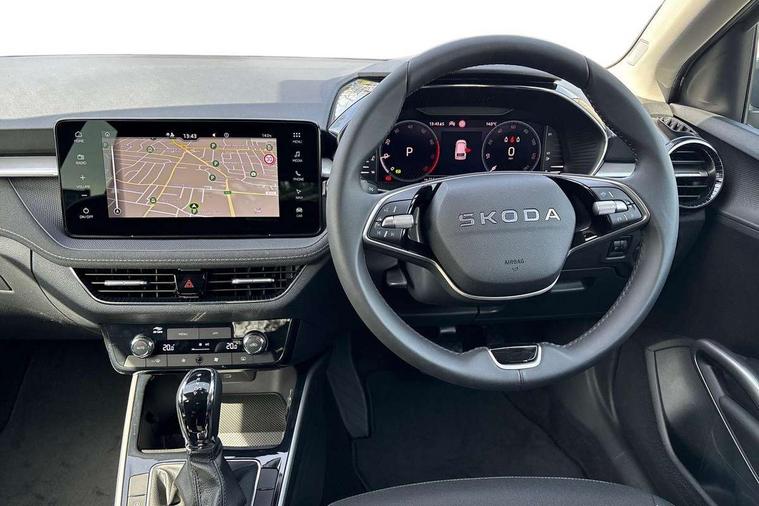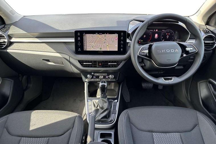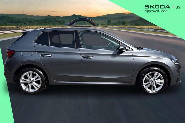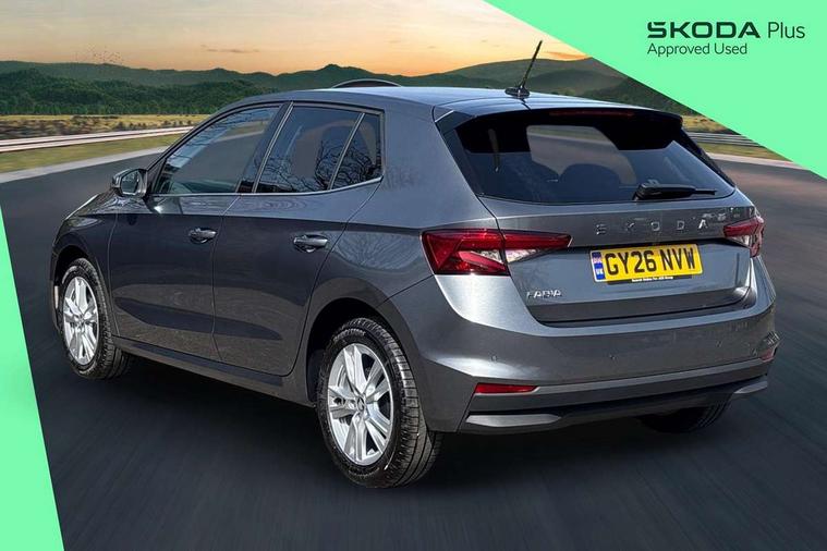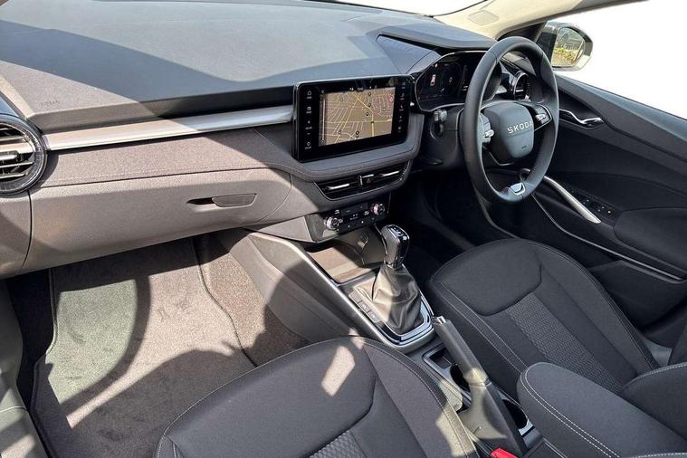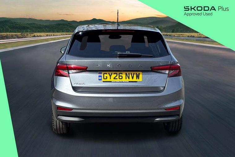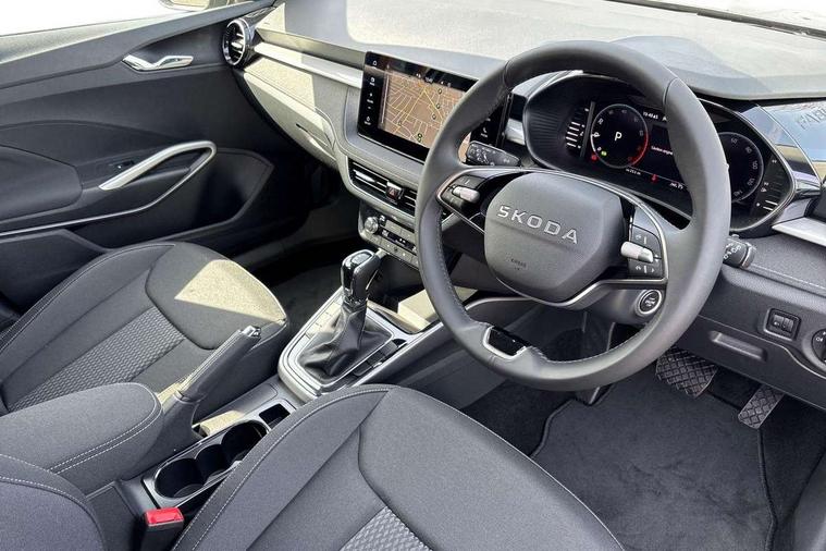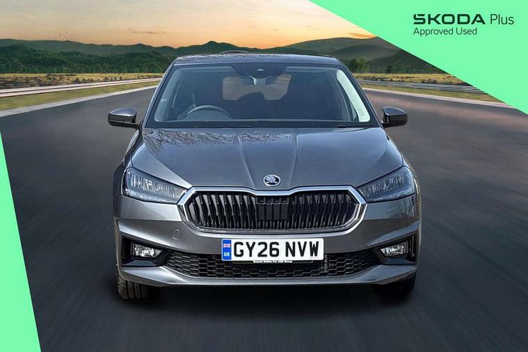 Advanced driver attention and drowsiness monitor, Bluetooth connection, Driver alert system, Electromechanical power steering, Exterior temperature gauge, Service interval indicator, Traffic sign recognition, Virtual cockpit with 10.25" colour display, Wireless SmartLink for Apple CarPlay and Android Auto, 9.2" colour display skoda navigation system with voice control and web radio, Auxiliary socket for external MP3 player, DAB digital radio reception, Auto dimming rear view mirror, Body colour door mirrors, Body coloured bumpers, Chrome window surround, Door mirror integrated indicators, Front and rear electric windows, Front window wiper intermittent control, Headlight range control - Automatic, Ice scraper in fuel cap, LED 3rd brake light, LED daytime running lights with coming and leaving home feature, LED rear lights, Privacy glass, Rear LED fog light, Rear side wing doors, Rear window wiper with washing nozzles, Roof mounted spoiler, SKODA tailgate lettering in chrome, Unique dark chrome design logo on alloy wheels, 2 LED reading lights in front and rear, 3 rear headrests, Backrest split and folding, Central console with fixed cup holder and storage box, Chrome handbrake release button, Comfort seats, Door sills with fabia badging, Dual zone air conditioning with climatronic electronic control, Fabric upholstery, Front centre armrest, Gearshift knob/handle in leather, Grain satin black interior door handles, Hand brake lever handle in leather, Height adjustable front headrests, Height adjustable front seats, Height adjustable steering wheel, ISOFIX and TopTether anchorage points to the outer rear seats, ISOFIX and TopTether on the front passenger seat, Luggage compartment lighting, Manually adjustable lumbar support in front seats, Pollen filter, Rear seat bench unsplit, Single front passenger seat, Skoda lettering on steering wheel, Storm grey headlining, Sun visors with mirror and airbag label on passenger side, Textile floor mats, Ticket holder, Ambient lighting pack - Fabia Hatchback, 3-point height adjustable front seats belts with pretensioner and force limiter, Automatic warning lights in case of crash, Driver and passengers airbag with switch off function, e-Call+, ESC including ABS, MSR, ASR, EDS, HBA and XDS, Front and rear seat belt warning, FRONT ASSIST (AEB City and AEB Inter Urban), Front side airbags, Head airbags, Hill hold control, One tone horn, Pedestrian protection, Three rear 3-points safety seat belts with pretensioner and force limiter including stop function for outer rear seat belts, Tyre pressure monitoring system, Anti-theft alarm system including immobiliser, interior monitoring, backup horn, and towing protection, Central locking with radio remote control, interior controls, SAFE function and 2 foldable keys, Chrome edged air vents, Grain satin black central console cover, Metallic grey upper decorative trim, Satin black door and side trim panel in front, Textile microsuede grey lower decorative trim with art grey stitching, Anti-theft wheel bolts protection, Super-low rolling resistance tyres,