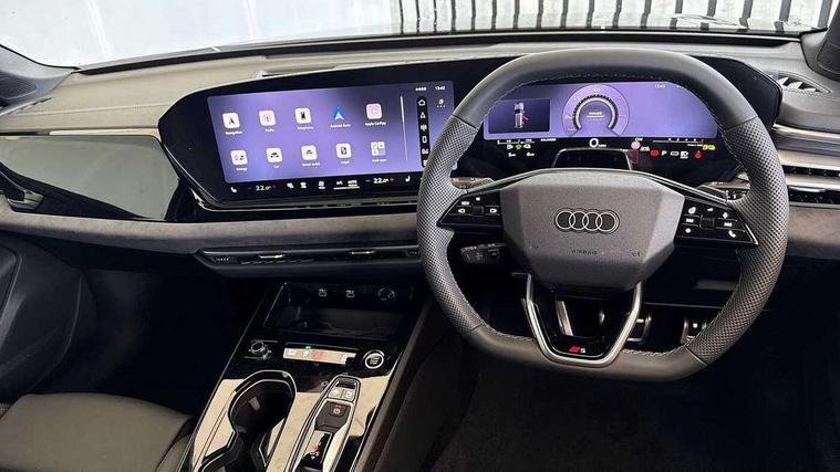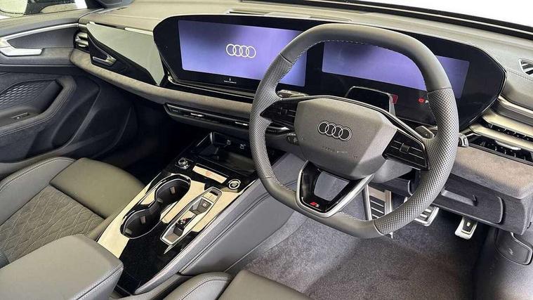 Adaptive cruise control, Attention and drowsiness detection with driver observation, Audi application store, Audi assistant, Audi connect emergency call and service, Audi drive select, Audi virtual cockpit plus with 11.9" OLED colour display, Automatic start/stop system with coasting functionality, Camera based traffic sign recognition, Convenience key, Intersection assist, Lane departure warning, MMI navigation plus with high resolution 14.5" OLED touchscreen colour display, Park assist plus, Parking system plus with 360 display, Progressive steering with servotronic, Rear view camera, Side assist and exit warning, rear cross-traffic assist and rear turn assist, Smartphone interface, Swerve assist and turn assist, Traffic sign based speed limiter, Household plug type G, Hybrid propulsion system, Industrial connector CEE 32A, 230V, long and straight for the e-tron charging system, Mode 3 type 2 AC charging cable 22kW, Sports suspension lowered by 20mm, Audi sound system impressive sound with 8 loudspeakers including centre speaker and subwoofer, 6-channel amplifier with a total output of 180 watts, DAB digital radio reception, Smartphone compartment with wireless charging, Aluminium window trims, Auto dimming rear view mirror, Black door handles, Black door mirrors, Black roof rails, Dark chrome-plated tailpipe trims, Door mirrors - electrically adjustable, heated, folding and auto dimming on both sides, Front and rear electric windows, Front door sill trims with aluminium inlays, illuminated with 'S' logo, LED headlights Plus incl. digital daytime running lights, turning light, all-weather light, motorway light, manouevring light and intersection light, LED rear lights pro incl. dynamic rear indicators and illuminated light strip with animated coming and leaving home function, LED third brake light, Privacy glass, Rear and side windows with heat insulating glass, Rear side wing doors, Rear wash/wipe, S line bumpers, radiator grille and diffuser in phantom black and diffuser insert in matt anthracite, White rhombus logo projection light in exterior mirrors, Windscreen with acoustic glazing, 3 rear headrests, 3 seat rear bench, 3 spoke leather steering wheel with multi-function buttons with touch control, flattened on top and bottom, with S badging and contrast stitching, 3-zone automatic climate control, 40:20:40 split folding rear seat bench with centre armrest and cup holders, Auxiliary air conditioning, Comfort front centre armrest, Dinamica microfibre/Artificial leather upholstery, Front and rear floor mats, Front sport seats with integrated headrest and S embossed logo, Headlining in black cloth, i-Size child seat mounting on the front passenger side and outer rear seats, i-Size and top tether on the outer rear seats, Increased charging capacity for USB ports 2X100 Watts in rear, 2X60 Watts in front, LED roof module front and rear including reading lights, Luggage compartment lid, electrically opening and closing, Manual steering column height and depth adjustment, Single front passenger seat, Stainless steel pedals and footrest, Steering wheel grips in perforated leather and shift paddles, Storage compartment lighting under the centre armrest, Ambient lighting package plus - A5, Black styling pack plus - A5, Comfort Pack - A5, Interior lighting in white package pro - A5, 3x3 point rear seat belts, Acoustic vehicle alerting system, Driver airbag, Electric child safety locks, First aid kit with warning triangle and vests, Front emergency brake assist, Front passenger airbag, Front passenger airbag deactivation, Front side airbags with head airbag system and front interaction airbag, Hill hold assist, Seat belt monitoring with rear seat occupant reminder, Tyre pressure loss indicator, Anti theft alarm, Anti-theft wheel bolts, Digital key, Keyless Go, Accent surfaces and control buttons in gloss black, Black dashboard with contrast stitching, Decorative inlays chestnut natural, grey, Softwrap in Dinamica with contrast stitching, Upper and lower interior elements in dinamica microfiber, Upper and lower interior elements in leatherette, Tyre repair kit,