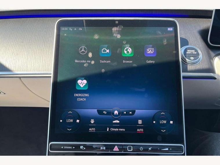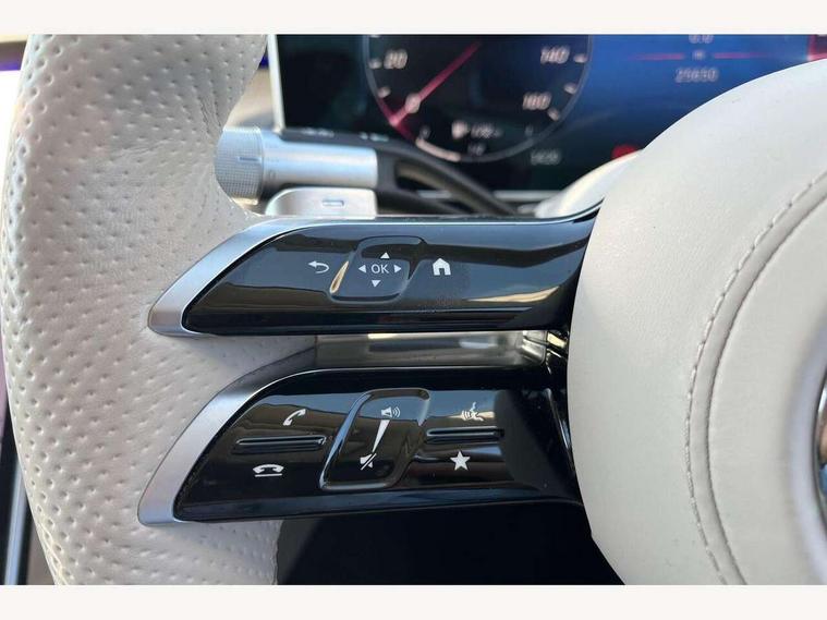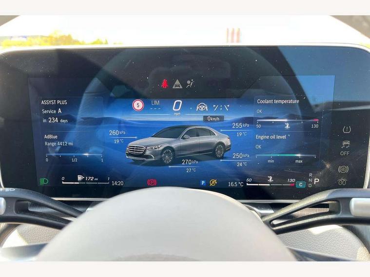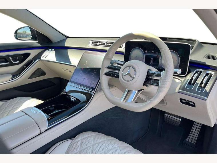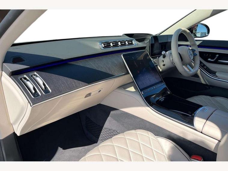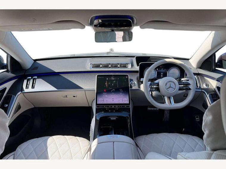 12.3" 3D driver display, 12.8" OLED central display, Attention assist, Bluetooth connection, Crosswind Assist, Direct steering, DYNAMIC SELECT with a choice of driving modes, ECO start/stop function, Extended MBUX functions, Fingerprint scanner, Hands-free access for boot lid, Hard disc navigation, Intelligent parking pilot, MBUX augmented reality for navigation, MBUX augmented reality head-up display, MBUX interior assist - front and rear, MBUX navigation premium, MBUX rear tablet, Mercedes-Benz emergency call, Power closing aid for doors and boot lid, Pre-installation for car sharing, Preinstallation for Navigation Services, Rear belt status indication in the instrument display, Remote boot lid release and closing, Service indicator (ASSYST), Wireless charging system for mobile devices in the front, Wireless charging system for mobile devices in the rear, Wireless smartphone integration, 76 litre fuel tank, 9G TRONIC 9 speed automatic transmission, AdBlue diesel emission control system, Airmatic air suspension, Diesel particulate filter, Burmester 3D surround sound system, DAB Digital radio, Front 2x USB type-C ports, Rear 2x USB type-C ports, Sound personalisation, Adaptive brake lights, AMG body styling with chrome elements, AMG front apron in A-wing design with large air intakes and fins in chrome plus front splitter in chrome, AMG rear apron with diffuser and trim element in chrome, Automatically dimming rear view mirror, Dark tinted heat insulated glass, Digital light - LED headlight, adaptive highbeam, cornering and active light, enhanced fog light, city, country road mode, weather and LED rear lamp, Electrically adjustable, heated and automatic dimming driver side exterior mirrors with kerb/parking function, Front and rear electric windows, Heated windscreen, Illuminated door sill panels with Mercedes-Benz lettering, LED daytime running lights, Magic vision control, Panoramic sliding sunroof, Privacy glass, Radiator grille with chrome surround and three horizontal cross struts in chrome with inserts in high-gloss black, Shoulderline trim strip in chrome, Side sill panels with chrome insert, Visible tailpipe trim elements in chrome, 12V socket in boot, 12V socket in rear centre console plus in the front passenger footwell, 3 twin spoke flattened bottom multifunction sports steering wheel in nappa leather with silver chrome shift paddles, 4 way lumbar support for driver and front passenger, Active ambient lighting 64 colours with 10 colour schemes, projection of brand logo, Adaptive rear compartment lighting, AMG floor mats, AMG pedals in brushed stainless steel with rubber studs, Automatic child seat recognition sensor, Belt feeders in the rear, Centre console in black crystal look finish, Climatised front seats, Climatised rear seats, Double sun visors with pivoting section to cover the side window, Driver and front passenger seat heating plus, EASY ADJUST luxury head restraints with additional cushion for driver and front passenger, foldable and removable on front passenger side, Easy entry system for driver, Electric rear window sunblinds, Electric sunblinds in rear doors, left and right, Electrically adjustable rear seats including memory function, Energizing Air Control - Air quality and fine particle sensor, Fabric roof liner, Front centre armrest, Front passenger side seat electrically adjustable from the rear, Nappa leather upholstery, Rear centre armrest with double cup holder and trim element, Rear head restraints, Seat heating plus for outer rear seats, Steering column gear selector, Steering wheel gearshift paddles, Steering wheel heating, Thermotronic automatic 4 zone climate control, Through loading system, Two bag hooks, Active multicontour seat pack - S Class, Air-balance pack - S Class, Chauffeur pack - S Class, Driving assistance package - S Class, Front energizing package - S Class, Memory pack - S Class, Parking package with 360 degree camera - S Class, USB pack plus - S Class, Warmth comfort package - S Class, Anti lock braking system (ABS) with brake assist, Beltbags in rear, Brake pad wear indicator front brakes, Centre airbag, Driver/Front Passenger airbags, Electric parking brake, Electronic stability programme with acceleration skid control, First aid kit, Forward facing rear airbags, Front and rear illuminated designer belt buckles, Front large compound brake discs 390x36mm internally ventilated and perforated, Front side airbags, Grey painted brake callipers with Mercedes-Benz lettering at the front, grey logo badge at the rear, i-Size and ISOFIX rear child restraint system, Pedestrian protection, Pre-safe system including pre-safe sound, Rear larger compound brake discs 360x26mm internally ventilated and perforated, Rear side airbags, Three 3 point rear seatbelts, Tyre pressure loss warning system, Window airbags, Dashcam, Increased anti-theft protection, KEYLESS-GO starting function with seamless door handles, Locking wheel nuts, Urban guard vehicle protection plus, Anthracite open-pore poplar wood, 21" AMG multispoke alloy wheels in himalaya grey with high-sheen finish, Noise reduced tyre with foam absorber, Summer tyres, Tyrefit tyre sealant kit,
