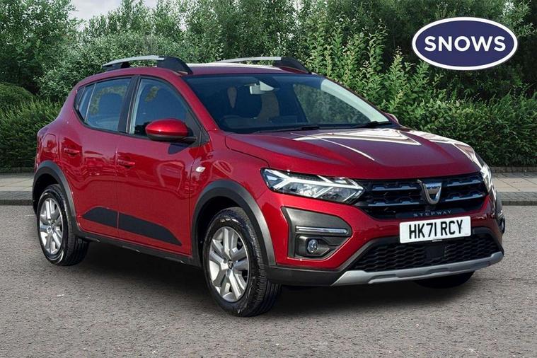 3.5" TFT instrument panel with on-board computer, Cruise control with speed limiter, eCall emergency call system, Eco mode, Electric power assisted steering, Rear parking sensors, Rev counter, Reversing camera, Stop/start system, 8" Media display - DAB radio, smartphone replication, bluetooth, 4 speakers, Apple CarPlay and Android Auto, USB connection for data transfer and charging, USB socket, 3 speed windscreen wipers, Auto lighting, Automatic wipers, Body colour door handles, Body colour door mirrors, Body coloured bumpers, Chrome longitudinal roof bars, Chrome radiator grille, Electrically adjustable and heated door mirrors, Front fog lights, Heated rear window, High level third brake light, LED automatic daytime running lights, LED Y-shape Dacia signature lighting, Modular roof bars, One touch electric front windows, Rear electric windows, Rear wash/wipe, Stepway inscription on radiator grille and roof bars, Tinted windows, 1/3 to 2/3 split folding rear seats, 12 volt front socket, 12 volt rear socket, 3 height adjustable rear headrests, Driver + passenger vanity mirrors, Fabric upholstery, Fixed smartphone holder on dashboard, Front armrest, Height adjustable driver seat, Height adjustable front headrests, Height/depth adjustable steering wheel, Isofix points for child seats in both outer rear seats, Manual air conditioning, Satin chrome interior door handles, Satin Chrome/Copper orange air vents, Soft feel steering wheel, Steering wheel controls, 3x3 point rear seatbelts, ABS and Emergency brake assist, Automatic emergency braking system, Child locks on rear doors, Door open warning, Driver airbag, ESC (Electronic Stability Control), ESP + Hill Start Assist, Front curtain airbags, Front seatbelt pretensioners, Front side airbags, Height adjustable front seatbelts, Passenger airbag, Seatbelt reminder for driver and front passenger, Tyre pressure monitor, Automatic central locking, Immobiliser, Keyless entry, Remote central locking, Decopart on instrument panel and door with textile, 16" Flex wheels with full wheel cap,