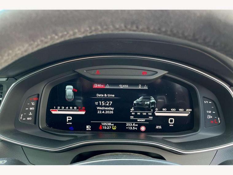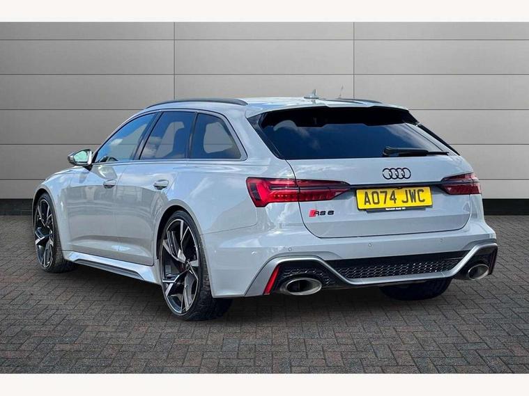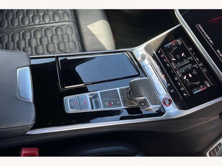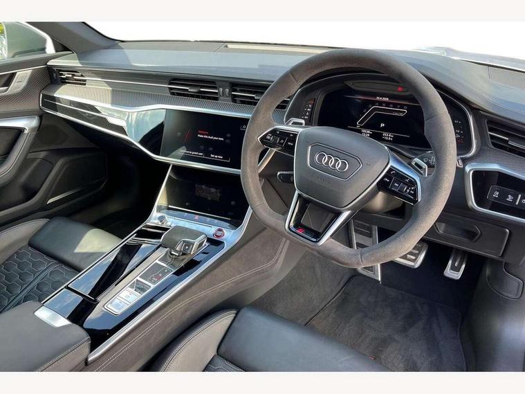 Audi connect safety and service (e-call), Audi connect with Amazon Alexa Integration, Audi drive select with 2 configurable RS modes, Audi smartphone interface with app store includes wireless Apple carplay, Android auto and Amazon alexa integration, Audi virtual cockpit plus with RS specific design and 12.3" display with additional graphic display options, Automatic start/stop system, Bluetooth interface, Convenience key, Dynamic all wheel steering, Head up Display, Lane departure warning system, MMI navigation with MMI touch + twin touch screens 10.1" and 8.6" with haptic and acoustic feedback, Operating buttons in black, glass look with haptic feedback including extended aluminium look, Power operated tailgate, Service interval indicator, Surround view camera system, Voice control system, 48V Mild hybrid technology, 73 litre fuel tank, Increased top speed to 174mph, Quattro sports differential, Audi music interface, Bang & Olufsen 3D Premium Sound System, DAB Digital radio, 3rd brake light, Adaptive windscreen wipers with integrated washer jets, Black audi rings and black RS badges, Electric front/rear windows, Electrically adjustable, heated and folding door mirrors with integrated LED indicators and kerb view function for passenger side, Frameless auto dimming interior rear view mirror, HD Matrix LED headlights with Audi laser light with dynamic light design and dynamic turn signal, Headlight washers, Heat insulating darkened glass in side and rear windows, LED daytime running lights, LED rear combination lamps with dynamic light design and dynamic turn signal, Matt grey mirror housing, Privacy glass with rear/side windows and acoustic glazing side windows, Radiator grille in honeycomb structure, large front air inlets and rear diffuser in gloss black, Rain and light sensors, Rear side wing doors, Rear wiper, RS front bumper with air inlets on both side, RS rear spoiler in body colour, RS sports exhaust system with high gloss black oval tailpipe trims, Towbar preparation, 3 seat bench in 2nd row, 3 spoke RS flat bottom alcantara leather multifunction steering wheel with shift paddles, heated funtion, contrast stitching, RS mode button/RS emblem, 4 way electric lumbar support for driver and front passenger, 4 zone deluxe automatic climate control, Audi phone box light, Electric steering wheel adjustment, Electrically adjustable front seats with driver memory, Entry LED with RS Performance projection (Audi Beam) in front and rear, Front and rear headrests, Front centre armrest, Front seat ventilation, Heated front seats, Illuminated front and rear door sill trims with aluminium inlays and RS6 logo, ISOFIX and Top Tether child seat mounting for the outer rear seats, ISOFIX child seat mounting and Top Tether with front passenger airbag deactivation, RS sports seat plus, Single passenger seat, Stainless steel pedals and foot rest, Air quality pack - RS6, Ambient lighting pack plus - RS6, Matt grey exterior styling pack - RS6, Park assist pack with park assist plus - RS6, Storage pack - RS6, 3 point rear seatbelts, Audi pre sense basic, Audi pre-sense front, Curtain Airbag System, Direct tyre pressure monitoring system, EBD - Electronic brakeforce distribution, Electromechanical parking brake, Electronic Stability Control (ESC) including ABS, ASR and EDL, Extended pedestrian protection measures, Manual child lock in rear doors, Warning triangle and first aid kit, Anti theft alarm with tow away protection, Immobiliser, Keyless Go, Remote central locking, Tyre repair kit,