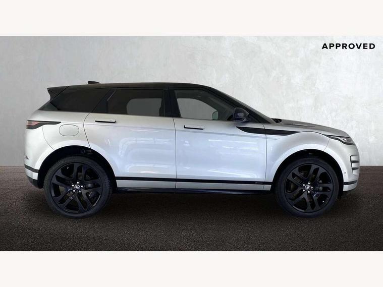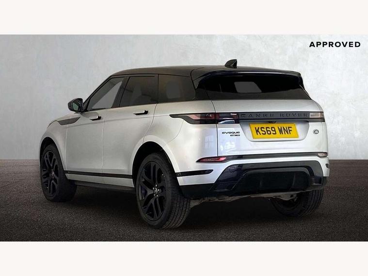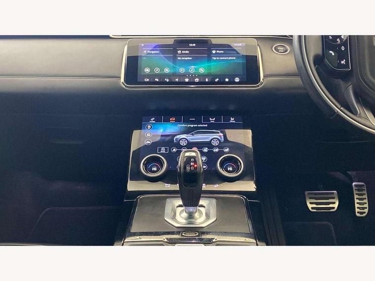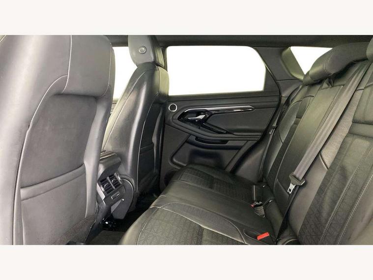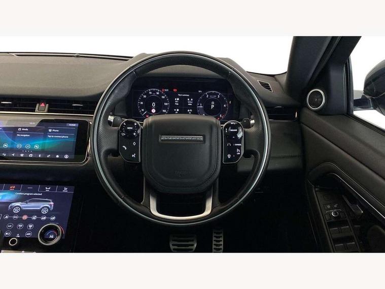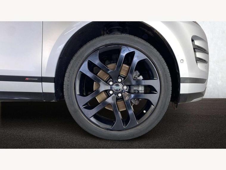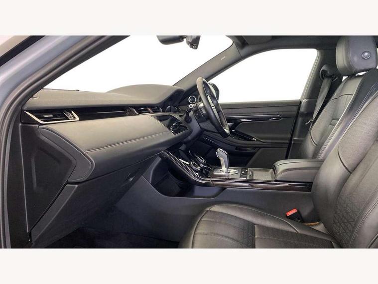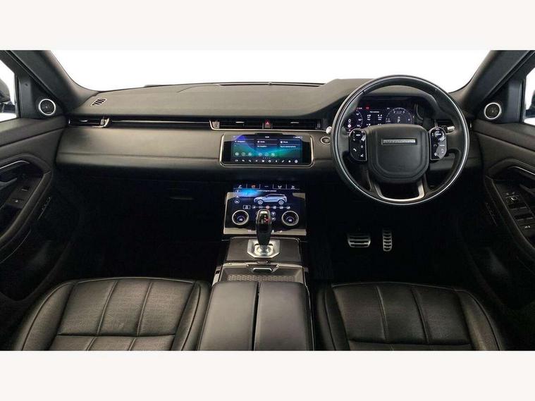 360 degree parking aid, Android Auto, Apple car play, Blind spot assist, Bluetooth connectivity, Brake pad wear indicator warning light, Clear exit monitor, Driver condition monitor, Duo touch pro, Electronic power assisted steering (EPAS), InControl remote, Interactive Driver display instrument cluster, Land Rover InControl apps, Lane keep assist, Navigation pro system, Park assist - Parallel, perpendicular and parking exit, Powered gesture tailgate/boot lid, Pro services and wifi hotspot, Push button starter, Rear traffic monitor, Smart settings, Traffic sign recognition with adaptive speed limiter, Voice control system, All terrain progress control, Efficient Driveline, Passive suspension, Terrain Response 2 Auto, Digital Audio Broadcast radio-DAB, Steering wheel mounted controls, Automatic headlight levelling, ClearSight interior rear view mirror, Electric windows with one touch open/close and anti trap, Evoque and R-Dynamic badge, Flush deployable exterior door handles, Heated rear window with timer, Heated washer jets, Heated windscreen, Power fold, auto-dimming, heated door mirrors with memory and approach lights, Rain sensing windscreen wipers, Rear fog lights, Shadow atlas bonnet and tailgate script, Tailgate spoiler, 40:20:40 split folding rear seats, Black gearshift paddles, Bright metal pedals, Isofix system on outer rear seats, Overhead lighting console, Overhead stowage for sunglasses, Passive front head restraints, Rear air vents, Rear centre headrest, Sunvisors with illuminated vanity mirrors, Twin front cupholders with cover, Twin sliding front centre armrest, 3 rear 3 point seatbelts, Anti-lock braking system (ABS), Customer configurable autolock, DSC - Dynamic Stability Control, Electronic brake force distribution, Electronic parking brake, Electronic traction control, Front and rear seatbelt reminder, High speed emergency braking, Hill descent control, Hill launch assist, Low traction launch, Power operated child locks, Roll stability control, Six airbags - Driver and passenger airbags/driver knee airbag/front side airbag and curtain airbags, Torque vectoring brake, Tyre pressure monitoring system, Alarm, Immobiliser, Intrusion sensor, Keyless entry, Locking wheel nuts,