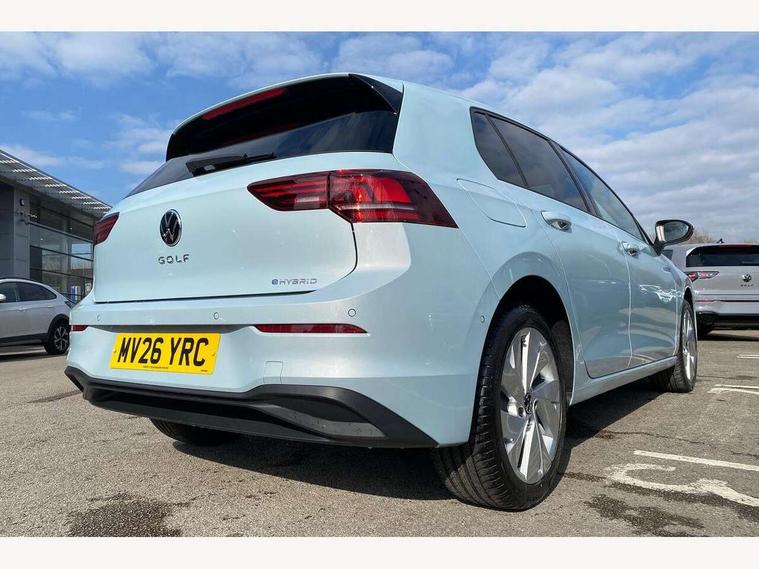 Activated carbon canister, Adaptive cruise control (ACC), Advanced driver attention and drowsiness monitor, Dynamic road sign display, E-Sim card for online connectivity, eCall emergency call system, Multi-color Digital cockpit pro, selection of different info profile possible, Multifunction front facing camera for distance control, Navigation system, Oncoming vehicle braking when turning including swerve support, Speed limiter, Speedo, rev counter, electronic odometer, trip, service interval display, exterior temperature and fuel gauge, Traffic jam assist, Voice enhancer and voice control, Warning signal and warning light for front and rear seatbelts not fastened, We connect plus preparation, We connect preparation, Wireless app connect, Charging cable Mode 2 Type 2 (10A), Charging cable mode 3, type 2 32 A, Electric motor (hybrid electric vehicle) total system output 200kw, unit OEK A, Hybrid propulsion system, Petrol Particulate Filter, Start-stop system with battery regeneration (recuperation - energy recovery during braking), XDS electronic differential lock for improved traction and handling, 2 USB C ports in front, 2 USB charging sockets on the centre console in the rear charging capacity upto 45W, 6 Speakers - 4 in front and 2 in rear with central speaker, Digital radio reception (DAB), Diversity antenna for FM reception, Gaming platform via car app, Infotainment system with 12.9" display, Mobile phone interface with inductive charging feature, 3rd brake light, Automatic headlamp activation with Coming home and Leaving home feature, Body colour door handles, Body colour door mirrors, Exterior mirrors convex on the left and aspherical on the right, Front and rear electric windows, Heat insulating windshield made of laminated glass, LED separate daytime running light, Rear exhaust tailpipe, Rear fog light on one side and reversing lights on both sides, Rear side wing doors, Rear tinted glass 65% light absorbing from B pillar backwards, Rear windscreen washer and wiper with interval delay, Remote electrically foldable door mirrors, puddle lights and reverse activated passenger's door mirror, Standard bumpers, Welcome light with surround lighting, 12V socket in front centre console, 12V socket in luggage compartment, 3 rear head restraints, 3 seat bench in 2nd row, Air care climatronic 3 Zone automatic climate control with rear air conditioning control panel, Chrome plated radiator grille inserts, air vent surrounds and light switch surrounds, Front + rear black carpet mats, Front centre armrest, Front head restraints, Front seat lumbar support adjuster, ISOFIX anchors for child seats on outer rear bench seats and on front passanger seat compatible for i-Size, Luggage compartment lighting, Manual height adjustable front passenger seat, Manually height adjustable driver seat, Plastic gear knob, Rear cupholder and loadthough, Single front passenger seat, Soul black instrument panel, Split folding backrest with centre armrest and unsplit rear seat bench, Standard pedal cluster, Storm grey roof lining, Sun visors with illuminated vanity mirrors, Technology park and comfort pro package - Golf Hatchback, 3 point height adj front seatbelts + pretensioners, 3 rear three point seatbelts, ABS, Autonomous emergency braking front assist with pedestrian and cyclist monitoring, Child locks on rear doors, Driver and front passenger airbag with front passenger airbag deactivation, Electronic parking brake with auto hold, ESC (Electronic Stability Control), Extended pedestrian protection measures, Hill start assist, Rear disc brakes, Two tone horn, Tyre pressure loss indicator, Volkswagen roadside assistance, Anti theft wheel bolts, Preparation for alcohol interlock, Nature cross brushed decorative inserts for dashboard and front door panels, Tool kit for tyre mobility set, Tyre mobility kit Includes 12V compressor and tyre sealant,