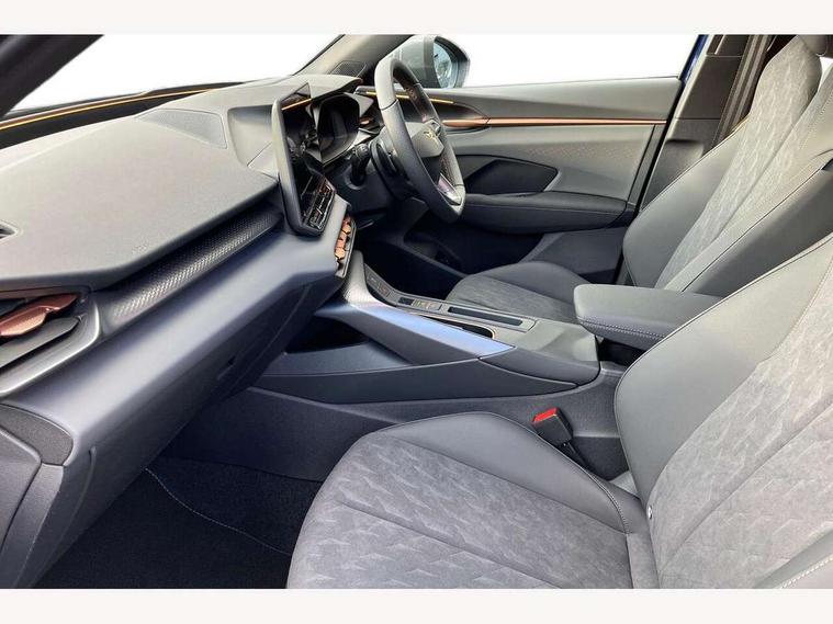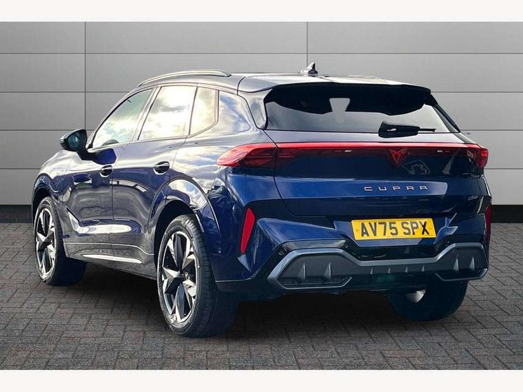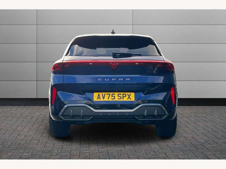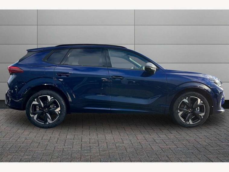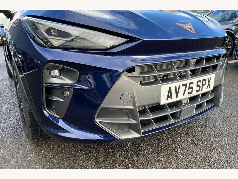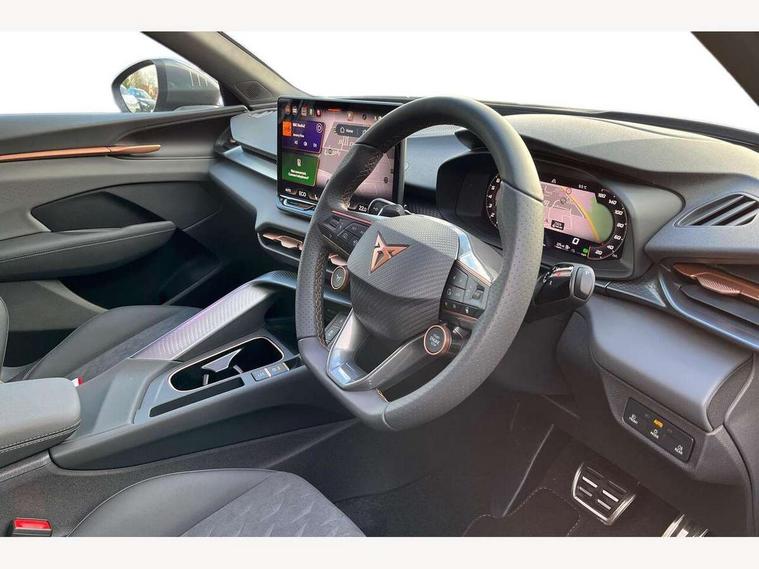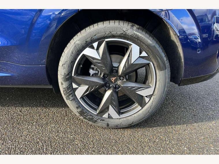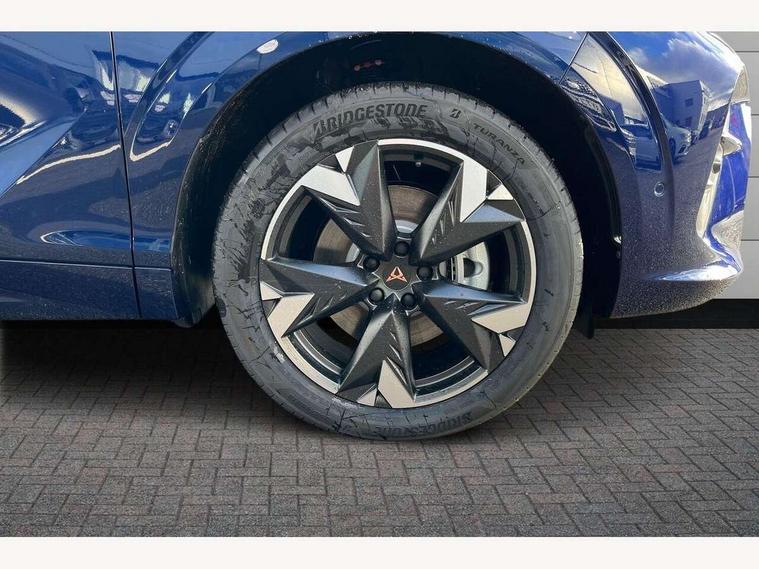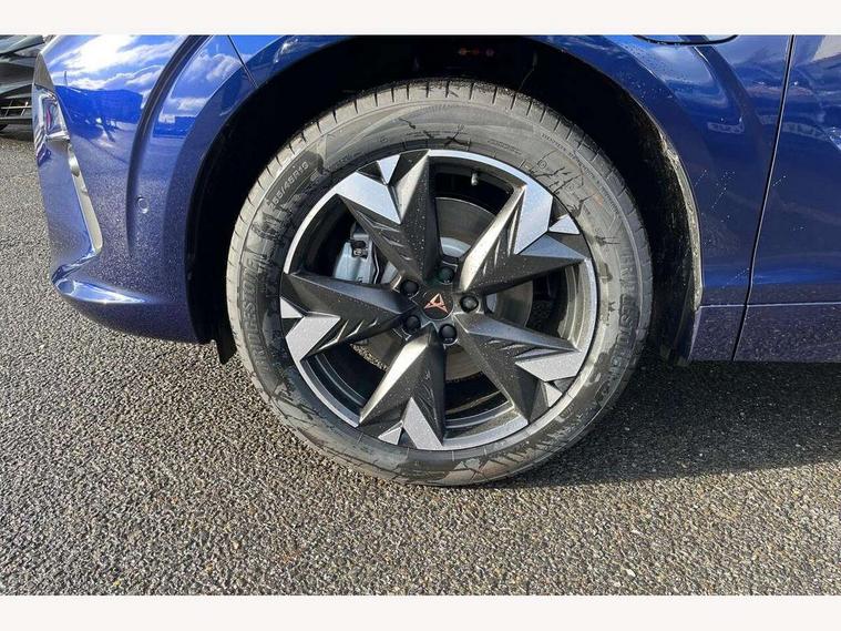 10.25" digital cockpit and configurable dashboard, Adaptive cruise control with follow-to-stop and speed limiter, Advanced driver alert system, Advanced lane assist with semi-automatic vehicle control in a medical emergency and traffic jam assist, Driving profile selection and conventional shock absorber, Dynamic road sign display, E-call, Electric tailgate with virtual pedal, Emergency steering support with turn assist, Front and rear parking sensors, Front assist (Forward collision warning with automatic braking) with multifunction camera and front cross traffic assist, Head up Display, Intelligent park assist, Media system with Nav - 12.9" touch display, voice control, full link phone (wired/wireless), DAB and Steering wheel mounted controls, Rear traffic assist, Side and exit assist, Speed sensitive power steering, Start/stop system with regenerative braking, Top view camera (front camera, rear camera, 2 side cameras), Wireless phone charger, 10 amp mode 2 charging cable, 16 amp mode 3 charging cable, CUPRA sport suspension, Auto dimming rear view mirror, Black roof rails, CUPRA 3D rear lights with ceremony & swiping indicator and illuminated logo, Dark tinted rear windows, Daytime running lights with automatic headlight control and Coming and Leaving home function, Door mirrors with memory function and lowing function on passenger mirror, Dynamic headlight range control, Electric front/rear windows, Electrically adjustable, heated and folding door mirrors, Front fog lamps with cornering function, Heat reflecting windscreen, High beam assist, LED headlamps with signature "CUPRA LED", Rain sensing wipers, Rear fog light on one side, back up light on both sides, Rear side wing doors, Rear wash/wipe, Third brake light, Welcome lights (within exterior mirror housing), 3 seat bench in 2nd row, Black roof lining, Cupra sports pedals, Dinamica cloth upholstery, Driver seat memory function, Electrically adjustable front seats including lumbar support, Four x USB Type C ports (2 in front and 2 in rear), Front and rear head restraints, Front and rear reading lights X 4, Front centre armrest, Heated front seats, Heated leather wrapped multi function sports steering wheel with tiptronic, Illuminated interior front door sills, Isofix, Operating voltage 12V, Single front passenger seat, Smart wraparound interior lighting, Sunvisors with illuminated mirror, Three zone climate control with control panel in rear, Unsplit rear seat bench, split folding backrest, with centre armrest, Variable luggage/load compartment floor, 3 point seatbelts in front with pretensioner and electric height adjustment, 3 point seatbelts on all rear seats, Brake control system - ESC and brake booster, Child proof door locks, Driver and front passenger airbags, Electronic parking brake, Front and rear disc brakes, Front interaction airbag, Front passenger airbag deactivation switch, Front side airbags with curtain airbags, Pre-crash front and rear seat belt tensioner, window closure and hazard lights, Tyre pressure monitoring system, Visual and acoustic seat belt reminder, electric contact in front and rear, Anti theft alarm, Keyless locking and starting system keyless advanced with safelock, Locking wheel bolts, Black decorative trims, Chrome interior detailing, 19" Spectrum exclusive machine alloy wheels, Breakdown kit, Tool kit,