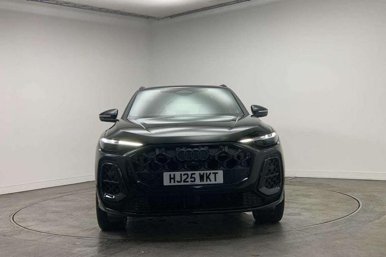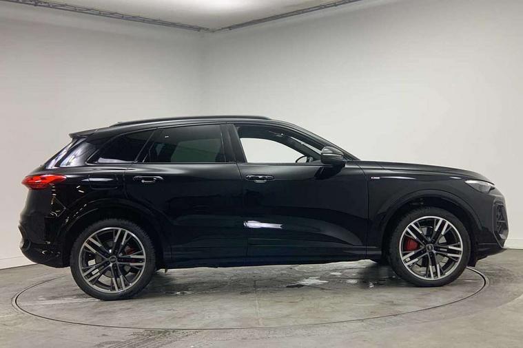 Adaptive cruise control, Advanced driver attention alert, Audi application store, Audi connect emergency call and service, Audi drive select, Audi smartphone interface, Audi virtual cockpit plus with 11.9" OLED colour display, Camera based traffic sign recognition, Fatigue monitor, Front cross traffic intersection assist, Lane change assistant with exit warning system, rear cross traffic alert and rear turn assist, Lane departure warning with emergency assist, MMI 10.9" front passenger touch display, MMI navigation plus with high resolution 14.5" OLED touchscreen colour display, Park assist plus, Parking system plus with 360 display, PAS, Reversing camera, Swerve assist and turn assist, Top view camera, Traffic sign based speed limiter, 2 USB-C ports in both the front and rear, Audi sound system impressive sound with 10 loudspeakers including centre speaker and subwoofer, 6-channel amplifier with a total output of 180 watts, DAB Digital radio, Smartphone compartment with wireless charging, Active digital light signatures - Six additional combinations of active daytime running light signature, Auto dimming rear view mirror, Black roof rails, Coming/leaving home lighting function, Electrically adjustable heated and folding + automatically dimming exterior mirrors, Exhaust tailpipes in dark chrome, Front and rear electric windows, Front door sill trims with aluminium inlays, illuminated with 'S' logo, Full body paint finish, Grill frame, inlay and front air inlets in matt anthracite chrome, Headlight cleaning system, Heated rear window, High beam assist, High gloss window surrounds, LED rear lights pro incl. dynamic rear indicators and illuminated light strip with animated coming and leaving home function, Logo projection light in exterior mirrors, Matrix LED headlights, Memory function for door mirrors, Privacy glass, Projection third brake light for rear window in LED, Radiator grille in phantom black, Rear and side windows with heat insulating glass, Rear honeycombe grille in matt black with inlay in matt anthracite chrome, Rear side wing doors, Rear wash/wipe, S Line badge on the front wings, Towbar preparation, Windscreen with acoustic glazing, 3 rear head restraints, 3 seat bench in 2nd row, 3 spoke leather steering wheel with multi-function buttons with touch control, flattened on top and bottom, with S badging and contrast stitching, 4 way electric lumbar support for driver and front passenger, 40:20:40 split folding rear seat bench with centre armrest and cup holders, Comfort centre armrest front, Deluxe 3 zone electronic climate control, Dinamica microfiber/leather upholstery, Electrically adjustable front seats with memory function for driver's side, Front and rear floor mats, Front sport seats with integrated head restraints, Headlining in black cloth, Heated front seats, i-Size child seat mounting on the front passenger side and outer rear seats, i-Size and top tether on the outer rear seats, Interior trim in aluminium look, Luggage compartment lid, electrically opening and closing, Manual steering column adjustment, Single front passenger seat, Softwrap in Dinamica, Stainless steel pedals and footrest, Steering wheel grips in perforated leather and shift paddles, Ambient lighting package plus - Q5, Black styling package plus - Q5, Storage and luggage compartment pack - Q5, 3x3 point rear seatbelts, ABS, Acoustic vehicle alerting system, Convenience key with safelock, Driver and front passenger airbag with passenger airbag deactivation, Electric child safety locks, First aid kit with warning triangle and high visibility vests, Front emergency brake assist, Front side airbags with head airbag system and front interaction airbag, Hill hold assist, Occupant detection in rear seat area, Proactive passenger protection system for front, sides and rear, Red brake calipers, Side airbags in front and rear with head airbag system and front interaction airbag, Tyre pressure loss indicator, Anti theft alarm, Anti-theft wheel bolts, Remote control key with SAFELOCK and keyless go, Accent surfaces and control buttons in gloss black, Black dashboard with contrast stitching, Steel grey seat stitching, Upper and lower interior elements in dinamica microfiber, Tyre repair kit,