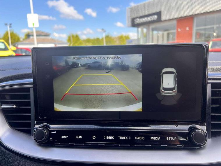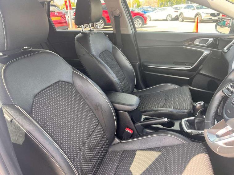 10.25" touchscreen satellite navigation including telematics, 4.2" supervision colour cluster display, Apple car play/Android Auto with voice control, Bluetooth with Voice Recognition & Music Streaming, Cruise control + speed limiter, Driver attention warning, Emergency stop signalling system, Forward Collision-Avoidance Assist (FCA) - City/Pedestrian, Kia connected services featuring TomTom live, Lane keep assist, Motor driven power steering, Outside temperature gauge, Rear parking sensor, Reversing camera with dynamic guide lines, Service interval indicator, Trip computer, Intelligent Stop and Go, 6 speaker audio system, DAB Radio with MP3, Illuminated USB & aux ports, Steering wheel mounted controls, USB & AUX Ports for Connection of a Media Device, USB Fast Charger in Front Centre Console, All-round Electric Windows with Front Auto Up & Down Function, Auto dimming rear view mirror, Automatic defog system, Automatic headlights, Body colour bumpers, Body colour door mirrors, Body colour exterior door handles, Chrome window surround, Electric adjustable/heated/folding door mirrors with LED Indicators and Kerbside Lights, Front fog lights, Front wiper de-icer, Heated rear window with timer, High beam assist, High gloss black radiator grille, LED daytime running lights, LED High-mounted Brake Light, LED rear lights, Privacy glass (rear side windows and rear screen), Projection headlights with cornering lights, Rain sensing front wipers, Rear spoiler, Rear wash/wipe, Roof rails, Tinted glass, Wide view drivers door mirror, Windscreen Washer Level Warning, 12V socket in luggage compartment, 3 x passenger assist grips, 40:20:40 Split Folding Rear Seats with Remote Folding, All-round height adjustable headrests, Centre console storage box/armrest, Cloth/faux leather upholstery, Cupholders in centre console, Cupholders in rear armrest, Dash illumination dimmer switch, Driver & Front Passenger Sunvisors with Vanity Mirror Illumination & Ticket Holder, Driver + front passenger electric lumbar support, Driver's seat height adjuster, Dual Height Luggage Area Floor, Dual zone automatic air conditioning, Faux leather door trim, Front and rear door storage, Front map light with sunglasses case, Front Passenger Seat Height Adjuster, Front seat and rear pockets, Gear shift indicator, Headlining in Light grey, Illuminated ignition key hole, Interior door lock/unlock function, ISOFIX Child seat top tethers and anchor fixings, Leather handbrake, Leather steering wheel and gearshift, Luggage area light, Luggage area parcel shelf, Luggage hooks, Rear centre armrest, Rear coat hooks, Satin chrome interior door handles, Tilt/telescopic adjustable steering wheel, ABS with Electronic Brakeforce Distribution (EBD) and Brake Assist System (BAS), All round 3-point seatbelts, Dual front side airbags, Dual horn, Electronic stability control (ESC) and vehicle stability management (VSM), Front passenger airbag deactivation, Height adjustable front seatbelts, Hill start assist control (HAC), Impact sensing auto door unlocking, Rear door child safety locks, Seatbelt reminder warning, Traction control, Twin curtain airbags, Twin front airbags, Tyre pressure monitoring system, Alarm system, Engine Immobiliser & Deadlocks, Locking wheel nuts, Remote central door locking with fold away key, Speed sensitive auto door locking, Black high gloss front console tray garnish & door trim, Satin Chrome Fascia Trim, 17" Alloy wheels, Tyre mobility kit,