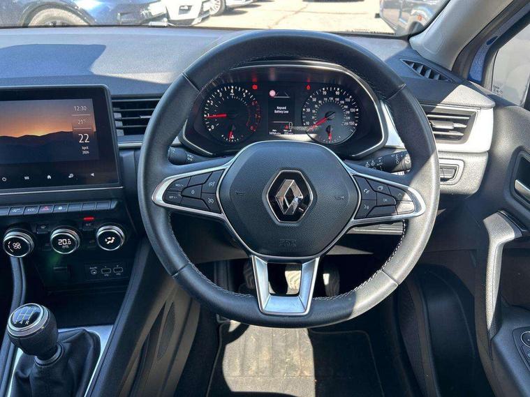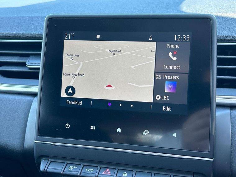 4.2" TFT Driver information display, Cruise control + speed limiter, eCall emergency call system, Eco mode, Gear change indicator, Lane departure warning system, Lane keep assist, Renault automatic emergency assist, Traffic sign recognition, Trip computer, Variable assistance power steering, EasyLink Nav 7" touchscreen, 4x20W amp, FM DAB, sound auditorium, 2xUSB, 1xJack, Bluetooth, smartphone integration plus, Apple carplay/Android auto, Automatic front wipers with rain sensors, Automatic headlights, Body colour door handles, Body coloured bumpers, Body coloured door mirrors, Electric adjustable/heated/folding door mirrors, Electric front windows + one touch + anti-pinch, Electric rear windows, Extra tinted glass in rear windows and tailgate, Full LED front and rear headlamps integrating daytime running lights at the front and rear, Gloss black side door protection with chrome effect, LED front fog lights, Rear fog lights, Rear wiper, Roof bars, Variable speed on front windscreen wipers, 12V Accessory socket, 3 rear headrests, 5.2L front glovebox, 60/40 split folding rear seat bench, Automatic climate control with one touch demist function, Centre console storage tray, Cloth upholstery, Front head restraints, Heating system with pollen filter, Height adjustable driver's seat, Height/reach adjust steering wheel, ISOFIX child seat fixing points on rear outermost seats, Middle console with armrest and storage, Rear air vents, Synthetic leather steering wheel, 3 rear seatbelts, ABS+EBA, AEBS, Distance warning alert, Driver and front passenger, side, head and curtain airbags, Driver height adjustable seat belt, Electric parking brake, Electronic stability control, Front and rear no seatbelt warning sound, Front dash warning indicator in case of heavy braking, Front driver and passenger side airbag deactivation, Hill start assist, Rear door and window child locking function for rear door, Tyre pressure warning light, Anti drill door locks and locking fuel cap, Deadlocking system, Hands free keycard with push button and start/stop function, RAID (Renault Anti-Intruder Device) automatic door locking, Remote central locking with thatcham approved immobiliser, Black soft touch dashboard with black gloss air vent surrounds,