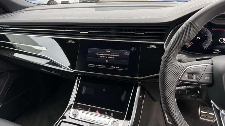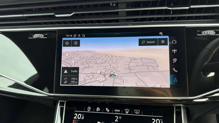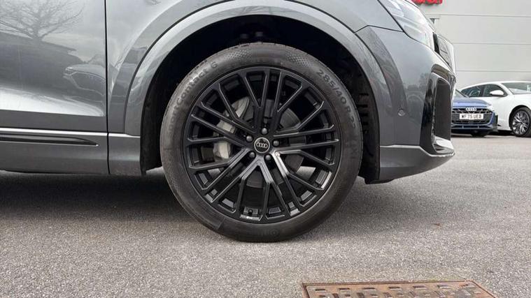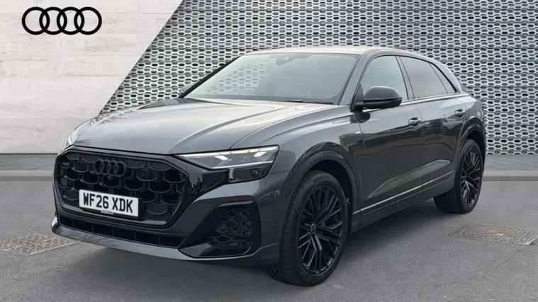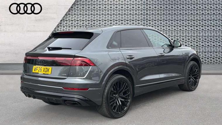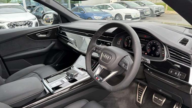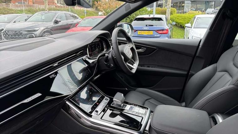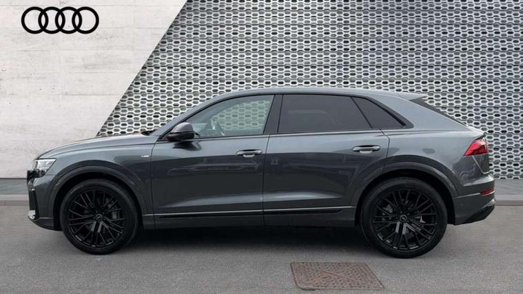 10.1" and 8.6" Dual colour touchscreens, Audi application store, Audi connect safety and service (e-call), Audi connect with Amazon Alexa Integration, Audi drive select, Audi parking system plus includes 360 degree display with front and rear sensors, Audi phone box light with wireless charging, Audi virtual cockpit - 12.3" high resolution LCD display with fully customisable instrument cluster, Automatic start/stop system, Bluetooth, Camera based traffic sign recognition, Electro-mechanical PAS, Low washer fluid indicator, MMI navigation plus with MMI touch, Natural voice recognition, On board computer, Operating buttons in black, glass look with haptic feedback, Power operated tailgate, Rear view camera, Service interval indicator, Smartphone interface includes wireless Apple carplay/Android Auto, 48V Mild hybrid technology, 85 litre fuel tank, Adaptive sport air suspension, Quattro all wheel drive with self locking centre differential, Audi music interface with 2 USB ports with charge and data functions, Audi sound system with 6 channel amplifier, 180 watt amplifying capacity and 10 loudspeakers including subwoofer, Aux-in socket, DAB Digital radio, 3rd brake light, Audi beam, Auto dimming frameless rear view mirror, Black exhaust tailpipes, Black single frame mask, Coming/leaving home lighting function, Electric front+rear windows, Electrically folding auto dimming/adjustable/heated door mirrors with memory function, LED side indicators and kerb view function for passenger side, Headlight washers, Heat insulating glass in windshield, LED rear light plus, LED signature daytime running lights, Loading edge protection in stainless steel, Matrix LED headlights with dynamic front and rear indicators, Platinum grey front spoiler lip and diffuser insert with honeycomb grille in black, Privacy glass - dark tinted rear and rear side windows from B-pillar backwards, Rain and light sensors, Rear side wing doors, Rear wiper, Singleframe grille surround in matte platinum grey, 2 zone automatic climate control, 3 bench rear seats in 2nd row, 4-way lumbar support for front seats, 40:20:40 split folding rear bench seat, Black cloth headlining, Driver seat memory function, Electrically adjustable front seats, Front head restraints, Heated front seats, ISOFIX child seat mounting for front passenger seat and 2 outer rear seats with top tether child seat mounting for all 3 rear seats, LED interior ambient lighting, Luggage compartment cover, Luggage compartment sill protection in stainless steel, Rear centre armrest with 2 cupholders, Rear headrests, Seat cushion displaceable by 100mm in the ratio 60:40, Single front passenger seat, Stainless steel pedals, Sunvisors with illuminated vanity mirrors, Black styling pack plus - Q8, 3 point seatbelts on all seats, Audi pre sense front, Convenience key with safelock, Driver and front passenger, front side and curtain airbags, Electromechanical parking brake, Electronic Stability Control (ESC) including ABS, ASR and EDL, Front passenger airbag deactivation, Hill descent control, Hill hold assist, Predictive pedestrian protection, Seatbelt monitoring, Traction control, Tyre pressure loss indicator, Warning triangle and first aid kit, Anti theft alarm with tow away protection, Anti-theft wheel bolts and wheel loosening detection, Electronically operated child lock, Immobiliser, Keyless go with remote central locking, Polished oak trim with grey finish inlay, Tool kit, Tyre repair kit,