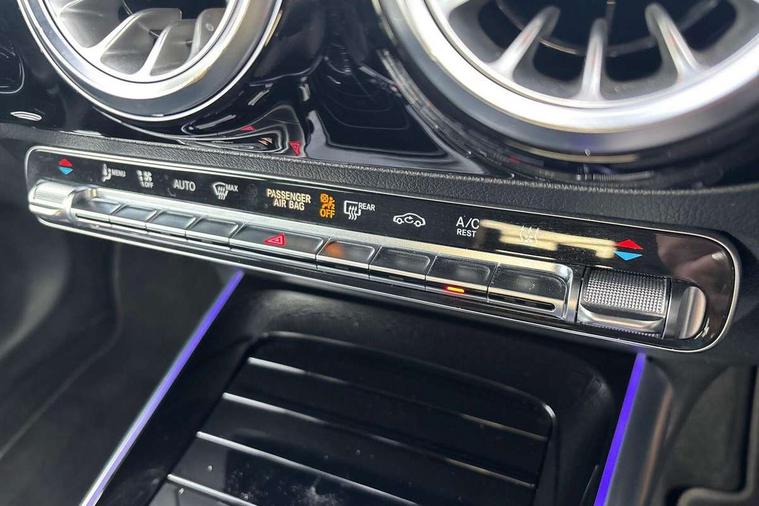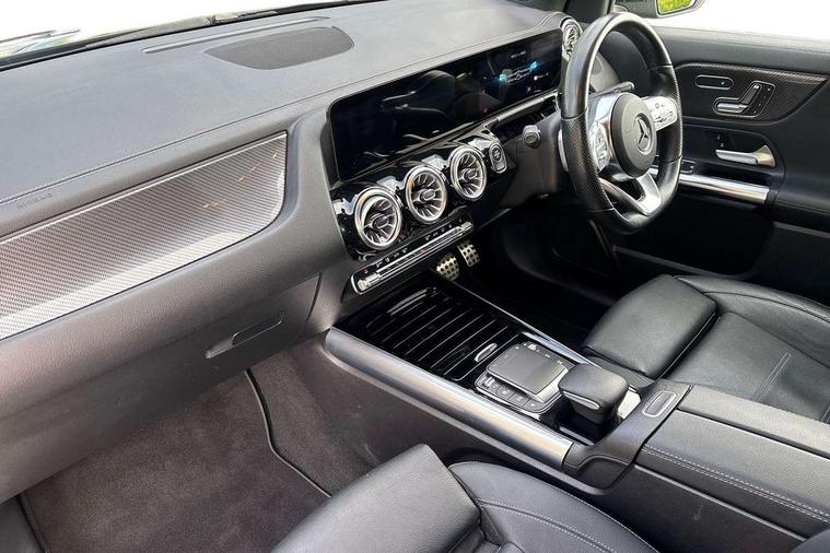 10.25 inch touchscreen central media display, 10.25" Digital instrument cluster display screen, Acoustic ambient protection, Active lane keeping assist, Attention assist, Direct steering, DYNAMIC SELECT with a choice of driving modes (ECO, Comfort, Sport and Individual), ECO start/stop function, Fluid level warning indicator for fuel, oil, coolant and washer fluid, Hard-disk navigation, Hey Mercedes Voice activation, Lamp failure indicator, Mercedes me connect including emergency call system, accident recovery, breakdown management and maintenance, Mercedes me remote services, Multi function trip computer, Outside temperature gauge, Owners manual and service booklet in English, Pre-installation of private car share, Radio aerial integrated into front and rear windshields, Remote and charging services plus, Service indicator (ASSYST), Smartphone integration with Apple CarPlay and Android auto, Status display for rear seat belts in instrument cluster, Traffic sign assist, 5m charging cable for wall box/public charging stations(mode 3), 7.4 kW onboard charger, Charging system - AC charging system rated at 7.4 kW, Comfort suspension, Mode 2 charging cable with 3 pin plug, Rear axle multi-link, 2 USB ports (type C) in rear stowage compartment and one in front of center console, Bluetooth connectivity including audio streaming, DAB Digital radio, MBUX multimedia system, Media interface, Mercedes-Benz (225w) sound system with 10 speakers, Adaptive brake lights, Aerial for GPS, Aluminium roof rails, AMG front and rear apron, AMG specific/dual flow exhaust pipes in chrome (non-functional), Automatic headlamp activation, Beltline strips and weather strip in chrome, Black grained claddings with chrome parts, Body colour bumpers, Body colour door mirrors, Body coloured door handles with chrome insert for keyless entry, Car wash function, Dark privacy glass from B-pillar backwards, Electric front windows, Electric rear windows, Electrically adjustable and heated door mirrors with integrated LED indicators, Heated glass rear windscreen + timer control, Heated windscreen wash system, Interior mirror with black reading lamps and frameless, LED tail lights in two piece design, LED third brake light, Matt titanium grey front and rear apron trim, Multibeam LED headlamps with adaptive highbeam assist and cornering function, Panoramic sunroof, Pre-installation for trailer coupling, Rain sensor windscreen wipers, Rear fog lights, Rear side wing doors, Rear wiper, Roof spoiler, Single lamella raditor grille with chrome dotted diamond grille and inlay, 12V power socket in centre console, 3 seat bench in 2nd row, 3 spoke multifunction sports steering wheel in nappa leather with flattened bottom and perforated grip area, 40:20:40 split folding rear seats with backrest, Adjustable head restraints, Air conditioning - Two zone thermotronic luxury automatic climate control with display, Ambient lighting in front headrests, AMG floor mats with AMG lettering in front, Auto Mercedes-Benz child seat recognition sensor, Black roof lining, Brushed door pulls in silver chrome, Charging socket, Courtesy light in boot, Front centre armrest with stowage, Galvanished gear shift paddles on steering wheel, Heated front seats, illuminated door sills with changeable cover, Illuminated glovebox, Interior lighting - 64 colour Ambient lighting, Leather trimmed gearknob, Luggage net on driver/front passenger seat backrest, Manually height and reach adjustable steering column, Multi-gesture touchpad control on center console, Pre-entry climate control, Single front passenger seat, Sports pedals in brushed stainless steel with black rubber studs, Sports seats, Stowage compartment in centre console, Stowage compartment with retractable cover, Sunvisors with illuminated vanity mirrors, Twin front cup holders, Two outer rear seat isofix and top tether child seat fixing points, AMG body styling pack - GLA, Comfort seat pack - GLA Class, Interior lighting with light and sight pack - GLA, Load compartment pack - GLA, Mirror pack - GLA Class, Parking pack - GLA, 3 rear 3 point seatbelts, ABS with Brake Assist, Active bonnet pedestrain safety measure which detects an impact and raises bonnet by 65mm, Active brake assist includes forward collision warning system with autonomous braking, Adaptive brake assist with hold function and hill start assist, Bonnet with power domes, Brake pad wear warning indicator, Childproof locks manually operated for rear doors and electrically operated for rear power windows, Crash responsive emergency lighting, Driver and passenger head and side airbags, Drivers knee airbag, Dual stage driver/passenger airbags, Electronic parking brake, ESP curve dynamic assist, ESP with ASR, Front and rear seatbelt reminder, Front brake callipers with Mercedes Benz logo lettering on front, Front passenger seat occupancy sensor, Internally ventilated brakes with perforated brake discs at the front, Radar-based recuperation, Tyre pressure monitoring system, Warning triangle and first aid kit, Window airbags, Alarm system with immobiliser and interior protection -Thatcham category 1, Keyless Go starting function, Remote central locking and crash sensor with emergency opening function, Urban guard vehicle protection, Vehicle key with decorative surround in chrome, Carbon structure trim, Chrome air vent surrounds, 19" AMG 5 twin spoke light alloy wheels aerodynamically optimised painted in tantalite grey with a high sheen finish, Summer tyres, Tirefit tyre sealant kit,