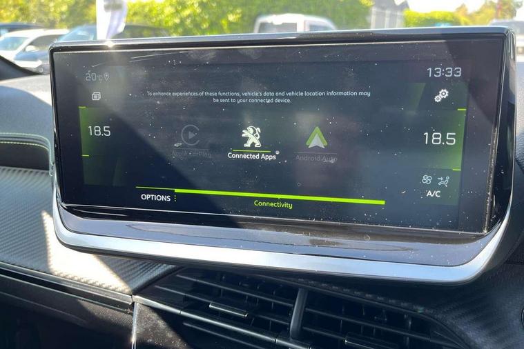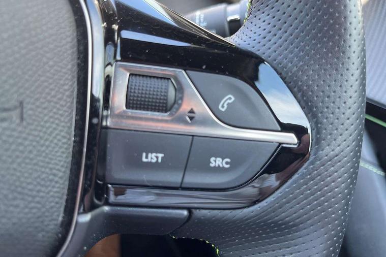 10" Capacitive colour touchscreen with connected 3D navigation, Bluetooth telephone facility, Driver attention warning, Exterior temperature indicator with ice warning, Lane keep assist, Mirror screen with mirror link, apple carplay and android auto, Multi function trip computer, PEUGEOT i-Cockpit with compact steering wheel, PEUGEOT i-Cockpit with configurable 3D headup instrument panel, PEUGEOT SOS and assistance, Push button start, Smart phone docking station, Speed limit recognition and recommendation, Start/stop system, Visio park assist 180 with colour reversing camera + front and rear parking sensor, 2 front USB socket with USB-C, 2x USB sockets in rear, 6 speakers radio with mp3 compatible, DAB Digital radio, Voice recognition for radio, navigation and telephony features, 2 X Rear number plate lights, Automatic hazard light activation upon heavy brake application, Automatic lights, Automatic windscreen wipers, Body coloured exterior door handles, Dark tinted rear side and tailgate windows, Diamond black rear spoiler (roof), Diamond Black roof, Electric front windows + one touch + anti-pinch, Electric rear windows with one touch/anti-pinch, Electrically adjustable, heated and power folding door mirrors, Follow me home headlights, Frameless electrochrome interior rear view mirror, Full LED headlights with smartbeam assist, Gloss black finish on B pillar, Gloss black rear cluster connecting strip, Gloss black wheel arch extensions, Gloss black window surround, GT model designation badging on C pillar, GT model designation badging on tailgate, Headlights left on audible warning, LED daytime running lights with 3 claw headlight with distinctive tooth design, LED side indicator lights integrated into door mirrors, LED third brake light, Model designation badges front and rear, Nera black door mirror shells, Peugeot scuff plates, Radiator grille - Dark chrome chequered and gloss black edge trim, Rear bumper with gloss black finish, Rear full LED 3D peugeot signature claw effect lights with daylight function, Rear lower bumper diffuser effect trim in gloss black, Rear reversing lights, Rear side wing doors, Rear windscreen wiper triggered automatically in reverse gear, Roof mounted aerial with fin design, Roof spoiler, Single chrome exhaust tailpipe, Tailgate with heated rear windscreen and wiper blade, Variable front intermittent wipers, 1/3 to 2/3 split folding rear seats, 12V socket, 3 seat bench in 2nd row, 8 Colour personalisable ambient lighting, Aluminium pedals and foot rest, Automatic air conditioning, Driver and front passenger seat manual adjustment in longitudinal and back rest angle, Driver and front passenger seat mechanical height adjustment, Driver and front passenger sport seats, Electric power steering with reach and rake adjustable steering column, Front and rear carpet mats in black with lime green stitch detail, Front centre armrest with storage compartment, Front LED interior light with 2 reading spotlights and rear interior light with timer, Gear shift indicator, High centre console with 2 cup holders, ISOFIX child seat mounting points on passenger seat, Lime green contrast stitching to armrest, front centre console, door panels and dashboard facia, Map pockets on the backs of the front seats, Mistral full grain perforated leather steering wheel with aikinite stitch detail and satin chrome 'GT' emblem, Piano keys gloss black plated toggle switches to access main functions of the vehicle, Piano keys gloss black plated toggle switches to access touchscreen functions, Rear centre headrest, Roof lining - Mistral black, Satin chrome gear lever with black stitching, Seatbelt unfastened on the move audible and visual alert for front and rear seats, Single front passenger seat, 3 rear 3 point seatbelts, ABS (Anti-lock Braking System) with EBD (Electronic Brakeforce Distribution) and EBA (Emergency Braking Assistance), Active safety brake with night function/cyclists/pedestrians, Adaptive driver and front passenger airbags with passenger airbag deactivation function, Child locking functionality on rear doors, Driver/front passenger side airbags, Electric parking brake, ESP with Hill Assist, Front and rear curtain airbags, Front and rear disc brakes, Front optimised safety headrests and 3 x rear retractable headrests with height adjustable, Front three point retractable seatbelts with force limiters, Tyre pressure sensor, Acoustic vehicle alert system (AVAS), Automatic door locking when moving off, Deadlock, Electronic code immobiliser, Remote central locking, Thatcham cat. 1 alarm with anti lift sensor, Carbon effect Dashboard, front and rear door panel finish, 17" Bronx two-tone alloy wheels, Space saver spare wheel,