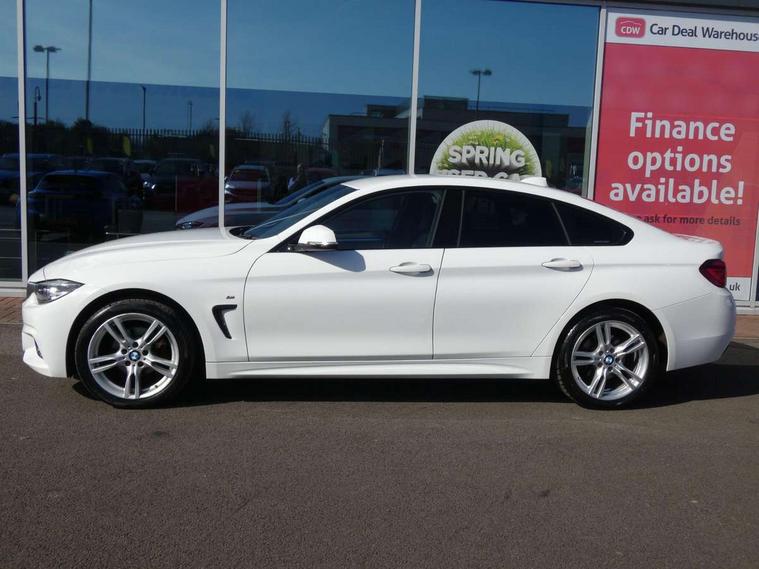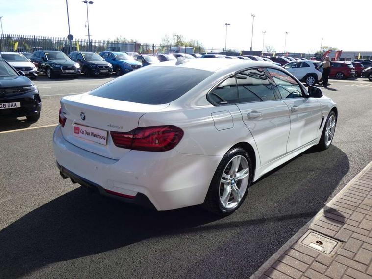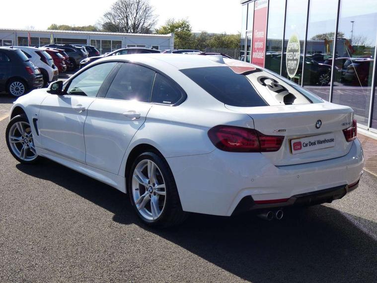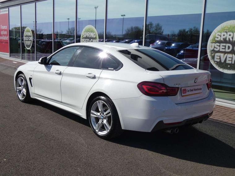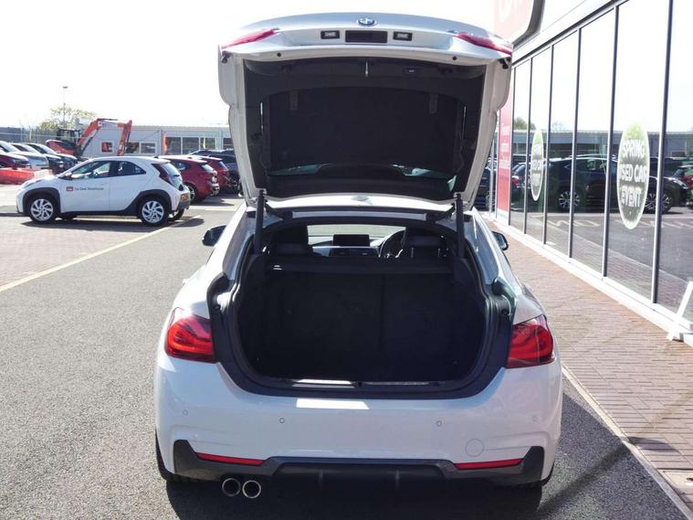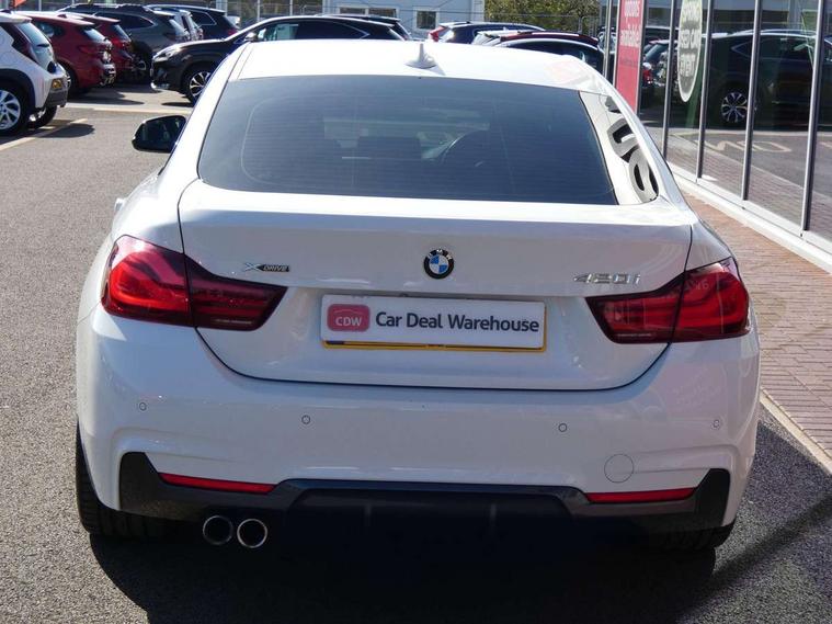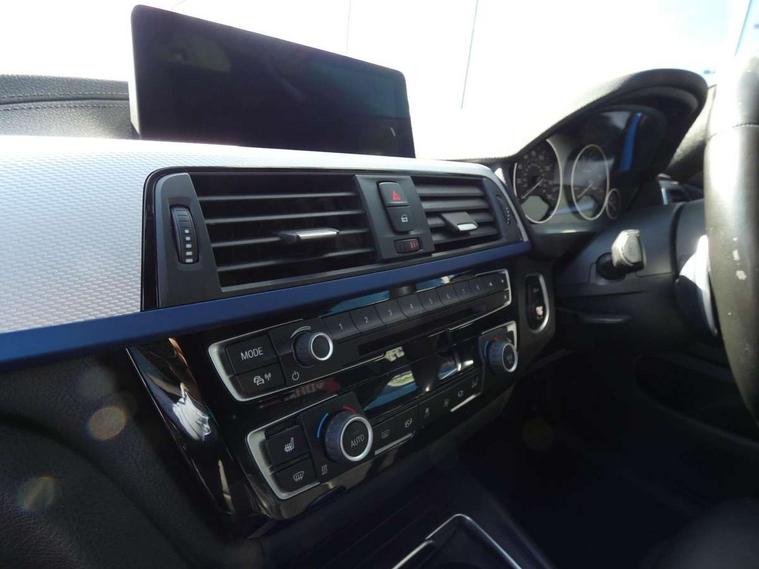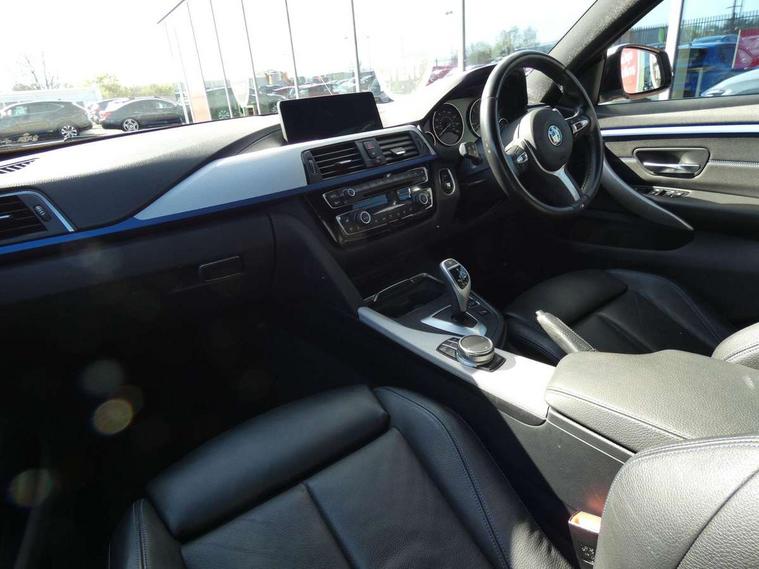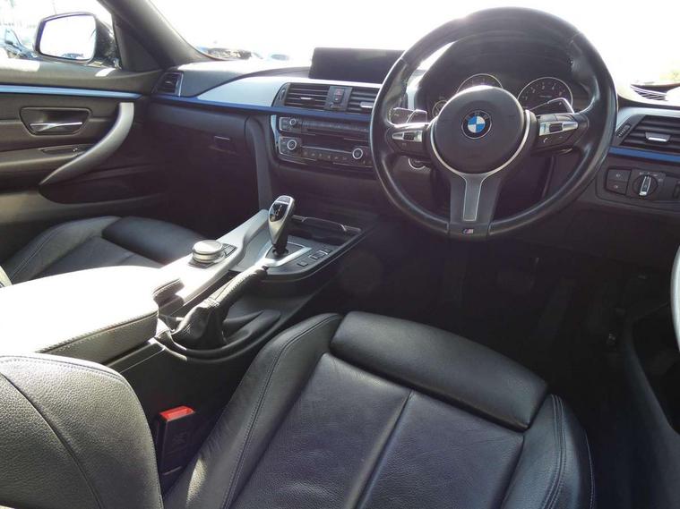 Auto start-stop, Automatic tailgate operation, BMW Online services, BMW remote services, BMW Teleservices, Brake pad wear indicator in front and rear, Check Control warning system for monitoring of lights and door/luggage compartment open warning, Condition based service, Control display - 6.5" colour display screen, Front/rear park distance control (PDC), iDrive Controller with 8 favourite buttons, Instrument cluster with speedometer with mph readout, tachometer, fuel gauge and oil temperature gauge, Lights on warning by audio warning signal when ignition is switched off, M Sport instrument cluster, Oil sensor for level and grade, warning by check control system, On board computer - average speed, fuel consumption, outside temp display with acoustic warning, clock/date, service interval, odometer/trip meter, Optimum shift indicator, Personal Profile - automatic lock when driving away selectable, Professional multimedia navigation system, Run flat indicator, Aluminium front suspension, Drive performance control with ECO PRO comfort + sport mode, Electronic differential lock, Five link rear suspension, Permanent all wheel drive, Sport automatic transmission with steering-wheel mounted gearshift paddles and launch control, VALVETRONIC engine management, DAB tuner, Auto dimming rear view mirror, Body colour door handles, Body colour front bumper, Body colour mirror caps, Body colour rear bumper, Body colour roof mouldings, Chrome kidney grille with extra wide black, high gloss black vertical slats, Direction indicator, side repeaters, integrated in exterior mirrors, Door sill finishers with M designation, Dual exhaust tailpipes in left with chrome finisher, Dynamic brake lights, Electric front windows with fingertip open/close + anti-trap facility, Follow me home headlights, Front air inlet with high gloss black finish, Front and rear bumper system, Green tinted heat protection glazing, Heated windscreen washer jets, Heated, electrically adjustable exterior mirror aspheric on driver side, convex on passenger side, High gloss black air breather, High gloss black rear bumper insert, High gloss shadow line exterior trim, High level third brake light, LED daytime running lights, LED direction indicator lenses, LED eyebrow light, LED front fog lights, LED tail lights with 3D L-shaped LED light design, Lightweight engineering, M aerodynamic bodystyling, Model designation, Rain sensor including auto headlights activation, Shark fin antenna, Two speed adjustable intervals windscreen wipers, Visible VIN plate, Welcome lighting, Windscreen with grey shadeband, 12V sockets in front centre console and passenger footwell, 2 Rear seat headrests, 3 spoke leather M sport multifunction sports steering wheel, 4 grab handles, Air conditioning and radio control panel in high gloss black, Ambient lighting - switchable BMW classic orange/ cold white LED, Anthracite headlining, Automatic air conditioning with two zone control, Bottle holders integrated into front door trim storage compartments, Chrome centre console panel highlight, Driver and front passenger seat heating, Front and rear side armrests integrated into door trim, Front folding sliding armrest with storage compartment, Front head restraints, Front sports seats, Full black panel display, Glove compartment, Interior lighting, front centre over interior mirror and rear centre automatic interior light activation when door is opened, Leather gearknob and handbrake lever, Load lashing eyes in luggage compartment, Reach + rake manual adjustable steering column, Rear child seat isofix attachment with passenger airbag deactivation, Rear coded belt buckles, Storage compartment in rear centre console, Sunvisors with vanity mirrors and ticket pocket, Toolkit located in luggage compartment, Two front cup holders with a sliding lid, Velour floor mats, Extended lighting package - 4 Series Gran coupe, Non Smokers pack, 3 point seatbelts on all seats, Airbag - Front driver and passenger, front and rear head, front side, curtain head protection, manual deactivation of front passenger airbag possible, Anti lock braking system (ABS) with brake assist, Automatic Stability Control (ASC), Battery safety cut-off, BMW emergency call, Brake drying, Brake energy regeneration, Brake pretensioning, CBC - (Cornering brake control), Crash sensor activating central locking release, hazard warning lights, Dynamic brake control, Dynamic stability control + (DSC+), Dynamic Traction Control - DTC, Front and rear ventilated brake disc, Front seatbelt force limiters, Hill start assistant, Pyrotechnically pre-tensioned front seatbelts, Seat belt security check for driver, Side impact protection, Twin horns, Tyre pressure monitoring with three level warning strategy, Variable torque distribution, Warning triangle and first aid kit, Alarm system (Thatcham 1) with electronic engine immobiliser, Central locking switch for all doors, fuel filler cap and luggage compartment, Remote control integrated key with blue inset, Start/stop button with Comfort Go keyless engine start and auto Start/stop deactivation button, Reduced rolling resistance tyres, Run flat tyres,