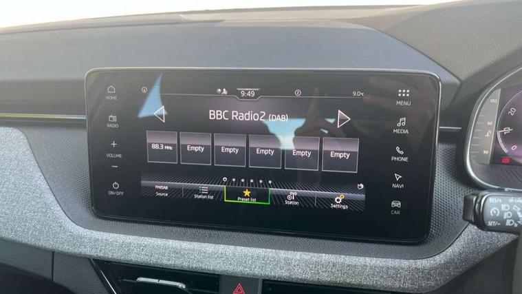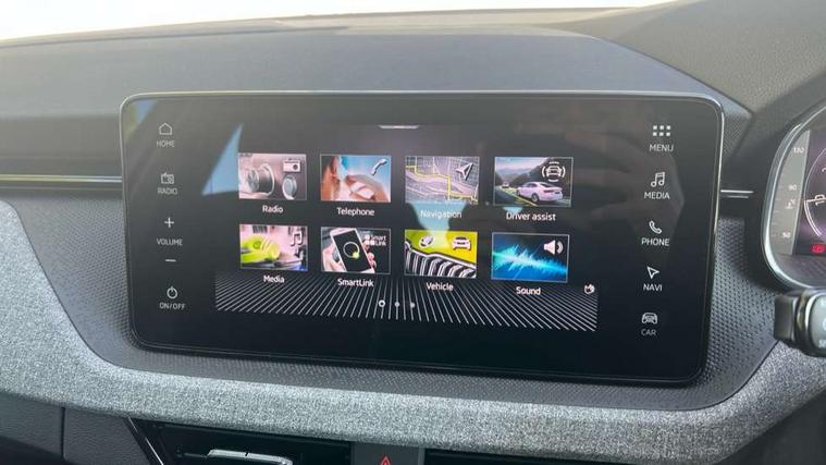 Advanced driver attention and drowsiness monitor, Bluetooth, e-Call (emergency call), Front assist system, PAS, Rear parking sensors, Rear view camera, Speed limiter, Tailgate, Traffic sign recognition, Virtual Cockpit - 10.25" digital display, Wireless smartlink, 4 USB C ports, 8 Speakers, 9.2" Skoda navigation display, DAB radio, Auto dimming rear view mirror, Automatic headlight control with manual coming and leaving home feature, Automatic intermittent wipers, Black window frames, Body colour bumpers, Body colour door mirrors and handles, Chrome moulding around grille, Front and rear electric windows, Full LED headlights, Heated rear window, LED 3rd brake light, LED daytime running lights, LED front turning lights, LED high beam, LED low beam, Rear LED fog light, Rear side wing doors, Rear wiper, Tinted windows, Unique dark chrome design logo on alloy wheels, 12V socket in luggage compartment, 3 seat bench in 2nd row, Black / Grey armrest stitching, Black hotstamping, Cargo elements, Chrome inner door handles, Door inserts in satin black, Driver and passenger sun visors with vanity mirror, Dual zone climate control, Front and rear roof lights, Front centre armrest, Front head restraints, Glasses storage in roof liner, Height adjustable driver seat, Height adjustable passenger seat, Ice scraper, Illuminated glove compartment, Inner circulation control with pollen filter, ISOFIX for front passenger seat, Isofix preparation for back seats, Leather gearknob and handbrake lever, Loft cloth upholstery, Luggage net under rear parcel shelf, Manual lumbar support for front seats, Net package and top tether hooks in boot space, Pocket on the back of both front seats, incl. mobile phone pockets, Single front passenger seat, Skoda lettering on steering wheel, Textile floor mats, Third rear headrest, Ticket holder, Top tether for front passenger seat, Umbrella in driver's door, 3x3 point rear seatbelts, ABS, Child locks, Curtain airbags and front side airbags, Disc brakes, Driver and front passenger airbags, ESP, Hill hold control, Manual leather parking brake, One tone horn, Passenger airbag switch off function, Seatbelt reminder for driver and front passenger, Tyre pressure monitoring system, Anti theft alarm system with interior monitoring, backup horn and towing protection, Anti-theft wheel bolts, Remote central locking with 2 remote folding keys, SAFE function for remote central locking, Decord pad, door inserts Kota uni,