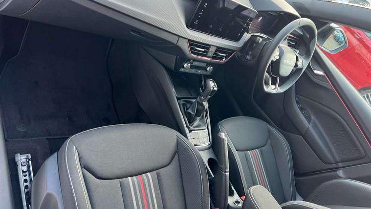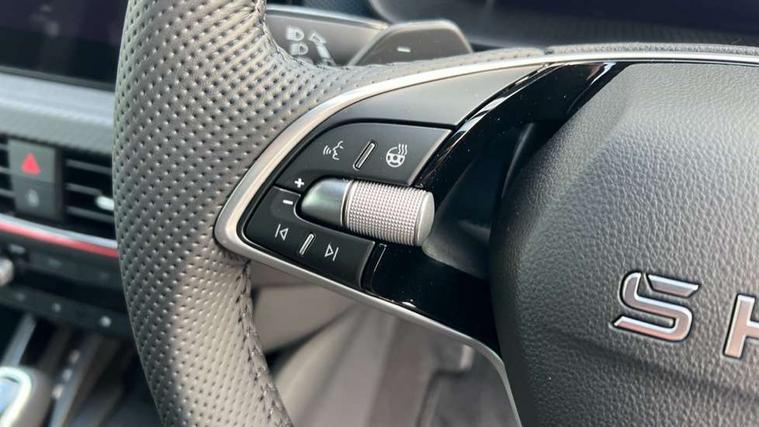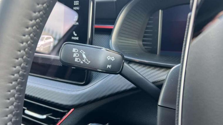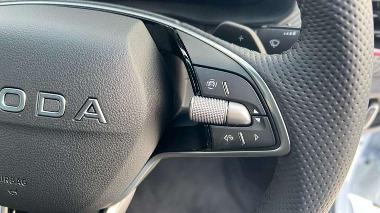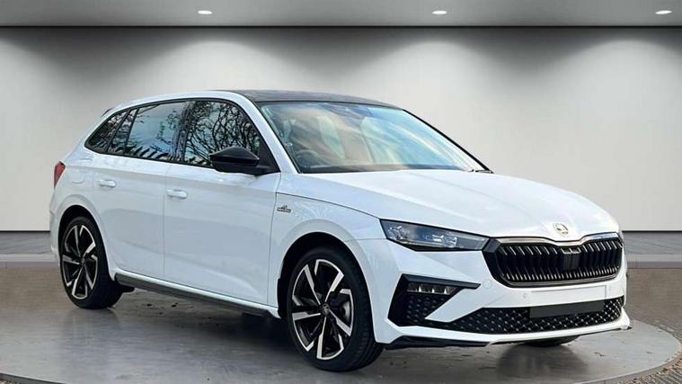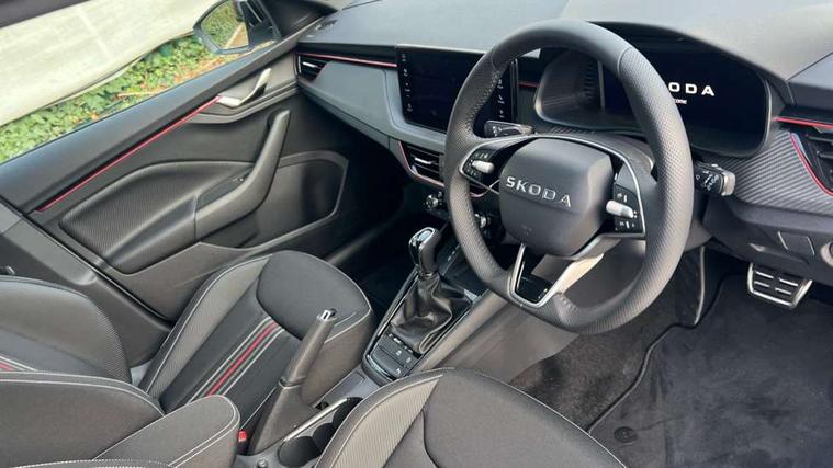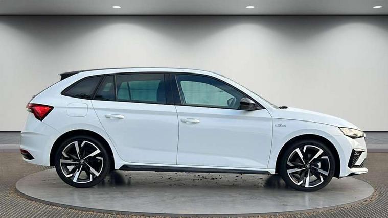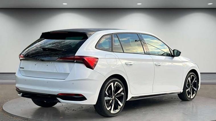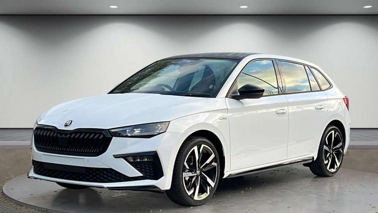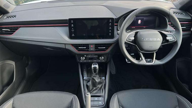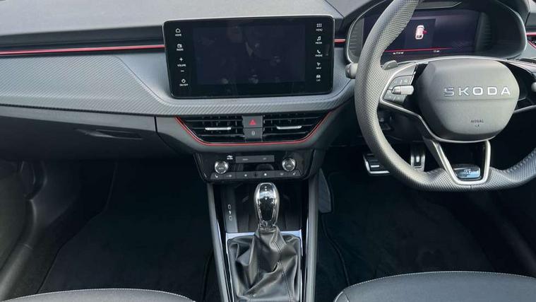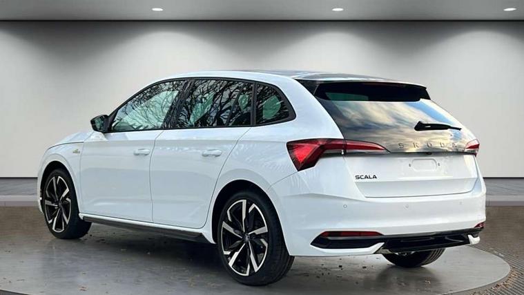 Advanced driver attention and drowsiness monitor, Bluetooth, e-Call (emergency call), Front assist system, PAS, Rear parking sensors, Rear view camera, Speed limiter, Tailgate, Traffic sign recognition, Virtual Cockpit - 10.25" digital display, Voice control system, Wireless smartlink, Drive mode select with Sport Chassis Control and ECO mode, 4 USB C ports, 9.2" Skoda navigation display, DAB radio, Auto dimming rear view mirror, Automatic headlight control with manual coming and leaving home feature, Automatic intermittent wipers, Black door mirrors, Black lettering on boot lid, Black radiator grille, Black rear diffuser, Black roof spoiler, Black window frames, Body colour bumpers, Body colour door handles, Extended tailgate glass, Front and rear electric windows, Heated rear window, LED 3rd brake light, LED daytime running lights, LED high beam, LED low beam, Light sensors, Monte carlo plaque, Panoramic glass roof, Privacy glass, Rear LED fog light, Rear side wing doors, Rear wiper, Tinted windows, Unique dark chrome design logo on alloy wheels, 12V socket in luggage compartment, 3 seat bench in 2nd row, Aluminium pedals, Ambient lighting in white/red, Black / White armrest stitching, Black roof headlining, Cargo elements, Chrome inner door handles, Door inserts in art.leather carbon, Driver and passenger sun visors with vanity mirror, Dual zone climate control, Front and rear roof lights, Front centre armrest, Front head restraints, Height adjustable driver seat, Height adjustable passenger seat, Ice scraper, Illuminated glove compartment, Inner circulation control with pollen filter, ISOFIX for front passenger seat, Isofix preparation for back seats, Leather gearknob and handbrake lever, Luggage net under rear parcel shelf, Manual lumbar support for front seats, Monte Carlo cloth upholstery, Net package and top tether hooks in boot space, Pocket on the back of both front seats, incl. mobile phone pockets, Rear centre armrest, Red hotstamping, Single front passenger seat, Skoda lettering on steering wheel, Sport seats, Textile floor mats, Third rear headrest, Ticket holder, Top tether for front passenger seat, Umbrella in driver's door, Light and view plus pack - Scala, 3x3 point rear seatbelts, ABS, Child locks, Curtain airbags and front side airbags, Disc brakes, Driver and front passenger airbags, ESP, Hill hold control, Manual leather parking brake, One tone horn, Passenger airbag switch off function, Seatbelt reminder for driver and front passenger, Tyre pressure monitoring system, Anti theft alarm system with interior monitoring, backup horn and towing protection, Anti-theft wheel bolts, Remote central locking with 2 remote folding keys, SAFE function for remote central locking, Carbon effect decorative inserts, 18" Ursa black diamond cut alloy wheels,