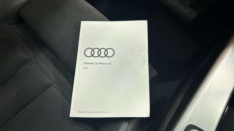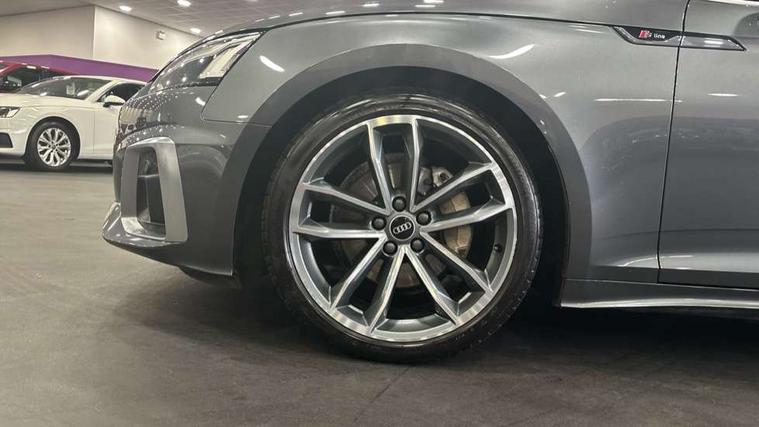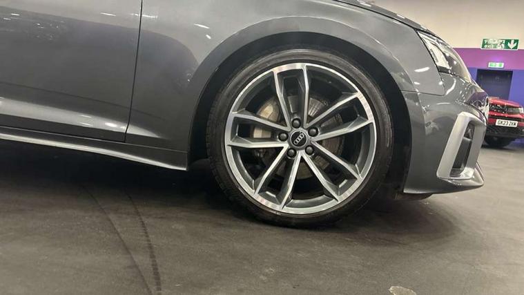 Audi connect safety and service (e-call), Audi drive select (Auto, Comfort, Dynamic, Efficiency and Individual), Audi parking system plus with front and rear sensors, Audi phone box with wireless charging, Audi smartphone interface, Audi virtual cockpit - 12.3" full colour digital instrument cluster, vehicle/engine speed, Radio/media information+Driver assistance systems, Automatic start-stop system with coasting functionality and efficiency programme, Bluetooth interface, Electric boot lid release, Electro-mechanical power steering, Email, calendar and text messages displayed via MMI, MMI nav+ with MMI touch - 10.1" high resolution MMI display, touch sensitive, 3D map, route/country info, dynamic route guide, personal route assist, Rear view camera, Service interval indicator, Voice control system, Sports suspension lowered by 23mm, 8 passive loudspeakers, CD player, DAB digital radio reception, Two additional USB ports for rear passenger in rear centre console, Two SDXC card slots, Audi matrix LED headlights with LED rear lights + dynamic front and rear indicators, Auto dimming rear view mirror, Body colour bumpers, Body colour door handles, Body colour front spoiler lip, Body colour side sill trim, Body coloured door mirrors, Electric adjustable heated door mirrors, Electric folding door mirrors, Electric front windows, Front fog lights, Honeycomb structure radiator grille in grained matt black, Matt aluminium silver tailpipe trim, Rain and light sensors, S line badges on front wings, S line front and rear bumpers with side skirts, S Line rear diffuser in matt titanium black with trim strip in matt aluminium silver, Side air inlets in grained matt black with matt aluminium silver inlay, Towbar preparation, Windscreen with acoustic glazing, 4 way electric lumbar support for driver and front passenger, 50/50 split folding 2 seater rear bench seat, Adjustable steering column, Black cloth headlining, Black perforated leather gearknob, Contrast stitching on seats, steering wheel and gear lever gaiter, Deluxe 3 zone electronic climate control, Front centre armrest, Front head restraints, Front/rear floor mats, Heated front seats, Illuminated door sill trim with S logo, ISOFIX child seat mounting and top tether, Luggage compartment mat, Manual seat adjustment, Rear headrests, Stainless steel pedals, Sunvisors with vanity mirrors, LED interior light pack - A5/RS5, 6 airbags - Driver, front passenger, curtain and side airbags, Electromechanical parking brake, Electronic Stabilisation Control (ESC) including ABS, ASR and EDL, Front passenger airbag deactivation, Height adjustable front seatbelts, Hill hold assist, Multi collision brake assist, Pop-up bonnet for pedestrian protection, Seatbelt monitoring, Tyre pressure warning, Variable restraint system, Warning triangle and first aid kit, Anti theft alarm system, Anti theft wheel bolts, Immobiliser, Keyless Go, Remote central locking, Matt brushed aluminium inlays, Tool kit, Tyre repair kit,