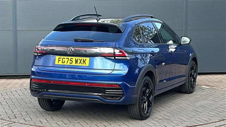 Adaptive cruise control, Advanced driver attention and drowsiness monitor, Digital cockpit pro - 10.25" high resolution TFT dash display screen with customizable menus and information, Driving profile selection, e-Call (emergency call), Power Steering, Travel assist including emergency assist, Washer fluid level indicator, Wireless Charging including Bluetooth, Start-stop system with battery regeneration (recuperation - energy recovery during braking), XDS electronic differential lock for improved traction and handling, Digital radio reception (DAB+), WeConnect plus, Ambient lighting with logo projection, Aspherical driver's exterior mirror, Auto headlights, Body coloured bumpers, Body coloured door handles, Cornering headlights, Electric windows, External USB type C socket and charging sockets, LED rear combination lamp, LED third brake light, Left convex exterior mirror, Power folding adjustable/heated exterior mirrors and front passenger exterior mirror lowering function, Rear fog light on one side, reversing light on both sides, Rear side wing doors, Rear wash/wipe with intermittent wipe setting, 12V socket in centre console, 2 front reading lights, 3 rear head restraints, 3 seat bench in 2nd row, Air care climatronic air conditoning system with active combination filter and 2-zone temperature control, Black carpets, Black roof lining, Child seat anchor for child seat system i-Size, 2x top tether and child seat anchor in front on front passenger side, Chrome bezel for instrument cluster, vents, door handles + gear shift, Driver and front passenger seat height adjustment, Front + rear carpet mats, Front centre armrest, Front footwell illumination, Front sports comfort seats, Heated front seats, Height and reach adjustable steering wheel, Interior ambient lighting and surround lighting, Karoso artvelours cloth upholstery, Leather trimmed gear knob, Leather wrapped multifunction steering wheel, Luggage compartment floor, Luggage compartment light, Lumbar support for driver's and front passengers seat, Seat covers in grey + titanium black, Single front passenger seat, Split folding backrest with centre armrest and unsplit rear seat bench, Stainless steel pedals, Storage compartment under front seats, Sun visors with illuminated vanity mirrors, Black design pack - Taigo Black Edition, Black roof pack with mirror housing - Taigo, IQ.LIGHT - LED matrix headlights pack - Taigo, Light and Sight pack including High beam assist - Taigo, 2 x 3-point seatbelts/outer rear seats with ECE label, 3-point seat belts in front with pretensioner and height adjustment, 3-point seatbelt for centre rear seat, Adaptive driver and front passenger airbags with passenger airbag deactivation function, Driver and front passenger safety-optimised head restraints, Electronic stability control, Extended and predictive pedestrian/ cyclist protection, Front and rear disc brakes, Front curtain and side airbags with center airbag, Hill start assist, Manual rear child locks, Single tone horn, Tyre pressure loss indicator, Anti-theft alarm system with interior monitoring, backup horn, and towing protection, Grey anodised matte decorative inserts in dash and front door panels, 18" York black alloy wheels with anti theft wheel bolts, Breakdown kit, Low rolling resistance tyres,