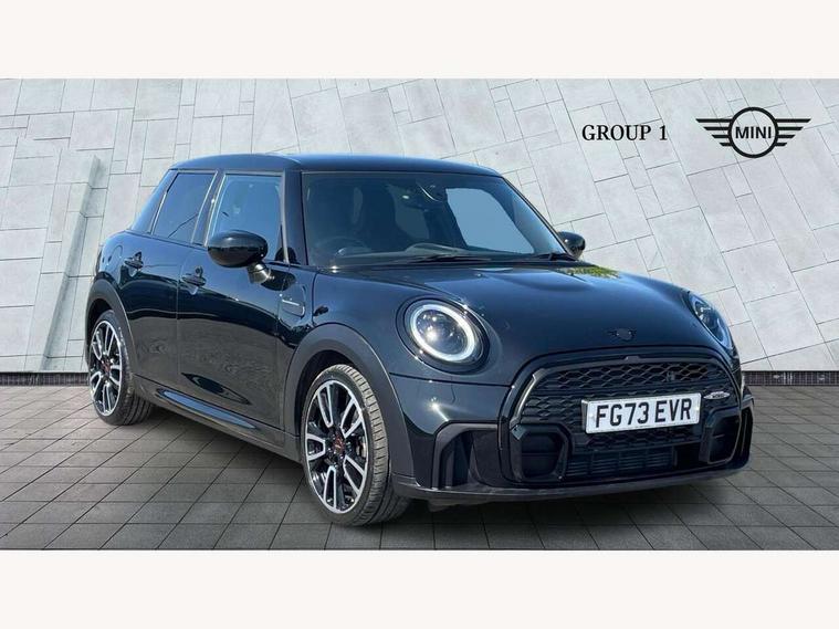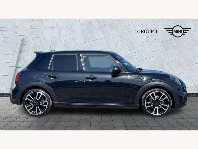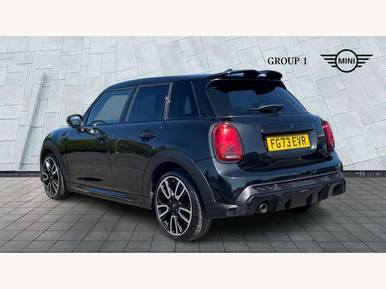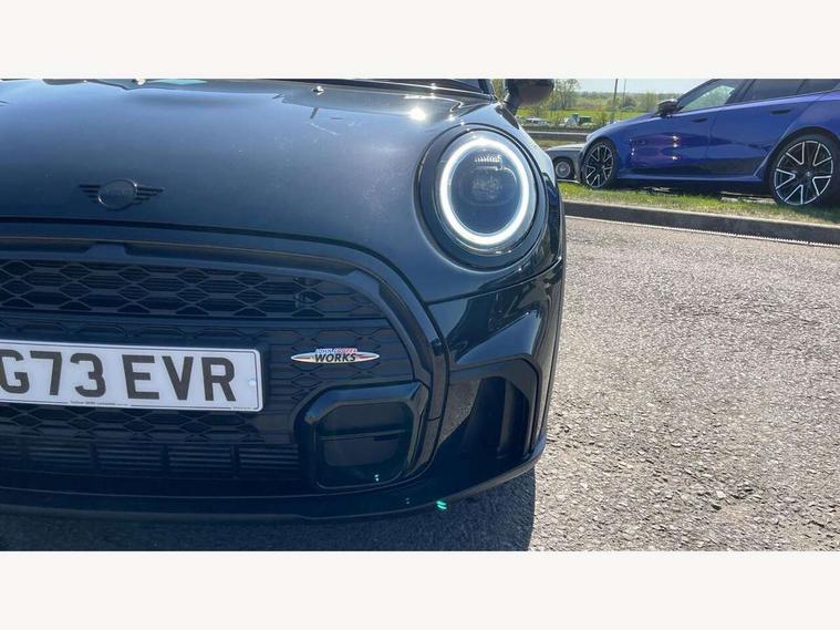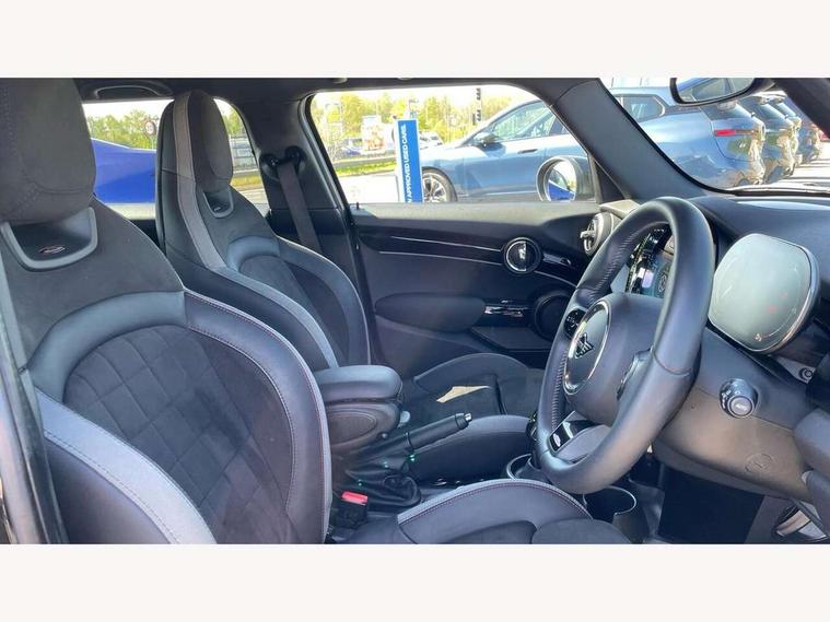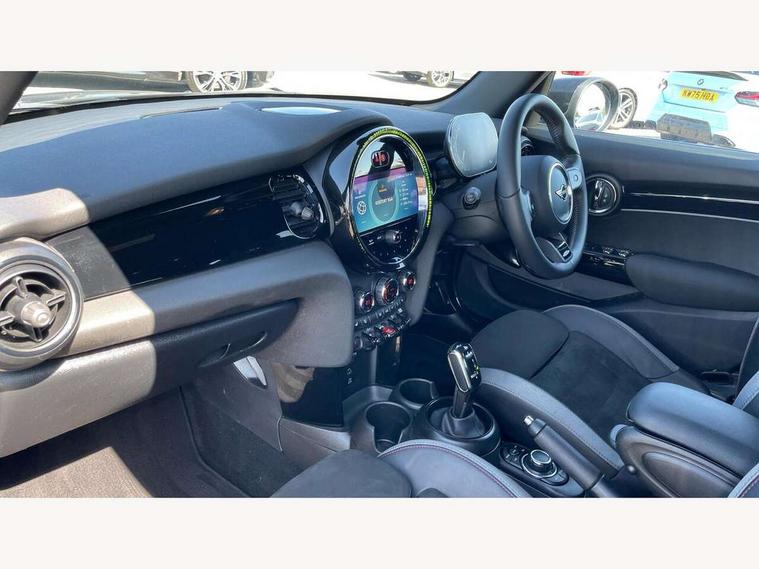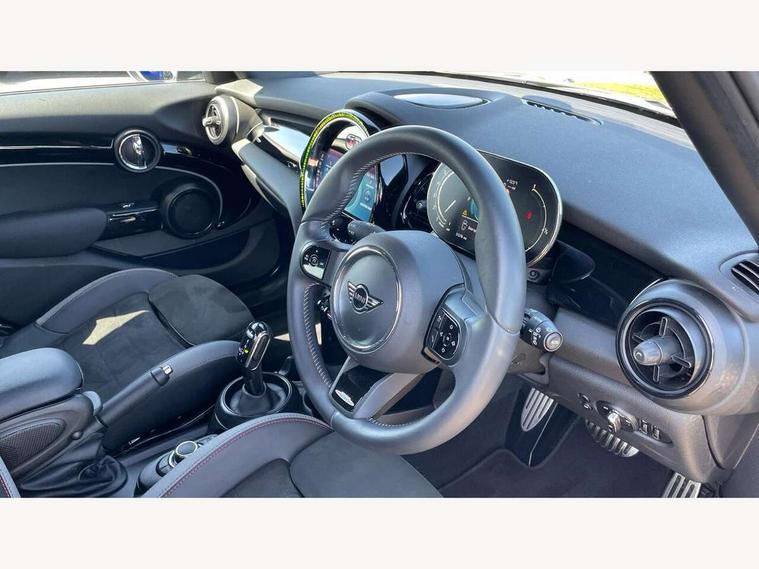 Apple CarPlay, Automatic start/stop function with brake energy recuperation, Compatible mobile phone bluetooth with audio streaming, Cruise control with brake assist, Electro-mechanical speed dependant steering assistance, Flexible car sharing preparation, Instrument cluster, MINI Driving Modes - centre toggle switch to control driving setting (sport, mid and green), Mini E-call, MINI TeleServices, On board computer, Rear park distance control, Service interval indicator, Adaptive suspension, Double Vanos system, Fully variable valve control, Gear change indicator display, High precision injection, Performance Control, Steptronic transmission with double clutch, 8.8" touchscreen with LED ring, FM tuner and DAB digital radio, 3rd brake light, Automatic headlight activation switch, Body colour fuel filler cap, Chrome border high gloss black slats radiator grille, Dynamic brake lights, Electric front+rear windows, Exhaust tailpipe on left with chrome finisher, Heated rear window, Heated windscreen washer jets, JCW Aerodynamic kit - Front and rear bumpers with sporty JCW styling and part-painted side sills with MINI John Cooper Works door sill finishers, John Cooper Works rear spoiler, LED headlight with closed ring and daytime driving lights, Metal door sill strips with MINI imprint, Model logo Cooper on right of tailgate, Rain sensor window wipers, Rear fog lights, Rear LED lights with union jack design, Rear side wing doors, Rear window wiper, Side scuttle panel with integrated indicator, Sun/heat protection glass, White indicator lenses, 12V Accessory socket in centre console, 3 seat bench in 2nd row, 4 lashing eyes in luggage compartment, 60/40 split folding rear seat, Anthracite headliner including grab handles and clothes hooks, Carbon black colour line - Knee roll and door armrest, Chrome interior highlights, Cupholders, Front and rear isofix with front passenger airbag deactivation, Front and rear velour floor mats, Glove compartment, Height and length steering column adjustment, Interior lighting with 12 different colours across the dashboard, underneath door bezel with illuminated laser-engraved design on central display, JCW Sport seats with integrated headrests, adjustable thigh support and John Cooper Works logo, Leatherette gearshift lever and handbrake gaiters, LED reading lights, vanity mirror lights, front foot well light and spotlight on front seats, Manual air conditioning, Mechanical seat adjustment - forward/back & backrest for front seats and driver seat height adjust, Multifunction steering wheel, Single front passenger seat, Storage compartments in doors, Sunvisors with vanity mirrors, Walknappa leather steering wheel with grey seam and John Cooper Works badge on Piano Black lower steering wheel spoke, Navigation pack without Apple Carplay - Mini Hatchback, Piano black exterior pack - Mini Hatchback Cooper, 3 point seatbelts on all five seats, 6 Airbags - front, side, head and seat belt tensioners, Anti-lock braking system (ABS), Child locks on rear doors, DSC - Dynamic Stability Control, Front and rear disc brakes, Hill start assist, Single tone fanfare horn, Tyre pressure monitoring system, Alarm system with tilt sensor, monitoring doors, bonnet interior and tailgate, Electronic vehicle immobiliser, Start/stop toggle with keyless go, Piano black interior trim, Tool kit,