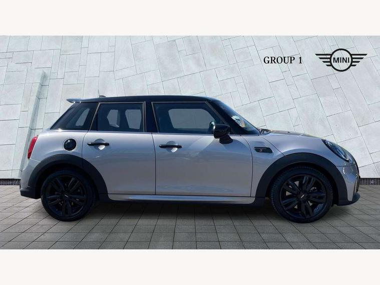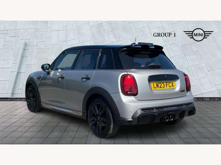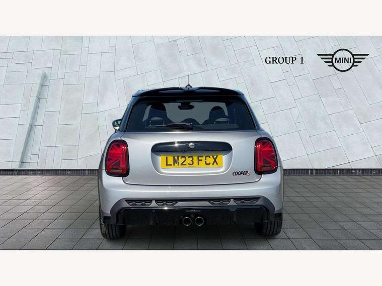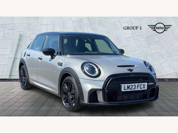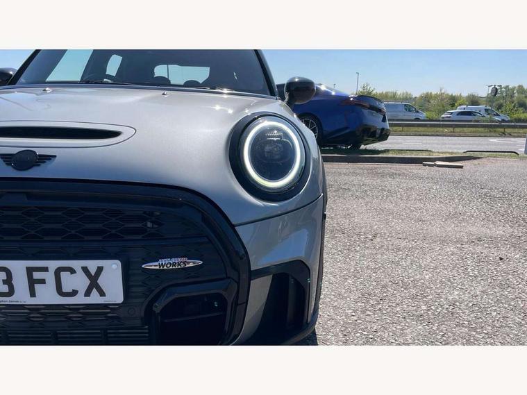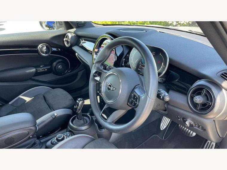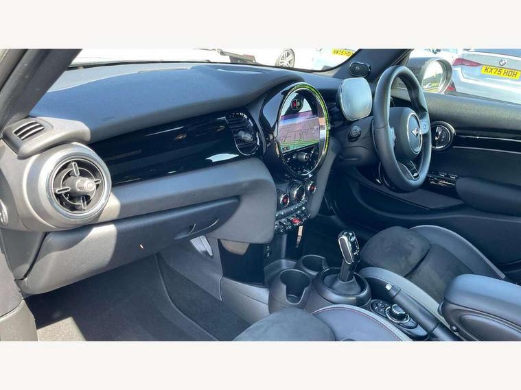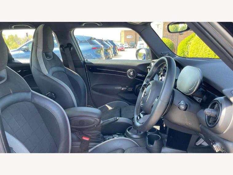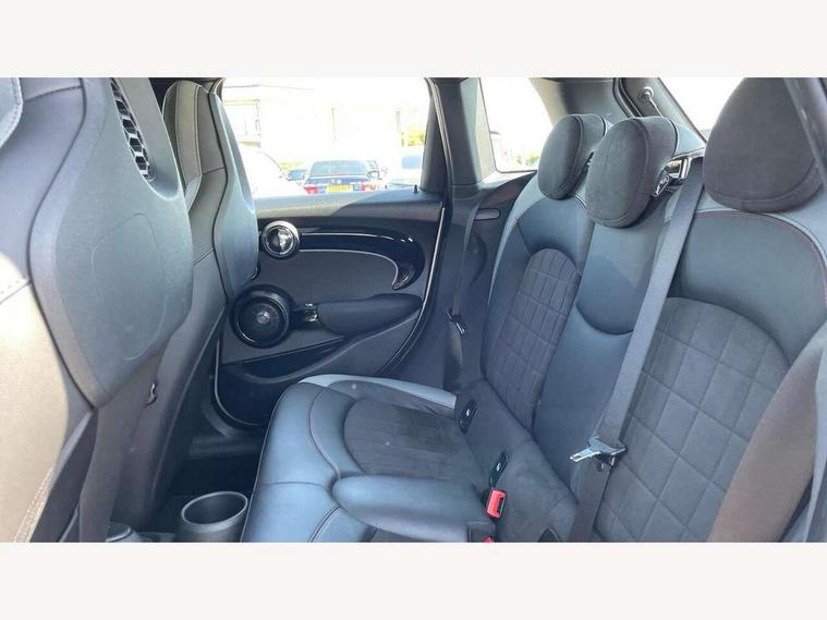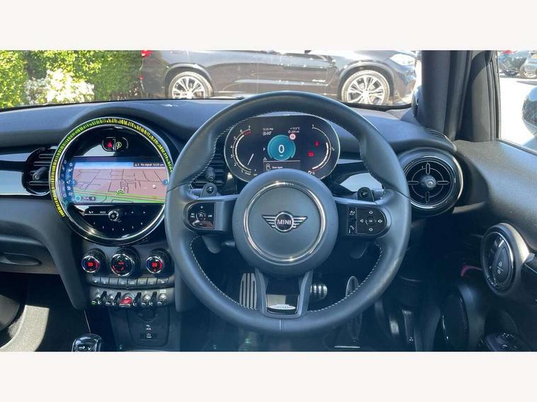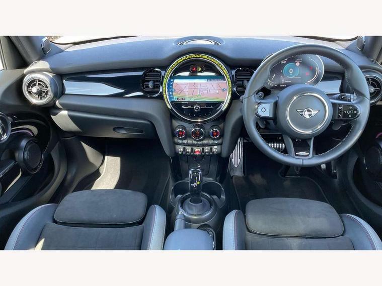 Apple CarPlay, Automatic start/stop function with brake energy recuperation, Compatible mobile phone bluetooth with audio streaming, Electro-mechanical speed dependant steering assistance, Flexible car sharing preparation, MINI Driving Modes - centre toggle switch to control driving setting (sport, mid and green), Mini E-call, MINI TeleServices, On board computer, Rear park distance control, Service interval indicator, Adaptive suspension, Double Vanos system, Fully variable valve control, Gear change indicator display, High precision injection, Performance Control, Steptronic sport transmission with double clutch and steering wheel paddles, 8.8" touchscreen with LED ring, FM tuner and DAB digital radio, 3rd brake light, Automatic headlight activation switch, Bonnet scoop, Dynamic brake lights, Electric front+rear windows, Heated rear window, Heated windscreen washer jets, JCW Aerodynamic kit - Front and rear bumpers with sporty JCW styling and part-painted side sills with MINI John Cooper Works door sill finishers, John Cooper Works rear spoiler, Metal door sill strips with Cooper S imprint, Model logo Cooper S on right of tailgate, Radiator grille chrome border with honeycomb structure including S Badge, Rain sensor window wipers, Rear fog lights, Rear LED lights with union jack design, Rear side wing doors, Rear window wiper, Side scuttle panel with integrated indicator, Sun/heat protection glass, Two central exhaust tailpipes with chrome finisher, White indicator lenses, 12V Accessory socket in centre console, 3 seat bench in 2nd row, 4 lashing eyes in luggage compartment, 60/40 split folding rear seat, Anthracite headliner including grab handles and clothes hooks, Carbon black colour line - Knee roll and door armrest, Chrome interior highlights, Cupholders, Front and rear isofix with front passenger airbag deactivation, Front and rear velour floor mats, Glove compartment, Height and length steering column adjustment, Interior lighting with 12 different colours across the dashboard, underneath door bezel with illuminated laser-engraved design on central display, JCW Sport seats with integrated headrests, adjustable thigh support and John Cooper Works logo, Leatherette gearshift lever and handbrake gaiters, LED reading lights, vanity mirror lights, front foot well light and spotlight on front seats, Mechanical seat adjustment - forward/back & backrest for front seats and driver seat height adjust, Multifunction steering wheel, Single front passenger seat, Sport leather steering wheel with speed limiter and audio/communication controls, Storage compartments in doors, Storage pocket on back of front seats, Sunvisors with vanity mirrors, Tool kit, Walknappa leather steering wheel with grey seam and John Cooper Works badge on Piano Black lower steering wheel spoke, Piano black exterior pack - Mini Hatchback Cooper S, 3 point seatbelts on all five seats, 6 Airbags - front, side, head and seat belt tensioners, Anti-lock braking system (ABS), Child locks on rear doors, DSC - Dynamic Stability Control, Front and rear disc brakes, Hill start assist, Two tone horn, Tyre pressure monitoring system, Alarm system with tilt sensor, monitoring doors, bonnet interior and tailgate, Electronic vehicle immobiliser, Start/stop toggle with keyless go, Piano black interior trim,
