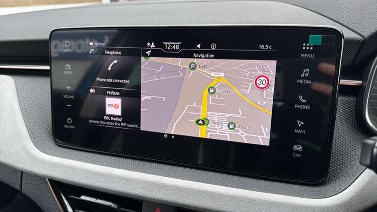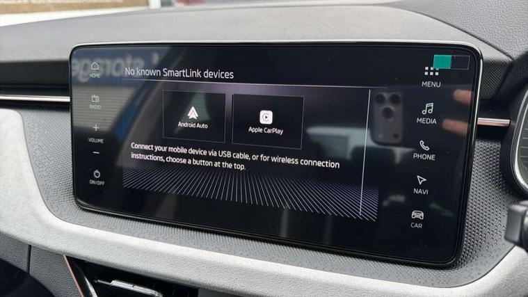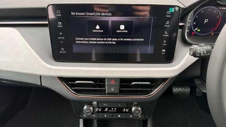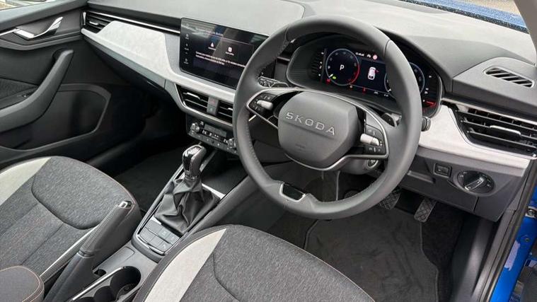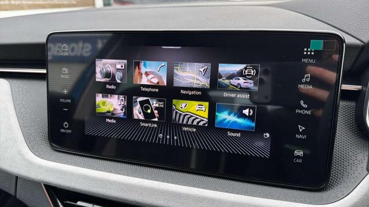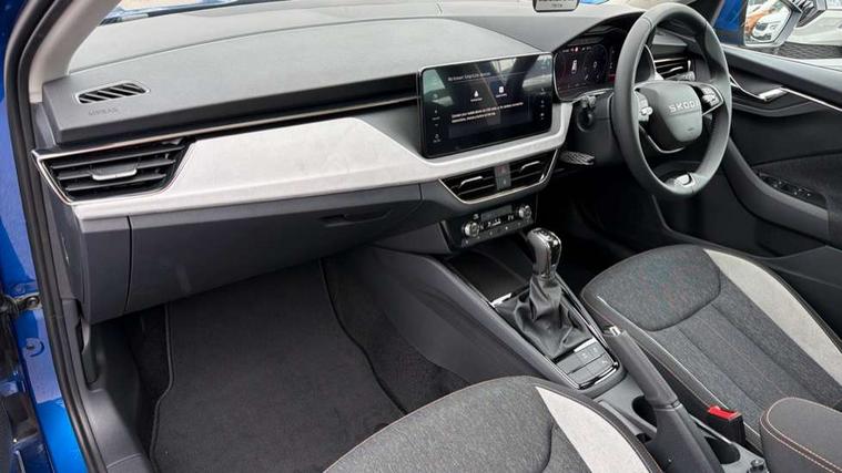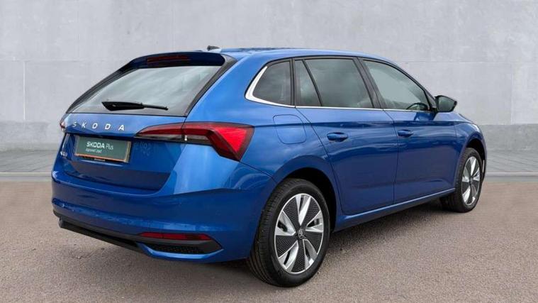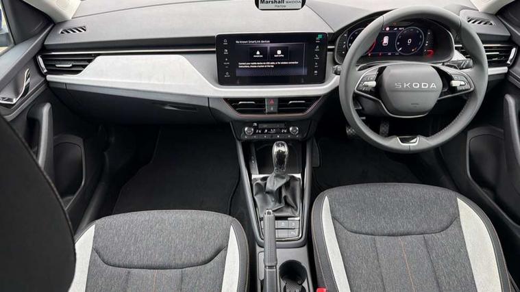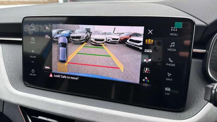 Advanced driver attention and drowsiness monitor, Bluetooth, e-Call (emergency call), Front assist system, PAS, Rear parking sensors, Rear view camera, Speed limiter, Tailgate, Traffic sign recognition, Virtual Cockpit - 10.25" digital display, Voice control system, Wireless smartlink, 4 USB C ports, 9.2" Skoda navigation display, DAB radio, Auto dimming rear view mirror, Automatic headlight control with manual coming and leaving home feature, Automatic intermittent wipers, Body colour bumpers, Body colour door mirrors and handles, Chrome moulding around grille, Chrome window frames, Front and rear electric windows, Heated rear window, LED 3rd brake light, LED daytime running lights, LED high beam, LED low beam, Light sensors, Privacy glass, Rear LED fog light, Rear side wing doors, Rear wiper, Tinted windows, Unique dark chrome design logo on alloy wheels, 12V socket in luggage compartment, 3 seat bench in 2nd row, Ambient lighting in white/red, Black / Copper armrest stitching, Cargo elements, Chrome inner door handles, Copper hotstamping, Door inserts in accent black, Driver and passenger sun visors with vanity mirror, Dual zone climate control, Front and rear roof lights, Front centre armrest, Front head restraints, Glasses storage in roof liner, Height adjustable driver seat, Height adjustable passenger seat, Ice scraper, Illuminated glove compartment, Inner circulation control with pollen filter, ISOFIX for front passenger seat, Isofix preparation for back seats, Leather gearknob and handbrake lever, Lodge cloth upholstery, Luggage net under rear parcel shelf, Manual lumbar support for front seats, Net package and top tether hooks in boot space, Pocket on the back of both front seats, incl. mobile phone pockets, Rear centre armrest, Single front passenger seat, Skoda lettering on steering wheel, Textile floor mats, Third rear headrest, Ticket holder, Top tether for front passenger seat, Umbrella in driver's door, Convenience pack without rear camera - Scala, 3x3 point rear seatbelts, ABS, Child locks, Curtain airbags and front side airbags, Disc brakes, Driver and front passenger airbags, ESP, Hill hold control, Manual leather parking brake, One tone horn, Passenger airbag switch off function, Seatbelt reminder for driver and front passenger, Tyre pressure monitoring system, Anti theft alarm system with interior monitoring, backup horn and towing protection, Anti-theft wheel bolts, Remote central locking with 2 remote folding keys, SAFE function for remote central locking, Decorative inserts,