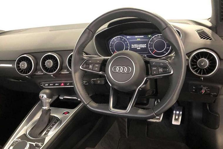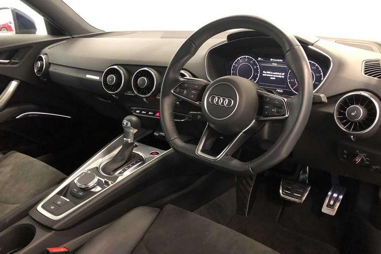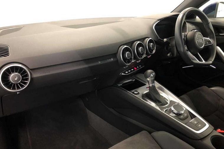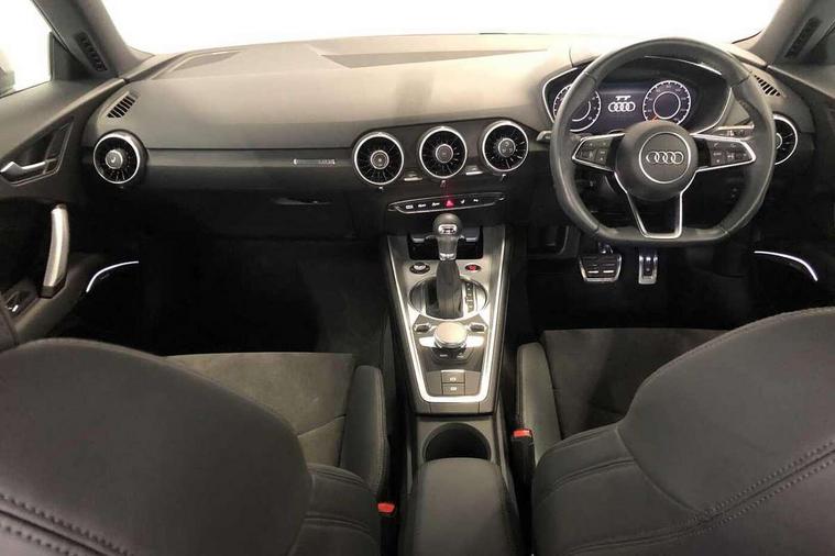 Audi drive select with 4 Pre configured modes, Audi smartphone interface, Audi virtual cockpit - 12.3" high-resolution LCD display with fully customisable instrument cluster, Cruise control + speed limiter, Emergency call service, MMI touch panel, Mobile phone preparation with bluetooth interface, Progressive power assisted steering, Service interval indicator, Start/Stop system with energy recuperation, TP memo, Sports suspension, AM/FM radio, Bluetooth audio streaming, DAB Digital radio, MMI Radio with CD player and SD/XC card slot, Auto dimming rear view mirror, Body colour bumpers, Body colour door mirrors, Electric folding door mirrors, Electric front windows, Electrically adjustable and heated door mirrors with integrated LED side indicators, Front fog lights, Green tinted heat insulating glass, LED 3rd brake light, Light and rain sensors, Rear boot, Retractable rear boot spoiler, Sunband for windscreen, Xenon headlights with LED daytime running lights with automatic headline range control + LED rear lights, brake lights and rear indicators, 12V socket, 2 rear seats, 3 spoke flat bottomed high multi-function leather sport steering wheel with gearshift paddles, Alcantara/Leather upholstery includes seat centre panels, door trim inserts in black Alcantara with side bolsters, head restraints in black leather, Aluminium door sill trims, Front centre armrest, Front passenger seat, Front sports seats, Heated front seats, Height/reach adjust steering wheel, Integrated head restraints, ISOFIX child seat mounting for front passenger seat with airbag deactivation, Manual adjustment of seat height, fore/aft position, seat angle, seat depth and backrest angle, Rear head restraints, Rear top tether child seat ISOFIX attachment, Split folding rear seat, Non smoking pack - TT/TT RS, 3 point front seat belts, ABS, ASR traction control, Curtain airbags, Driver and front passenger airbag with front passenger airbag deactivation, EDL traction control, Electromechanical parking brake, ESP, First aid kit, Front side airbags, Head airbags, Hill hold assist, Seatbelt warning, Tyre pressure loss indicator, Warning triangle, Anti theft alarm, Anti theft wheel bolts, Immobiliser, Keyless Go, Remote central locking, Aluminium design inlays, Tool kit, Tyre repair kit,