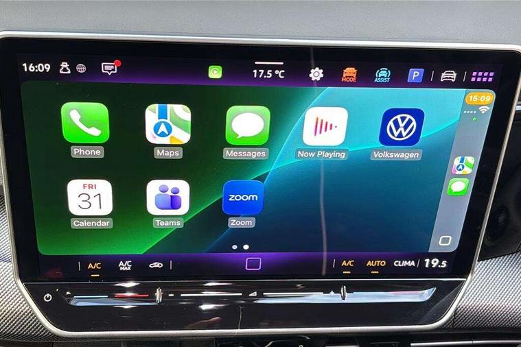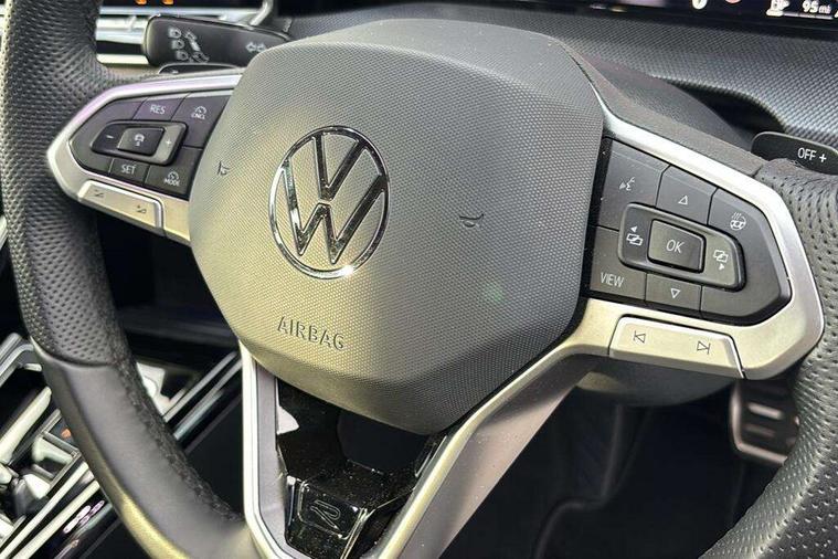 Activated carbon canister, Adaptive cruise control (ACC) with speed limiter and front assist (reacting to vehicles pedestrians and cyclists), Advanced driver attention and drowsiness monitor, Car2X intelligent vehicle networking, Discover media navigation system, Dynamic road sign display, Dynamic steering, E-Sim card for online connectivity, eCall emergency call system, Infotainment system with scalable module options Version 2, Lane keeping system, Multi-color Digital cockpit pro, selection of different info profile possible, Multifunction camera for distance control, Oncoming vehicle braking when turning including swerve support, Progressive steering, Speedo, rev counter, electronic odometer, trip, service interval display, exterior temperature and fuel gauge, Voice assistant and voice enhancer with chat GPT, Warning signal and warning light for front and rear seatbelts not fastened, Washer fluid level indicator, We connect plus preparation, We connect preparation, Wireless app connect, Hybrid propulsion system, Start-stop system with battery regeneration (recuperation - energy recovery during braking), XDS electronic differential lock for improved traction and handling, 2 USB C ports in front, 2 USB charging sockets on the centre console in the rear charging capacity upto 45W, Comfort telephony + wireless charging, without wireless aerial connection, DAB radio, Diversity antenna for FM reception, Gaming platform via car app, Mobile phone interface with inductive charging feature, 4 speed front wiper/interval delay, Auto headlights, Automatic headlamp activation with Coming home and Leaving home feature, Body colour door handles, Chrome plated radiator grille inserts and light switch surrounds, Exterior mirrors convex on the left and aspherical on the right, Front and rear electric windows, Front windscreen washers, Heat insulating windshield made of laminated glass, High level 3rd brake light, Illuminated door handles, LED separate daytime running light, R Line body coloured bumpers, Rear exhaust tailpipe, Rear fog light on one side and reversing lights on both sides, Rear side wing doors, Rear windscreen washer and wiper with interval delay, Remote electrically foldable door mirrors, puddle lights and reverse activated passenger's door mirror, Welcome light with surround lighting, 12V socket in front centre console, 12V socket in luggage compartment, 3 rear head restraints, 3 seat bench in 2nd row, Ambient lighting with 30 colour including LED light unit in front footwell with selectable light colour, Black roof lining, Brushed stainless steel pedals, Carpet mats, front and rear, Door insert, side trim panel and arm support in leatherette, Front centre armrest with storage compartment, Front cupholders x 2, Front seat lumbar support adjuster, Glovebox, Height and reach adjustable steering wheel, Isofix child seat preparation for 2 rear child seats and front passenger seat, Luggage compartment lighting, Manual height adjustable front seats, Plastic gear knob, Premium front sport seats, R Line front seats integrated head restraints, Rear cupholder and loadthough, Removable luggage compartment cover, Sardegna cloth upholstery with front and outer rear seats Art Velour inner sides of bolsters, Single front passenger seat, Split folding backrest with centre armrest and unsplit rear seat bench, Sun visors with illuminated vanity mirrors, 3 point height adj front seatbelts + pretensioners, 3 rear three point seatbelts, ABS, Autonomous emergency braking front assist with pedestrian and cyclist monitoring, Driver and front passenger airbag with front passenger airbag deactivation, Electronic parking brake with auto hold, ESC (Electronic Stability Control), Extended pedestrian protection measures, Hill start assist, Rear disc brakes, Rear door child safety locks, Two tone horn, Tyre pressure monitoring system, Volkswagen roadside assistance, Anti theft wheel bolts, Electronic engine immobiliser, Chrome plated air vent surround, Decorative inserts carbon grey for dashboard and front door trim panels,