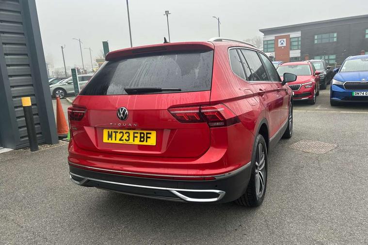 App-Connect, Adaptive cruise control, Digital cockpit pro, Driver alert system, Driver profile selection, Dynamic road sign display, eCall emergency call service, Electric boot lid, Lane change system side assist and rear traffic alert, Lane keeping system Lane Assist, Mobile phone interface comfort with inductive charging feature, Multifunction front facing camera, Power assisted speed sensitive steering, Speedo and rev counter, electronic odometer, trip, service interval display and exterior temperature gauge, Front wheel drive, Start-stop system with battery regeneration (recuperation - energy recovery during braking), 2 USB-C ports in the front, 1 USB-C charging socket on the center console in the rear, 8 speakers, DAB Digital radio, Diversity antenna for FM reception, Auto dimming interior rear view mirror, Automatic headlight control system, Body coloured comfort bumpers, Chrome mouldings on side window, Coming/leaving home lighting function, Exterior badge deletion, Exterior mirror housings painted in silver, Heated windscreen washer jets, Privacy glass, Rain sensor, Rear fog light, Rear side wing doors, Rear wiper, Silver roof rails, Third brake light, Tilting and sliding panoramic sunroof, 12-volt outlet in centre console rear and luggage compartment, 12V socket in centre console, 3 head restraints in rear, 3 individual folding 2nd row seats, 3rd row 2 individual seats, Air Care Climatronic 3 zone automatic climate control with enhanced air filter and controls in the rear, Door and side trim panel, Drawers under front seats, Driver and front passenger seat height adjustment, Foldable front passenger seat backrest, Front + rear carpet mats, Front centre armrest, Front footwell illumination, Heated front seats, Illuminated scuff plates, ISOFIX anchorage points for mounting 2 child seats on rear seats and i-Size child seats, Leather gearshift handle, Leather-wrapped heated multi-function steering wheel with paddle shift, LED interior light with switch off delay/dimmer and 2 front/rear LED reading lights, Sun visors with illuminated vanity mirrors, Ambience pack - Tiguan Allspace, Driver assistance package - Tiguan Allspace, Easy open and close pack with safelock - Tiguan Allspace, 3 point seat belt for centre rear seat, 3 rear three point seatbelts, ABS+EBD+Brake assist, Driver and front passenger safety-optimised head restraints, Driver's and front passenger's airbag with front passenger's airbag deactivation switch, Electronic parking brake, Electronic Stability Control (ESC) inc EDL (Electronic Differential Lock) and ASR (Traction Control), Height adjustable front 3 point seatbelts + pretensioners, Manual rear child locks, Pedestrian monitoring, PreCrash preventive occupant protection Front and rear, Rear disc brakes, Side airbag in front and rear with curtain airbag, Two tone horn, Warning buzzer for seatbelts if unfastened, Anti theft alarm system with interior monitoring, backup horn and towing protection, Anti-theft wheel bolts, Electronic steering lock, Remote central locking with 2 remote folding keys, Chequered flag tinanium decorative inserts,