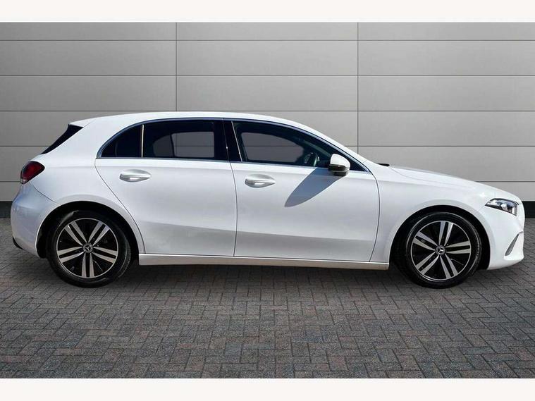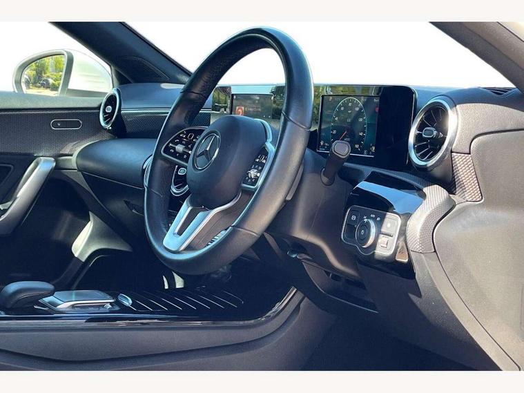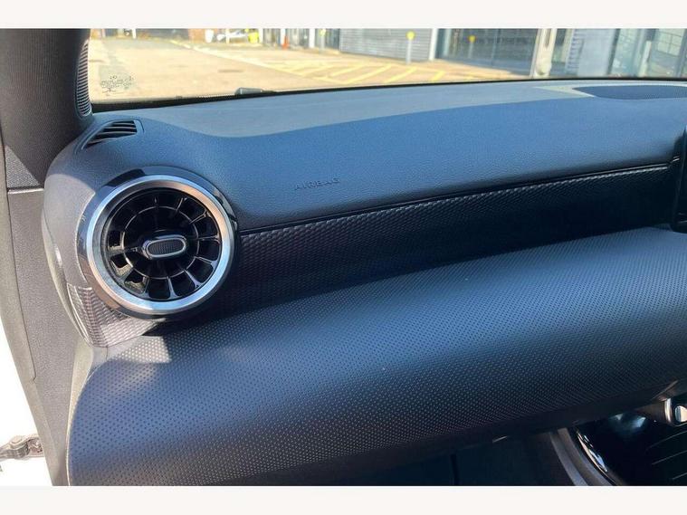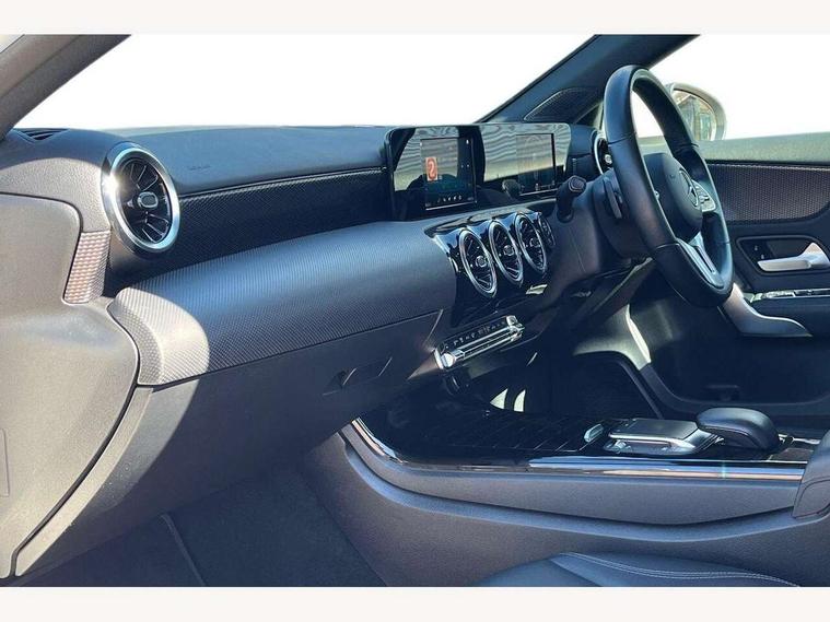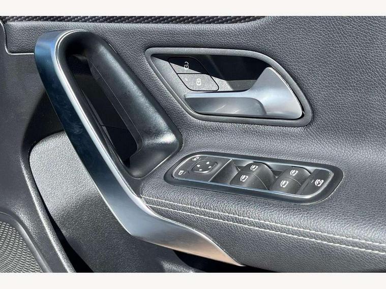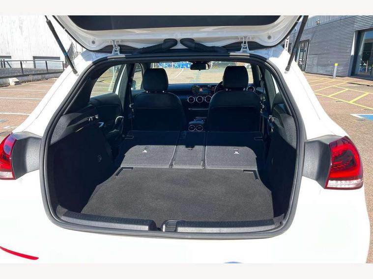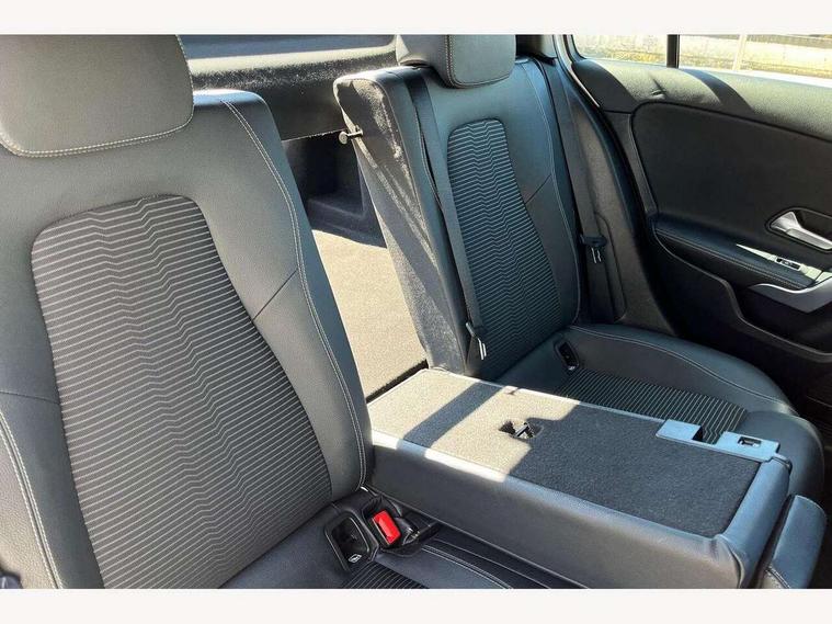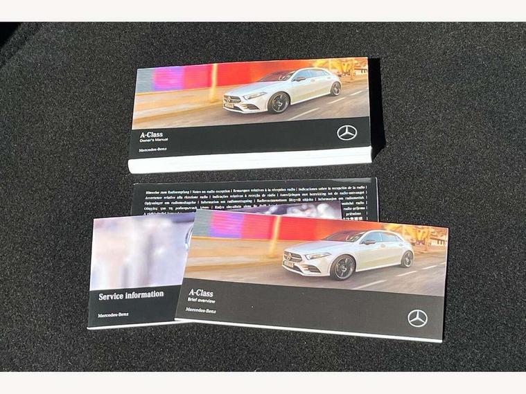 180 degree rear view camera with parking guidelines, 7" colour screen in instrument panel, 7" touchscreen media display, Attention assist, Brake pad wear indicator warning light, Car wash mode, Cruise control + speed limiter, Direct steering, Dual bluetooth interfaces, DYNAMIC SELECT with a choice of driving modes (ECO, Comfort, Sport and Individual), ECO start/stop function, Fluid level warning indicator for fuel, oil, coolant and washer fluid, Hard-disk navigation, Hey Mercedes Voice activation, Lamp failure indicator, Lane keeping system, Mercedes me connect including emergency call system, accident recovery, breakdown and maintenance management, Mercedes me remote services, Outside temperature gauge, Owners manual in English, Pre-installation for private car sharing, Preinstallation for Mercedes Benz link, Service indicator (ASSYST), Speed sensitive power steering, Trip computer, Lowered comfort suspension, Rear axle torsion beam, 2 USB ports (type C) in rear stowage compartment and one in front of center console, 6 speakers, DAB Digital radio, MBUX multimedia system with DAB digital radio and touchpad including satellite navigation, Mercedes-Benz sound system - 100W, 4 Electric Front and Rear windows, Adaptive brake lights, Automatic headlights, Black weather strip, Body colour bumpers, Body colour door handles, Body colour side skirt, Body coloured door mirrors, Chrome beltline trim, Diamond radiator grille with black pins with one louvre in silver + chrome insert, Electric adjustable and heated door mirrors with integrated LED side indicators, Exhaust system - Twin visible tailpipes in polished stainless steel, Headlamp assist automatic headlamp activation, Heated glass rear windscreen + timer control, LED High level third brake light, LED high performance headlamps with integrated LED daytime running lights, LED tail lamp, Radio aerial, Rain sensing windscreen wipers with two sensitivity settings, Rear fog lights, Rear side wing doors, Rear wiper, Window line trim strip in chrome, 3 seat bench in 2nd row, 3 Spoke leather multi function steering wheel, 40:20:40 split folding rear seats, Artico man-made leather/Fleron fabric upholstery, Auto Mercedes-Benz child seat recognition sensor, Black air vents with surround in silver chrome, Black roof lining, Controller on centre console with chrome surround, Front centre armrest with storage compartment, Front comfort seats with adjustable head restraints, Front door sills with Mercedes Benz lettering, Front seat backs luggage nets, Front seat cushion length adjustment, Gearshift paddles on steering wheel, Heated front seats, Height/reach adjustable steering column, Interior mirror with reading lamps in black and frameless, Manual height adjustable front seats, Rear head restraints, Seat occupancy sensor for front passenger seat, Single front passenger seat, Stowage compartment in centre console with retractable cover, Sunvisors with illuminated vanity mirrors, Touchpad on center console, Twin front cupholders, Two zone thermotronic luxury automatic climate control, Velour floor mats, Light and sight pack - A Class, Seat comfort pack - A Class, 3 rear 3 point seatbelts, ABS with Brake Assist, Active bonnet, Active brake assist includes forward collision warning system with autonomous braking, Adaptive brake assist with hold function and hill start assist, Childproof locks manually operated for rear doors and electrically operated for rear power windows, Crash responsive emergency lighting, Driver and passenger head and side airbags, Drivers knee airbag, Dual stage driver/passenger airbags, Electronic parking brake, ESP curve dynamic assist, ESP with ASR, Front and rear seatbelt reminder, ISOFIX and top tether child seat fixing points in two outer rear seats, Tyre pressure monitoring system, Warning triangle and first aid kit, Window airbags, Alarm system/interior protection/immobiliser, Keyless Go, Remote central locking and crash sensor with emergency opening function, Urban guard vehicle protection system with immobiliser and interior protection, Black seatbelts, Dark carbon fibre interior trim, 17" 5 twin spoke light alloy wheels painted in matt black with a high sheen finish, Summer tyres, Tirefit sealant kit,