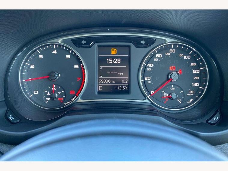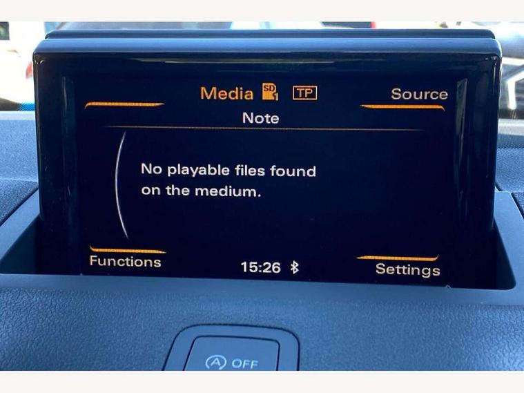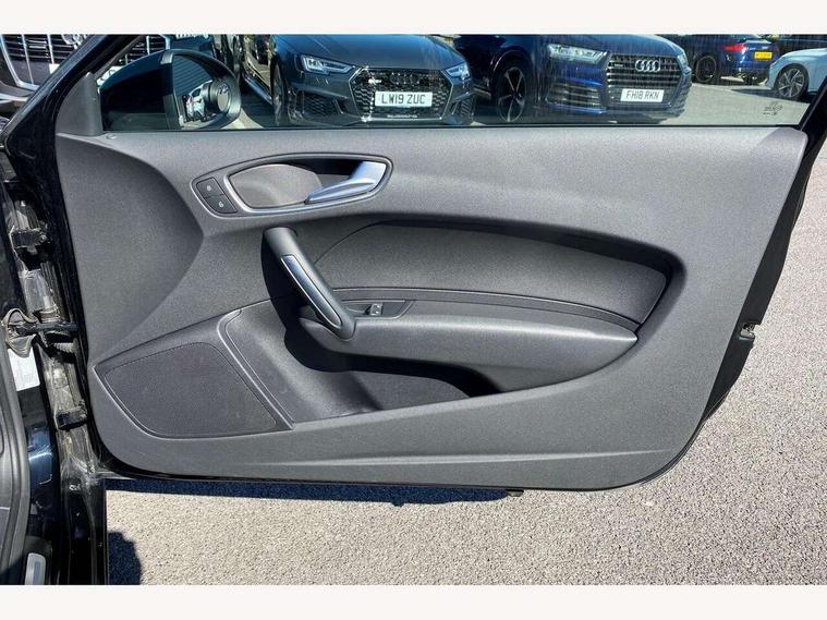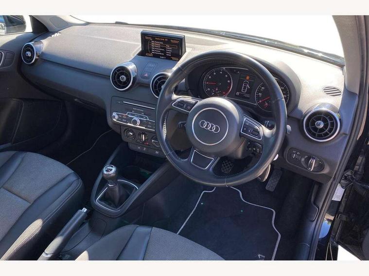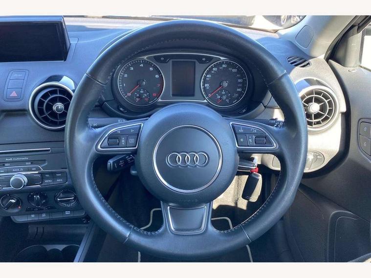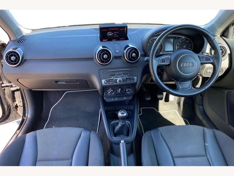 Audi drive select, Cruise control, Driver's information system, Electro-mechanical PAS, Low washer fluid indicator, Service interval indicator, Voice control system, Additional SD card reader, Audi music interface, Bluetooth audio streaming, DAB Digital radio, Adaptive brake lights, Body coloured bumpers, Body coloured door mirrors, Electric adjustable door mirrors, Electric front windows, Front fog lights, Heat insulating glass, Heated door mirrors, Heated rear windscreen, Rear wiper, 12V Accessory socket in centre console, 3 spoke leather multifunction sports steering wheel, Adjustable rear head restraints, Cupholders in centre console, Door sills trims with aluminium inlays, Front floor mats, Front head restraints, Front seats - 'Easy Entry', Front sports seats, Height adjustable front seats, Illuminated glovebox, Isofix attachments on rear seats, Jack and tool kit, Leather handbrake, Lumbar adjustment for front seats, Rake/reach adjustable steering wheel, Split folding rear seats, Titanium grey cloth headlining, Non smoking pack - A1, ABS/EBD, Brake assist function, Driver and passenger side airbags, Driver/Front Passenger airbags, EDL, ESP with ASR, First aid kit, Front and rear seatbelt reminder, Front passenger airbag deactivation, Head airbags, Height adjustable front seatbelts, Rear three point seatbelts x 2, Tyre pressure monitor, Warning triangle, Locking wheel bolts, Remote control central locking, Thatcham category 1 alarm + immobiliser, Tyre repair kit,