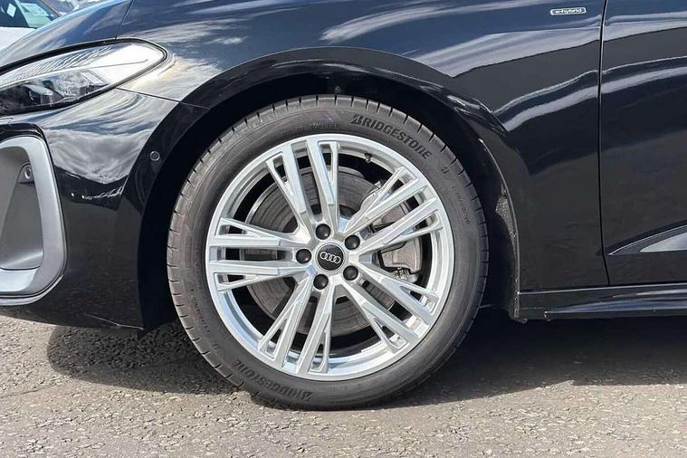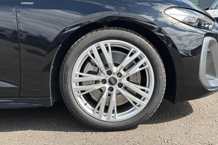 Adaptive cruise control, Advanced driver attention and fatigue montior, Audi application store, Audi assistant, Audi connect emergency call and service, Audi drive select, Audi virtual cockpit plus with 11.9" OLED colour display, Automatic start/stop system with coasting functionality, Camera based traffic sign recognition, Intersection assist, Lane departure warning, MMI navigation plus with high resolution 14.5" OLED touchscreen colour display, Park assist plus, Parking system plus with 360 display, Progressive steering with servotronic, Rear view camera, Smartphone interface, Swerve assist and turn assist, Traffic sign based speed limiter, Household plug type G, Hybrid propulsion system, Industrial connector CEE 32A, 230V, long and straight for the e-tron charging system, Mode 3 type 2 AC charging cable 22kW, Sports suspension lowered by 20mm, 2 USB-C ports in both the front and rear, DAB digital radio reception, Smartphone compartment with wireless charging, Aluminium roof rails, Aluminium window trims, Auto dimming rear view mirror, Body colour door mirrors, Door mirrors - electrically adjustable, heated, folding and auto dimming on both sides, Front and rear electric windows, Front door sill trims with aluminium inlays, illuminated with 'S' logo, High beam assist, LED headlights Plus incl. digital daytime running lights, turning light, all-weather light, motorway light, manouevring light and intersection light, LED rear lights pro incl. dynamic rear indicators and illuminated light strip with animated coming and leaving home function, LED third brake light, Privacy glass, Rear and side windows with heat insulating glass, Rear side wing doors, Rear wash/wipe, Removal of S line badge on the front wings, S line bumpers, radiator grille and diffuser in phantom black and diffuser insert in matt anthracite, White rhombus logo projection light in exterior mirrors, Windscreen with acoustic glazing, 3 rear headrests, 3 seat rear bench, 3 spoke leather steering wheel with multi-function buttons with touch control, flattened on top and bottom, with S badging and contrast stitching, 3-zone automatic climate control, 40:20:40 split folding rear seat bench with centre armrest and cup holders, Auxiliary air conditioning, Comfort front centre armrest, Front and rear floor mats, Front seats with manual adjustment for position and 4-way electric lumbar support, Front sport seats with integrated headrest and S embossed logo, Headlining in black cloth, Heated front seats, i-Size child seat mounting on the front passenger side and outer rear seats, i-Size and top tether on the outer rear seats, LED roof module front and rear including reading lights, Luggage compartment lid, electrically opening and closing, Manual steering column height and depth adjustment, Single front passenger seat, Stainless steel pedals and footrest, Steering wheel grips in perforated leather and shift paddles, Storage compartment lighting under the centre armrest, Ambient lighting package plus - A5, 3x3 point rear seat belts, Acoustic vehicle alerting system, Driver airbag, Electric child safety locks, First aid kit with warning triangle and vests, Front emergency brake assist, Front passenger airbag, Front passenger airbag deactivation, Front side airbags with head airbag system and front interaction airbag, Hill hold assist, Seat belt monitoring with rear seat occupant reminder, Tyre pressure loss indicator, Anti theft alarm, Anti-theft wheel bolts, Keyless Go, Accent surfaces and control buttons in gloss black, Black dashboard with contrast stitching, Inlays in matt brushed aluminium with linear embossing, anthracite, Softwrap in leatherette with contrast stitching, Upper and lower interior elements in leatherette, Tyre repair kit,