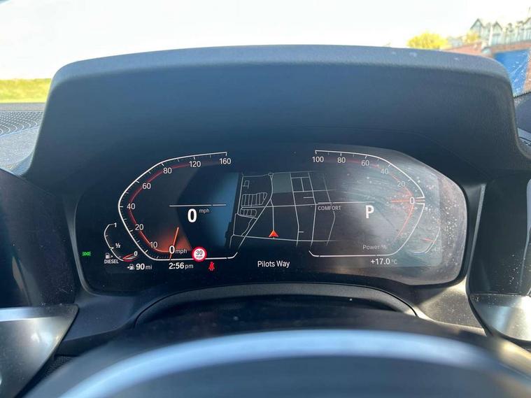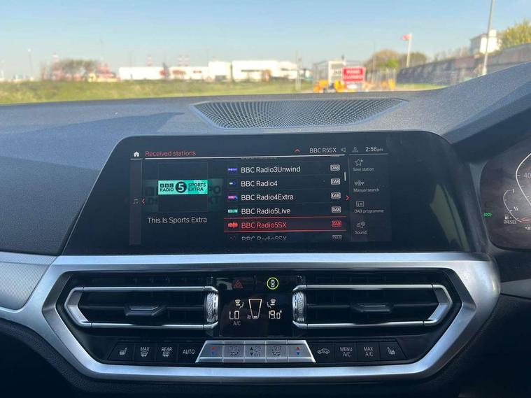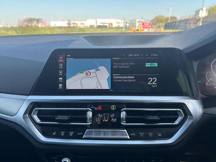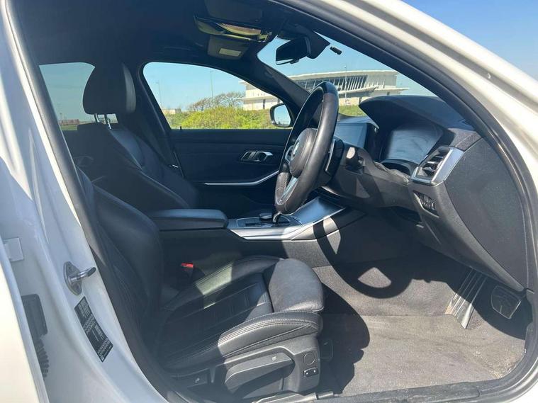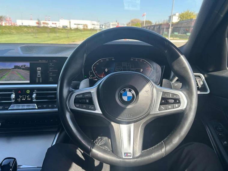 Active guard plus, Attentiveness assist, BMW iDrive controller on centre console, BMW Live Cockpit Professional Nav with 12.3" instrument display + 10.25" display, Intelligent Voice Assist, BMW OS 7, HDD, 2USB, 4G LTE connect, BMW service history, BMW Teleservices, Brake pad wear indicator in front and rear, Check Control warning system for monitoring of lights and door/luggage compartment open warning, Condition based service, Electric power steering with Servotronic steering optimised at all speed ranges, Instrument cluster with speedometer with mph readout, tachometer, fuel gauge and oil temperature gauge, Integrated owners handbook, Oil sensor for level and grade, warning by check control system, On board computer - average speed+fuel consumption, service interval, clock/date, odometer/trip meter, outside temperature display and ice warning, Optimum shift indicator, Personal Profile - automatic lock when driving away selectable, Variable sport steering, 48V Mild hybrid technology, Balanced 50/50 weight distribution, Battery cut-out switch, Diesel particulate filter, Drive performance control - ECO PRO, comfort and sport modes, Electronic differential lock control (EDLC), Incorrect fuelling protection, Larger capacity fuel tank, M sport suspension, Stroke dependent dampers, DAB tuner, Electronic service booklet, Acoustic glazing, Active airstream chrome frame kidney grille with 8 high gloss black vertical slats, Automatic headlight beam throw control with load dependent regulating reaction, dynamic compensation of braking dive and acceleration squat, Black roof mouldings, Body colour door handles, Body colour front and rear bumpers, Body colour fuel filler flap, Body colour mirror caps with bottom segment in matt black, Dynamic brake lights, Electric windows - front and rear, with open/close fingertip control, anti-trap facility and comfort closing, Exhaust tailpipe - split left and right, Exterior mirrors - electrically folding with anti-dazzle, Fading support, Front and rear bumper system with replaceable deformation elements, Front black door sill finishers with BMW designation, Green tinted heat protection glazing, High gloss shadow line exterior trim, Interior rear view electrochromatic mirror with automatic anti dazzle function, LED daytime running lights, LED front fog lights, Lightweight engineering, M designation on front side panels, left and right, Matt black exterior B pillar, Model designation on right side of tailgate, Rain sensor with automatic headlight activation, Shark fin antenna, Two part LED tailights in L-shape with components in smoked glass, brake light, LED turn indicator and rear fog light, Visible VIN plate, Welcome lights in interior and door handle area, Windscreen wipers with integrated washing jets, 12V power socket in front storage compartment, 2 front cupholder in centre console with clamping elements and matt black inlay, 3 rear seats with non folding headrests with 3 point seat belts, 3 zone automatic air conditioning, 4 pieces lashing eyelets in luggage compartment, 40:20:40 split folding rear seat with loading system, Ambient lighting with welcome carpet light, Anthracite headlining, Armrest integrated in front and rear door trim + front centre console armrest, Centred top Luggage compartment lights, Four grab handles integrated in roof lining, Front and rear door exit lighting (left / right), Front and rear door pockets, Front and rear reading lights, Front and rear velour floor mats, Front head restraints, Front sport seats, Heated driver and front passenger seats, Height adjustable mechanically and infinitely variable steering column, Illuminated armrest storage compartment, Illuminated glove compartment with separate small compartment, Interior lighting - front centre over interior mirror with soft light, rear centre and front and rear footwell lighting, M sport leather steering wheel, Make-up mirror lights, Rear centre armrest with 2 cupholders, Rear centre console with storage compartment and ventilation grille, Sunvisors with vanity mirrors and ticket pocket, Toolkit located in luggage compartment, Connected pack professional - 3 Series Saloon/Touring, M sport exterior styling pack - 3 Series Saloon/Touring, 2 tone horn, BMW emergency call, Brake energy regeneration, Braking pre-tensioning, Child proof locking system in rear door, Child seat ISOFIX attachment rear outer seats, Coasting in idle in ECO PRO mode, Crash sensor activating of airbags, Unlocking doors, hazard warning lights, interior light, safety battery terminal, Driver and front passenger side airbags, integrated in the door side seat backrest bolsters for all seat variants, Driver/Front Passenger airbags, Dry braking, Dynamic brake control, Dynamic stability control + (DSC+) - Anti-lock Braking System (ABS) with brake assist and cornering brake control + Automatic Stability Control (ASC), Dynamic Traction Control - DTC, Electric parking brake including automatic hold function and automatic release of the parking brake when driving off, Front passenger manual airbag deactivation, Head airbags for all 4 outer seats, Hill start assist, Seat belt security check for driver and front passenger, Side impact protection, Three 3 point seat belts on all seats including front belt stopper, pyrotechnic belt tensioners and belt force limiters, Tyre pressure monitoring with three level warning strategy, Ventilated front and rear disc brakes, Warning triangle and first aid kit, Alarm system (Thatcham 1) with remote control and electronic engine immobiliser, Central locking switch for all doors, fuel filler cap and luggage compartment, Remote control with integrated key one button open/close vehicle and windows, sole opening of the luggage compartment lid and panic mode, Start/stop button with Comfort Go keyless engine start and auto Start/stop deactivation button, Vehicle key with M specific designation, Reduced rolling resistance tyres,