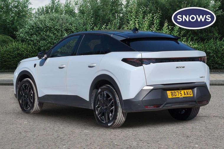 Adaptive cruise control with Stop and Go, Bluetooth with two microphones (Connect up to 2 phones), Drive modes select (Eco, normal and sport) with configurable ambient lighting, Driver foot rest, Driver profile selection, E-call, Exterior temperature indicator with ice warning, Front parking sensor, Front passenger seat detection, Hands free Smart Electric Tailgate (foot operated), Lane keep assist, Manual gear changes via steering mounted paddles, Multi function trip computer, Natural voice recognition, PEUGEOT i-Cockpit - 21" HD panoramic curved display incorporating instrument panel and touchscreen with 3colour themes, PEUGEOT i-connect advanced HD fully customisable touch screen, Navigation with Tom Tom Live updates and over the air map updates, PEUGEOT SOS and assistance, Rear parking sensor, Speed limit and traffic sign recognition and recommendation, Wireless mirror screen with apple carplay and android auto, Wireless smartphone charger with status light and ambient lighting, Dynamic stability control and electronic anti-skid system, AM/FM bi-tuner, DAB Radio (Digital Audio Broadcasting), Peugeot customisable virtual iToggles, USB-C sockets (2 x front and 2 x rear), 3008 model designation badgers front and rear in basalt grey, Acoustic windscreen, Automatic hazard light activation upon heavy brake application, Automatic headlamp activation, Automatic windscreen wiper activation with interval wiping intensity control, Black diamond roof and floating effect rear roof spoiler finished in nera black metallic, Body coloured exterior door handles, Dark tinted privacy glass for rear door, Tailgate and Quarter windows, Door mirrors - Welcome lighting and integrated LED indicators, Electric adjustable/heated/folding door mirrors, Electrochrome rear view mirror, Flat blade wipers with magic wash integrated nozzles, Front and rear electric windows with one touch, Front grille with body coloured accents, Gloss black connecting strip between rear lights, Gloss black finish B pillar, Grained black lower door claddings and wheel arches, Heated rear window, Hybrid rear badging in basalt grey, Laminated windscreen, LED daytime running lights, LED exterior lighting, LED third brake light, Lower front and rear bumper trims in meteor grey, Orbital gloss black door mirrors, PEUGEOT shield on front wings, Pixel LED Technology headlights with adaptive high beam assist, Rain sensor, Rear full LED 3D peugeot signature claw effect lights with daylight function, Rear side wing doors, Rear wiper, 12V socket in front and boot, 2 cupholders in front centre console, 2 rear cupholders, 3 seat rear bench, 4 Grab handles retractable and damped, 4 tie down luggage rings, 40/20/40 folding rear seat backrest with fixed base, Aluminium pedals, Arch design central console with concealed storage, Cabin high efficiency filter, Central front armrest with ventilated storage compartment and LED lighting, Chrome finish interior door handles, Compact heated multifunction steering wheel with full grain leather Iced Clay stitching, gloss black and satin chrome detailing and GT badge, Dual zone climate control, Dynamic front seats, e-Toggle compact gear selector, Electric power steering with reach and rake adjustable steering column, Glasses storage box, roof mounted, LED boot light, LED footwell lights, LED front and rear reading lights with push button control, LED Glovebox light, LED illuminated driver and passenger concealed sunvisor mirrors, Luggage cover, Luxury front and rear carpet mats with Iced Clay stitching and GT logo, Mistral black pillars and headlining, Quick launch cabin heating/cooling function, Rear air vents, Rear centre armrest, Rear smartphone holder, Roof lining - Meteor grey, Seatbelt unfastened on the move audible and visual alert for front and rear seats, Single front passenger seat, Stainless steel PEUGEOT door sill trims, Two bag hooks, Two position boot floor, 2x Isofix child seat fitting on outer rear seats with zipped cover, 3x3 point rear seat belts, ABS (Anti-lock Braking System) with EBD (Electronic Brakeforce Distribution) and EBA (Emergency Braking Assistance), Advanced Emergency Braking System with radar (AEBS3) providing night detection of pedestrians and cyclists, Child locking functionality on rear doors, Driver and front passenger airbags with airbag deactivation function, Driver and front passenger side airbags, Electric parking brake, Electromechanical Low Pitch Single tone horn, Front and rear curtain airbags, Front optimised safety headrests and 3 x rear retractable headrests with height adjustable, Front/rear disc brakes, Hill start assist, Post collision safety brake, Seatbelts - Front and rear outer seats with pyrotechnic pretensioners and force limiters, 2x Keys (Lock, Unlock, Boot release function with concealed key), Acoustic vehicle alert system (AVAS), Automatic door locking when moving off, Deadlocking system, Electronic code immobiliser, Exterior passenger door lock, Locking wheel nuts, Peugeot Open and Go (keyless entry and push button start), Seatbelts reminder and unfastend warning indicator, Thatcham category 1 Perimetric and volumetric alarm with anti-lift detection, Stene grey finish for dashboard, door panels and central console decors, 19" BREDA diamond cut alloy wheels with star center cap in orbital black, Michelin e-primacy class A tyres,