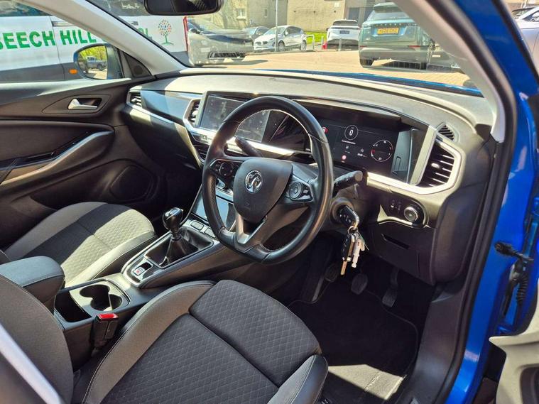 12" colour digital cluster, 180 degree rear view camera, Central facia display with digital clock, outside air temperature and audio information, Cruise control with speed limiter, Digital fuel gauge with low fuel level warning light, Digital rev counter, Digital speedometer, Digital water temperature gauge with warning light, Driver drowsiness alert system, Driver information - Total mileage, service indicator, oil life, Gearshift up/down indication light, Lane departure warning system, Lane keep assist, Lights on audible warning, Multi function trip computer - Trip odometer, vehicle range, average speed and fuel economy, instantaneous fuel economy and driving time, Multimedia navi pro with 10" colour touch+ sat nav+AM/FM/DAB radio, bluetooth audio streaming/mobile phone portal, Apple carplay/Android auto, USB, Speed sensitive electric power assisted steering, Speed sign recognition, Vauxhall connect including Ecall and connected services, Six speaker - four front + two rear, Steering wheel mounted audio/phone/cruise controls, 3rd brake light, Automatic lighting control, Automatically dimming anti dazzle rear view mirror, Black door mirrors, Black side window trim, Body colour door handles, Carbon black door claddings, Collapsible windscreen wipers, Dark tinted rear side and tailgate windows, Door mirror puddle light, Door to door illumination, Electrically adjustable and heated power door mirrors (wide-angle on drivers side) with automatic timed cut-off, Electrically operated front and rear windows with safety auto reverse and one touch up/down facility, Front/rear bumper and wheel arches in carbon black exterior color, GRANDLAND Carline name badge in - High gloss black, Hazard warning lights, Heated rear screen with timed cut off, High beam assist, High gloss black protective front and rear skid plates with C shape bumper inserts, High gloss black roof rails, High level centre rear brake light, Intermittent rear window wash/wipe, LED daytime running lights, LED Headlights, LED tail lights, Manual headlight beam levelling, Rain sensor windscreen wipers, Rear side wing doors, Rear spoiler, Reversing light, Shark fin aerial, Side protection mouldings, Side window demist vents, Soundproof insulated windscreen, Tinted windows, Upper and lower bumper design, Vauxhall brand griffin badge in front and rear in high gloss black, Vauxhall plate door sill cover, Vizor front grille, Welcome lighting, Windscreen demist vents, 12V electrical accessory socket in front, 3 bench rear seats in 2nd row, 3 spoke flat bottom leather steering wheel with satin chrome effect bezel, 4 way electric driver lumbar support, 4 way manual adjustable driver seats with height, reach and backrest, 60/40 split folding rear seat, Advanced predictive logic control system using a sun sensor, Ambient centre console downlighter, Anti submarining ramps in front seats, Automatic air direction and fan speed with manual override, Black premium leather-effect side bolsters, Charcoal filter, Chrome effect interior door handles, Cosmo 1 Harlekin curitiba seats, Covered storage compartment in centre console and in driver armrest, Driver ergonomic active front seat, Driver's centre armrest, Dual zone electronic climate control, Four adjustable facia vents, Front door pockets with 2.6 litre capacity, Front passenger seat, Front passenger seat cushion extension, Front passenger sport style seat, Grey headliner, Height adjustable headrests, Illuminated controls, Illuminated driver/front passenger sunvisors, Illuminated luggage area + Ambient lighting in front doors, Interior courtesy light operated by door switches, ISOFIX on front passenger and rear outer seats, Luggage compartment cover, Reach + rake adjustable steering column, Rear centre seat head restraint, Rear door pockets with 1.8 litre capacity, Rear passenger compartment heating ducts, Rear reading lights, Two drinks holders in centre console, Ventilated glovebox with lid, 6 Airbags - Driver and passengers front airbag, two front side impact airbag, full size curtain airbags for driver, Anti-lock braking system (ABS), Automatic emergency braking system, Child proof locks on rear doors, CSC - Cornering stability control, Deactivation switch for front passenger front and side impact airbags, Deflation detection system, Deformation zones front and rear, Dual seatbelt pretensioners on front seats, EBD - Electronic brakeforce distribution, Electronic parking brake, Electronic stability program (ESP) including traction control, Energy absorbing steering column, Engine drag torque control, Hill start assist, Hydraulic Brake Assist (HBA), Inertia reel lap and diagonal seatbelts for all seats, Load limiters on outer rear seatbelt retractors, Rear restraint seat belt pretensioner, Reinforced passenger safety cell, Side impact protection beam, Smart seatbelt reminder for front and rear seats, Tyre pressure monitoring system, Deadlocking system, Electronically protected audio equipment, Engine deadlock immobiliser, Freewheeling door locks, Key left in ignition audible warning, Locking wheel nuts, One rigid one flap-key coloured, Remote control central locking activation switch on driver door, Remote control primary foldable and additional foldable key, Remote security alarm system, Self powered alarm horn, Single horn, Theft deterent body security content and electircal child lock system, Theft deterent electrical, Visible vehicle identification number, Black door panels with black premium leather effect inserts, Dax decor facia panel with palladium medium finish, 18" 5 twin spoke high gloss black alloy wheels, Tyre inflation kit,