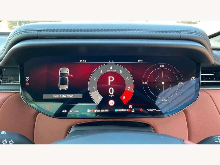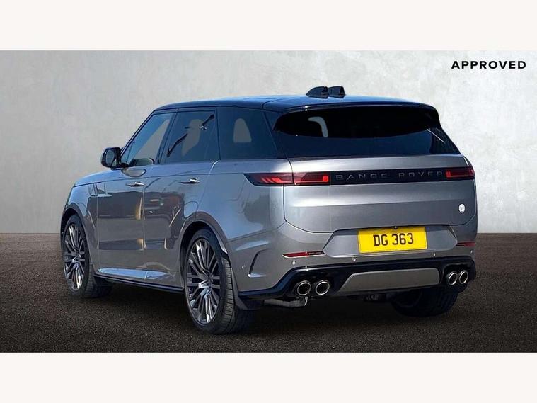 13.1" Touchscreen, 3D 360 degree surround camera with wade sensing, Adaptive cruise control with steering assist, All wheel steering, Android Auto, Apple car play, Blind spot assist, Bluetooth connectivity streaming, Configurable programs, Driver condition response, Eco mode, Electric power assisted steering (EPAS), Front and rear parking aid, Head up Display, Interactive Driver display instrument cluster, Lane departure warning system, Lane keep assist, Park assist, Powered gesture tailgate, Push button start, Rear collision monitor, Rear traffic monitor, Remote, Traffic sign recognition with adaptive speed limiter, Trip computer, Wireless device charging with phone signal booster, 6D Dynamics, 8 speed automatic transmission, Adaptive dynamics, Adaptive off-road cruise control, All wheel drive system, Automatic access height, Electronic active differential with brake torque vectoring, Single speed transfer box, Terrain Response 2, DAB Radio (Digital Audio Broadcasting), Incontrol protect - SOS emergency call with automatic collision detection, optimised assistance call and Incontrol remote app essential, Meridian Signature Sound system, Pivi pro connected, USB/aux input socket, Adaptive brake lights, Automatic headlight levelling, Automatic headlights, Centre high mounted stop light, ClearSight interior rear view mirror, Digital LED headlights with signature DRL and image projection, Electric heated/power fold memory door mirrors with approach lights and auto dimming driver side, Electric windows with one touch open/close and anti trap, Flush deployable exterior door handles, Follow me home lighting, Front and rear recovery eyes, Headlight power wash, Heated rear window, Heated washer jets, Heated windscreen, Illuminated metal treadplates with SV script, Integrated twin tailpipes, Laminated front and rear side glass, LED tail lights, Metal load space scuff plates, Privacy glass, Rain sensing windscreen wipers, Rear animated directional indicators, Rear fog lights, Rear side wing doors, Rear wash/wipe, Remote window closing, Side repeater indicators in mirror, SV bespoke ultra metallic gloss finish paint, SV exterior badge, Trailer stability assist, Winter wiper park position, 16 way electric heated and cooled performance front seats with massage and heated and ventilated power recline rear seats, 3 seat bench in 2nd row, 60:40 seats with power recline and loadthrough, Air quality sensor, Automatic air recirculation system, Body and soul seat, Bright metal foot pedals, Centre console with armrest, Customer configurable single point entry, Driver's footrest, Easy boot loading, Ebony console door armrests and seatbelts, Edge illuminated paddle shifters, Electric adjustable steering column, Front and rear cupholders, Front door storage space, Front head restraints, Front map lights, Front seat back map pockets, Front stowage pocket, Front/rear passenger grab handles, Gearshift paddles, Heated steering wheel, Isofix child seat preparation, Loadspace cover, Loadspace Hook, Loadspace light, Loadspace mounting provisions, Lockable glovebox, Luggage tie-downs in loadspace, Multifunction steering wheel, Pollen filter, Power socket, Premium cabin lighting, Rear centre armrest, Rear head restraints, Rear ISOFIX, Single front passenger seat, Soft close doors, SV carpet mats, Three 12V accessory power outlets, Upper secondary glovebox, Online pack with data plan - Range Rover Sport, SV Twill Carbon Gloss Fibre Exterior pack - Range Rover Sport, 3 point seatbelts on all seats, Anti-lock braking system (ABS), Brake pre-fill technology, Configurable autolock, Cornering brake control (CBC), DSC - Dynamic Stability Control, EBD - Electronic brakeforce distribution, Electric parking brake, Electronic traction control, Emergency braking, Front seatbelt pretensioners, Front side airbags, Height adjustable front seatbelts, Hill descent control, Hill launch assist, Illuminated seat belt buckles, Low traction launch, Occupant protection assist, Passenger seat occupant detector with front airbags, Power operated child locks, Roll stability control, Seatbelt warning, TPMS (Tyre pressure monitoring system), Immobiliser, Intrusion sensor, Keyless entry, Locking wheel nuts, Perimetric and volumetric anti theft alarm, Remote locking, Satin black ceramic controls, SV Carbon fibre finisher,