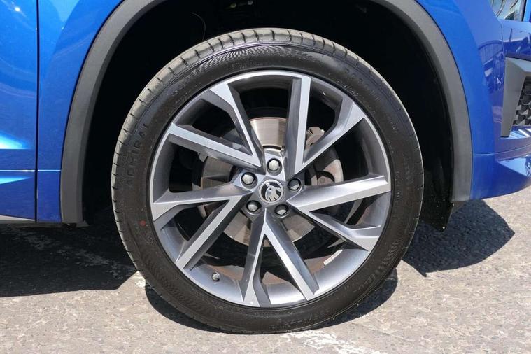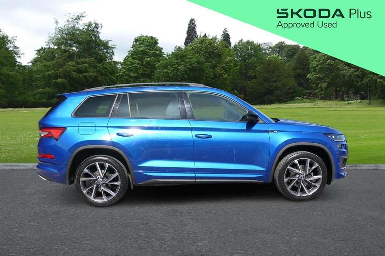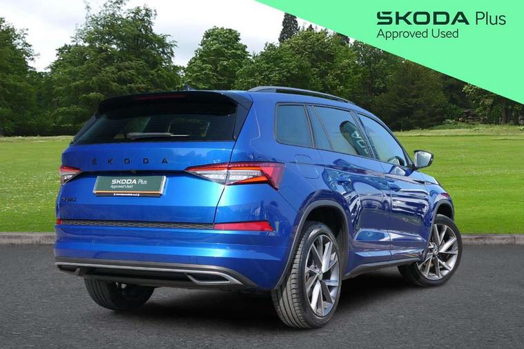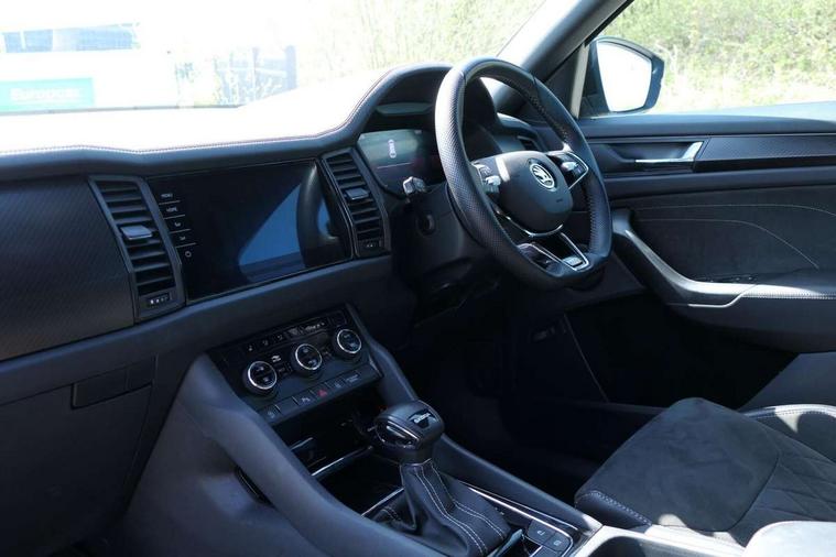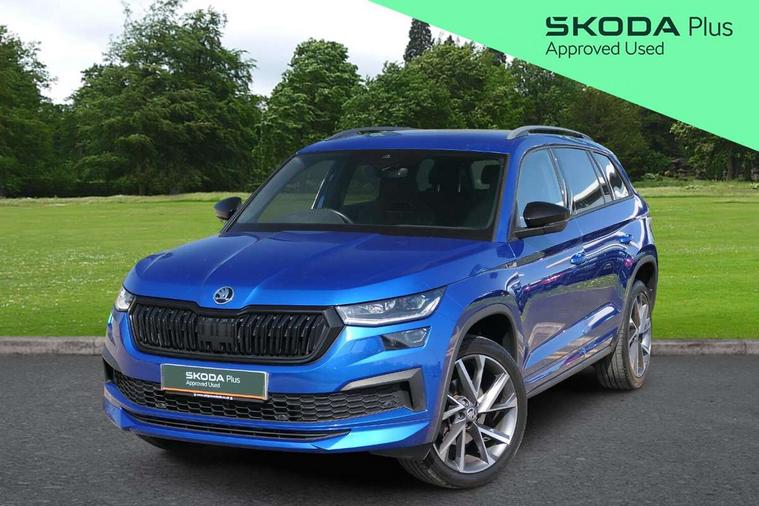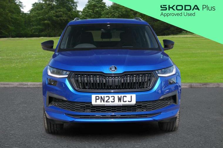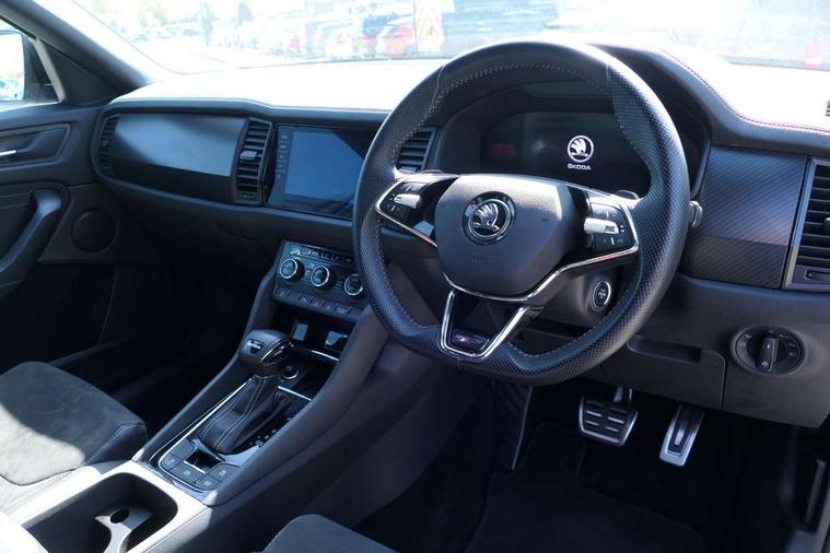 Bluetooth system, Columbus satellite navigation with 9.2" touchscreen, integrated Wi-Fi, web radio, Digital voice enhancement, e call+, ECO Stop/start function, Exterior temperature indicator, Progressive steering, Rear view camera, Smartlink wireless for apple carplay and wired for android auto, Speed limiter, Tailgate unlocking from outside, USB C Port x 2 in front centre console, Virtual Cockpit - 10.25" digital display with additional sports design, Wireless charging, 8 Speakers, DAB Digital radio, Aero front windscreen wipers with intermittent function, Aero rear window wiper, Auto dimming rear view mirror, Black roof rails, Black sports styling including front grille and window surrounds, Black wheel arch surrounds, Body colour bumpers, Body colour door handles, Electric adjustable/heated/folding door mirrors, driver side auto dimming with boarding sports and memory function, Electric front and rear windows, Extended rear spoiler with finlets in gloss black, Front fog lights, Full LED matrix headlights with AFS (adaptive front light system), cornering function and AWL (all weather lighting system), Gloss black door mirrors, Headlight washers, Heated rear window, Invisible tailpipe, LED daytime running lights, LED rear fog light, LED third brake light in rear spoiler, Light assistant (coming/leaving home/tunnel light), Off-road style lower front bumper element, Privacy glass, Rain and light sensors, Rear diffuser, Rear LED lights (high functionality) with welcome effect and dynamic indicators, Rear side wing doors, Safety reflectors on front and rear doors, Sportline badge on front fender, Sports front and rear bumpers including lower rear chrome strip, Tailgate lettering in Black, Window control switches with black trim, 12V socket in boot, 2 rails with 2 hooks, 2 seat bench in 3rd row, 3 seat bench in 2nd row, 4 foldable roof handles with rear coat hooks, 60:40 foldable rear seat with sliding adjustment and backrest angle adjustment, Aluminium pedals, Black roof headlining, Bottle holders in door panel in the 1.5 litre front and 1 litre rear, Cargo storage compartments, Chrome headlight control button, Chrome interior door handles, Coat hooks on B pillar, Covered storage compartment on driver side, Decorative door sill covers, Front and rear door armrest with black adductor trim, Front centre armrest with storage compartment, cup holder and 12V socket, Front courtesy lights, Gear shift lever with chrome frame and black gloss insert, Grey stitching in front and rear armrests and door armrests + door inserts, Height adjustable front headrests, Illuminated and cooled glovebox, Illuminated luggage compartment, Isofix child seat fittings in outer rear seats with top tether, Manually adjustable steering column, Microsuede door panels, Net programme in boot (1x horizontal Net, 2x vertical Nets), Overhead glasses storage compartment, Pollen filter, Rear centre armrest with cupholders, Single front passenger seat, Sliding trunk cover, Small Bags on the inner sides of the front backrests, Sports seats, Sunvisors with illuminated vanity mirrors, Three rear height adjustable headrests, Ticket holder on A Pillar, Umbrella in door panel, Variable boot floor, LED Interior light pack - Kodiaq, Auto door release and activation of warning lights in the event of an accident, Child locks on rear doors, Driver and front passenger airbag with knee airbag and front passenger airbag deactivation, Electronic parking brake with hill start assist, Emergency rear braking signal, ESC (incl. ABS+MSR+ASR+EDS+HBA+DSR+RBS+MKB), Front assist with autonomous emergency braking, Front side airbags with curtain airbags, Fuel cut off safety device, Height adjustable front 3 point seatbelts + pretensioners, Hill hold control, Rear disc brakes, Safety vest holder in door, Seat belt reminder for all seats, Three point rear seat belts, Two tone horn, Tyre pressure monitor, Alarm with interior monitoring and tilt sensor with safe function, Anti-theft wheel bolts, Immobiliser, Keyless entry and start system (KESSY), Remote central locking with 2 keys, Black air vent surround, Carbon finish dashboard and door inserts, Grey stitching in dashboard, 20" Vega Anthracite alloy wheels, Temporary spare wheel (space saver),