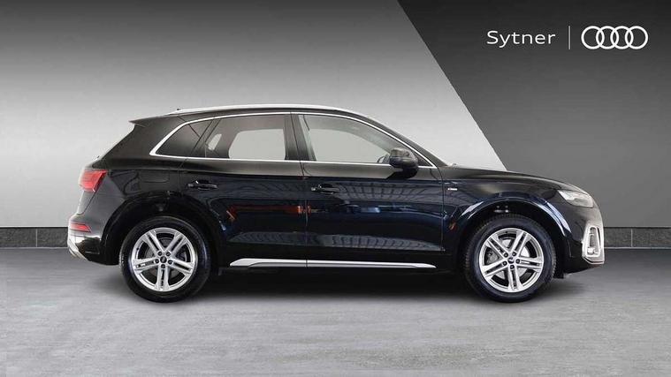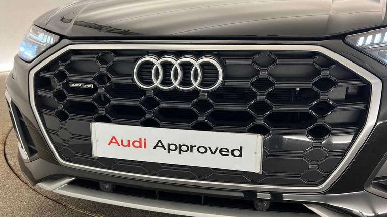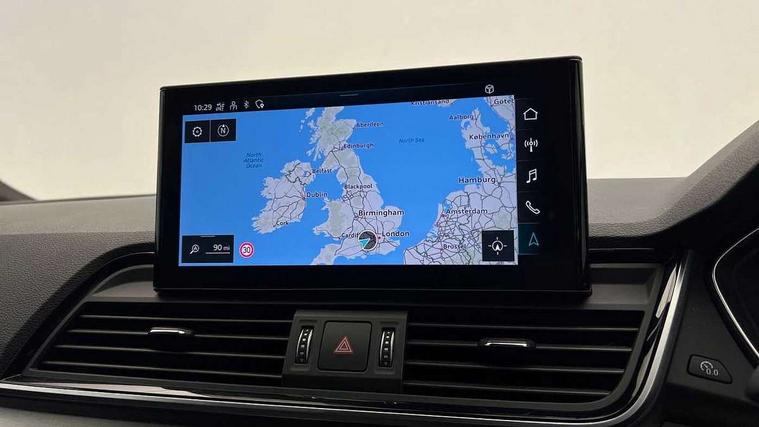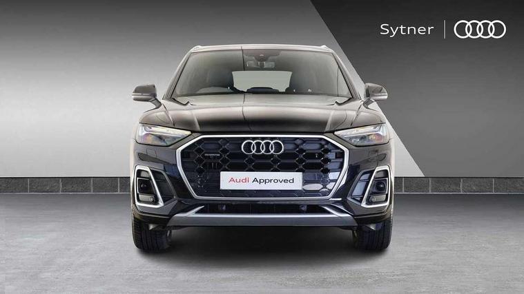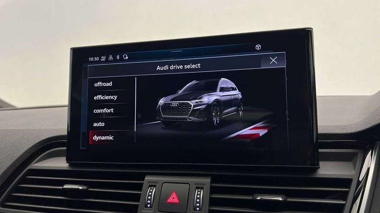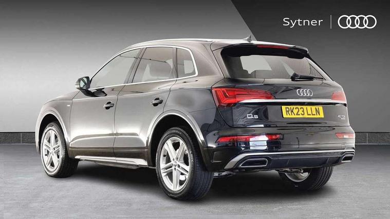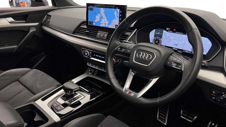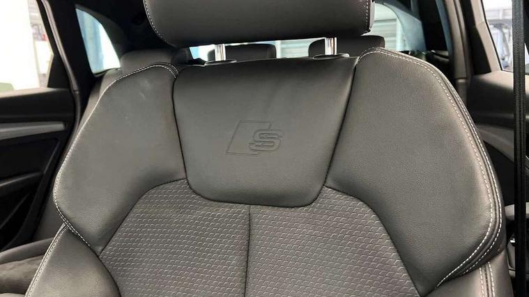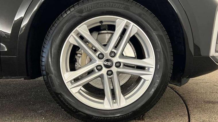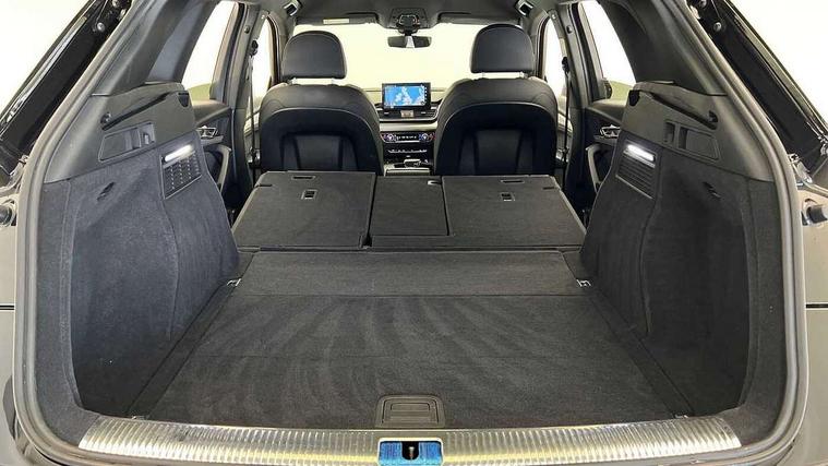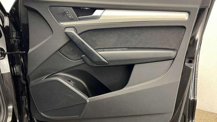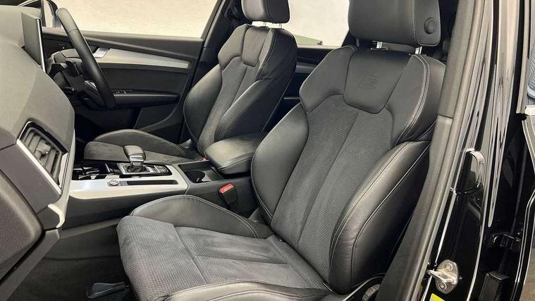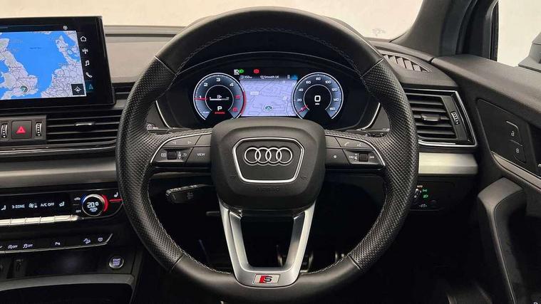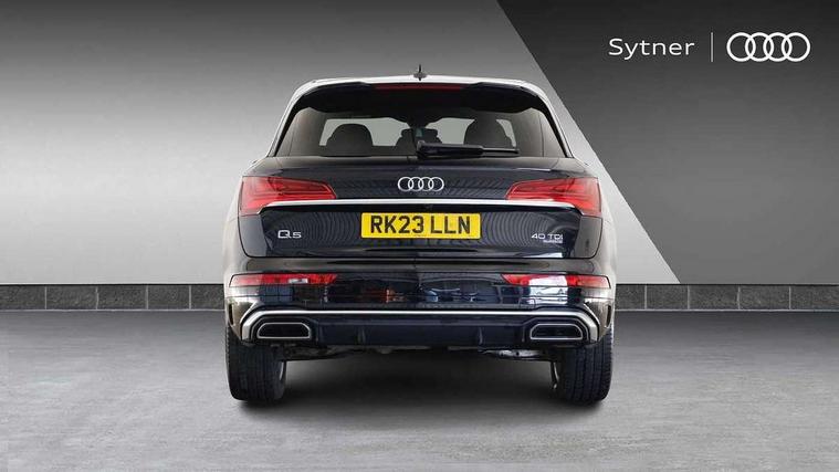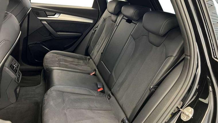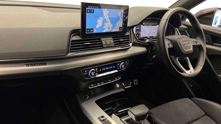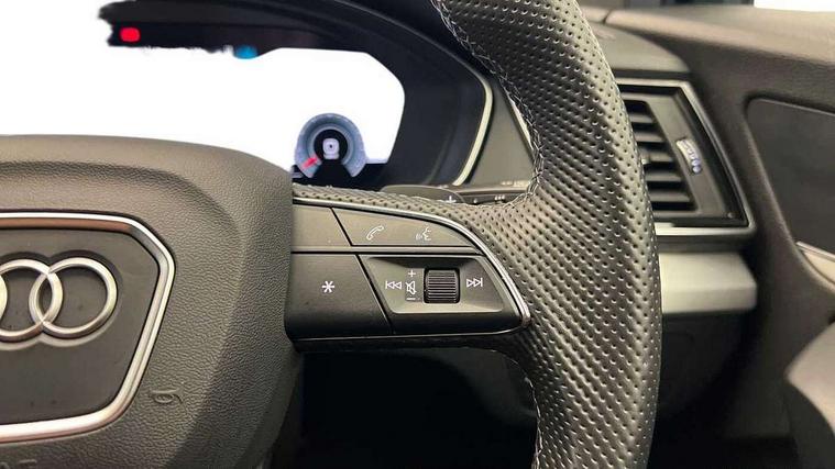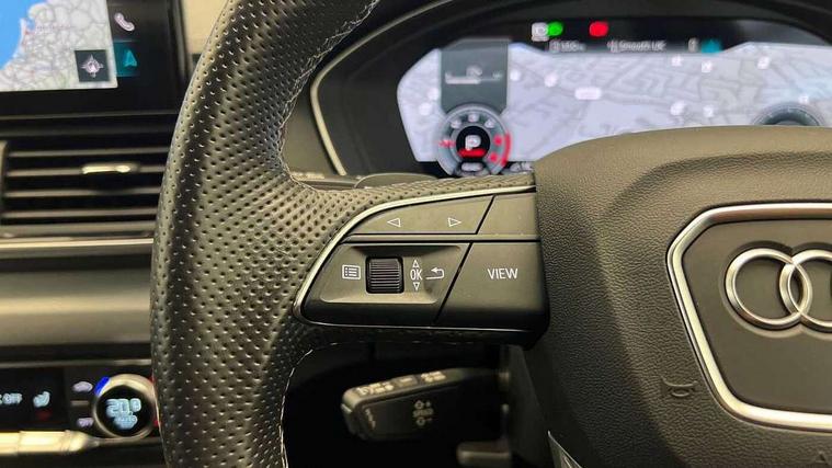 Acoustic front and rear parking sensor, Audi connect safety and service (e-call), Audi connect with Amazon Alexa Integration, Audi drive select, Audi virtual cockpit plus with 12.3" screen and three different layout designs, Audi wireless smartphone interface, Automatic start-stop system with coasting functionality and efficiency programme, Bluetooth interface, Electro - mechanical power assisted steering, MMI navigation plus with 10.1" touch screen, Power tailgate, Reversing camera, Service interval indicator, Voice control system with Audi hotword activation "Hey Audi", Diesel particulate filter, Quattro on demand, S line sports suspension, 2 x USB charging port with aux input socket, 8 loudspeakers, DAB Digital radio, Acoustic windscreen, Aluminium roof rails, Audi matrix LED headlights with dynamic front and rear indicators, Auto dimming door mirrors, Auto dimming frameless rear view mirror, Automatic headlight adjustment, Automatic headlights and windscreen wipers, Body colour bumpers, Body colour door mirrors, Body colour rear diffuser with matt aluminium silver surrounds, Body colour underbody protection, Chrome plated exhaust trims, Daytime running lights, Door sills in Selenite silver, Electric adjustable/heated/folding door mirrors, Front air inlet surrounds in aluminium, Front and rear electric windows, Front radiator grille in honeycomb design, Headlight washers, High level LED brake light, Lower bumpers painted in contrast Manhattan grey, Rear chrome trim strip below lights, Rear privacy glass and rear side windows, Rear side wing doors, Rear wiper, Roof bars, S Line badges on the front wings, S Line front and rear bumpers, S Line rear spoiler, S Line side skirts, 3 rear headrests, 3 spoke leather multifunction steering wheel with S badging perforated leather grips, 40:20:40 split folding 3 rear bench seat in 2nd row with rear centre armrest, Black cloth headlining, Comfort front centre armrest, Contrast stitching on seats, steering wheel and gear lever gaiter, Deluxe 3 zone electronic climate control, Front/rear floor mats, Gear lever in black leather, Heated front seats, Height adjustable front head restraints, Height/reach adjustable steering column, Illuminated door sill trims with S logo, Luggage compartment cover, Manual seat adjustment with 4-way electric lumbar support, Removable luggage compartment floor, Single front passenger seat, Stainless steel pedals, Sunvisors with vanity mirrors, High gloss pack - Q5, LED interior light pack - Q5, 3 point seatbelts on all seats, 6 airbags - Driver, front passenger, curtain and side airbags, Electrically operated child locks on rear doors, Electromechanical parking brake, Electronic stabilisation control including ABS, ASR and EDL, First aid kit with warning triangle and vests, Front passenger airbag deactivation, Hill descent control, Hill hold assist, ISOFIX child seat mounting for front passenger seat and ISOFIX child seat mounting with Top Tether for outer rear seats, Multi collision brake assist, Pop-up bonnet for pedestrian protection, Pre sense city, Seat belt force limiter, Seatbelt monitoring, Tyre pressure warning, Anti theft alarm, Anti-theft wheel bolts, Keyless Go access/ignition system, Remote central locking, Air vents inserts and centre console in gloss black, Matt brushed aluminium inlays,