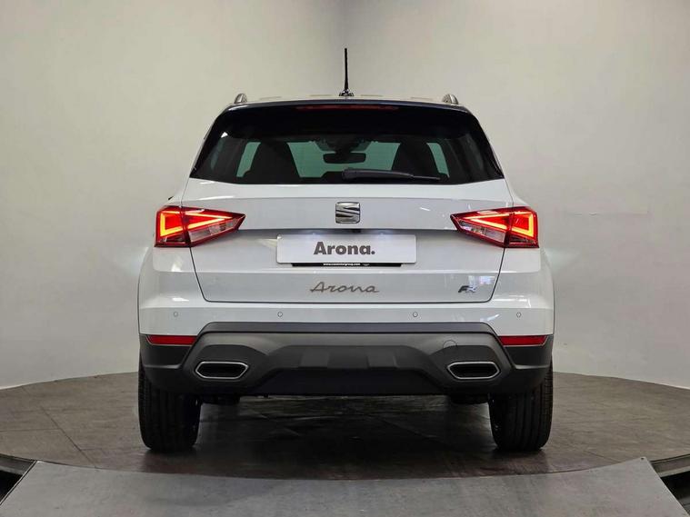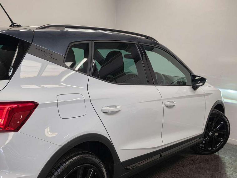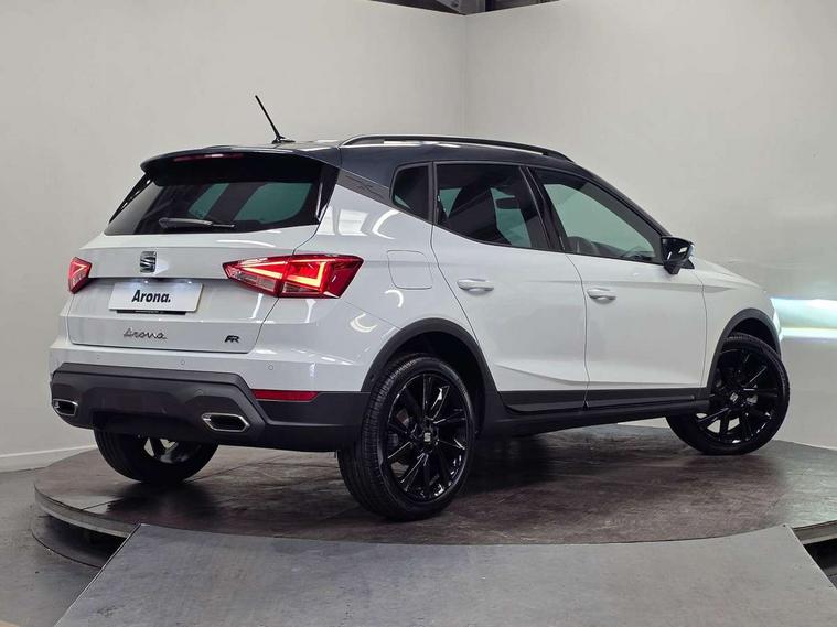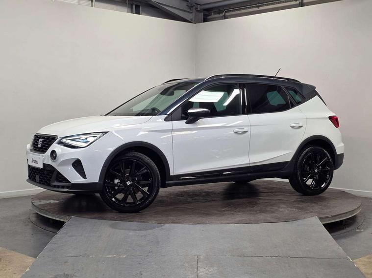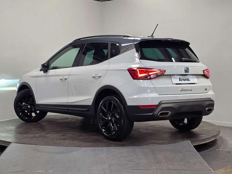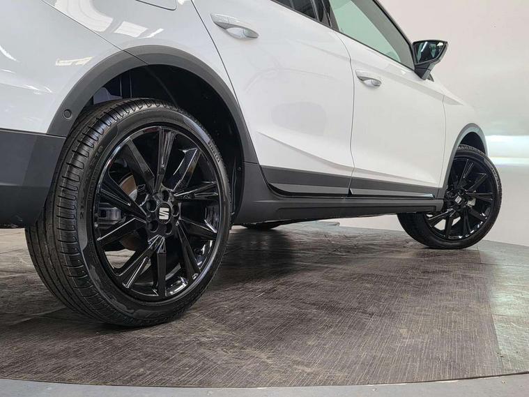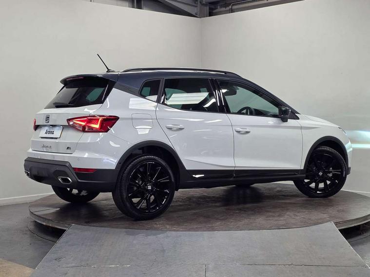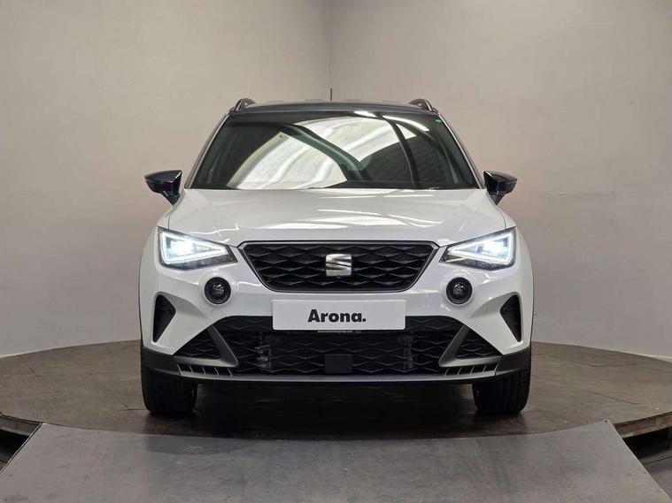 'Lights On' Reminder warning buzzer, 10" Digital cockpit, Digital clock, E-call, Electric speed sensitive power steering, Full link smartphone integration with mirror link, wireless apple carplay, Google android auto + USB Type C cable for apple and android devices, Lane keeping system, Low fuel warning light, Outside temperature display, Park assist system, Rear view camera, RPM counter, SEAT Drive profile - Four different models normal-sport-eco-individual, steering response, throttle response, Trip computer, Wireless phone charger, 9.2" colour touchscreen with navigation system, voice control and USB port (type c), Bluetooth interface for hands free and audio streaming, DAB digital radio and AM/FM radio, Steering wheel mounted audio controls, Anti theft roof antenna, Auto dimming interior rear view mirror, Automatic activation of hazard warning lights, Black roof rails and window surrounds, Black side skirts, Body coloured bumpers, Body coloured door handle inserts, Dark tinted rear windows, Electric front/rear windows, Electrically adjustable, heated and folding door mirrors, Front fog lights with cornering function and rear fog light, FULL LED automatic headlights with dynamic headlight range control, coming and leaving home, LED daytime running lights, Lasered lettering on B pillar, LED rear tail lights and licence plate lights, Protective side mouldings, Rain sensing wipers, Rear side wing doors, Rear spoiler, Rear window wash/wipe, Roof colour door mirrors, Third brake light, Twin exhaust pipe styling hidden exhaust pipe, Visible VIN plate, 2 cupholders, 3 seat bench in 2nd row, 60/40 split folding rear seat, Aircare filter, Black interior roof, Double boot floor, Driver sunvisor with covered mirror + card holder, Dual zone climate control, Front courtesy light with front reading lights, Front seat back storage pockets, Gear shift indicator, Grey interior air vents, Heated front seats, Height adjustable front seats, Height/reach adjustable steering column, Illuminated air vent surrounds, Illuminated boot, Instrument lighting with brightness control, Interior ambient lighting, Interior light in footwell, central console and door panel, ISOFIX points in outer rear seats with top tether anchorage points, Microsuede cloth upholstery, Passenger sunvisor with vanity mirror, Perforated flat bottomed leather steering wheel/gear knob/handbrake with red stitching and FR logo, Potentiometer, Single front passenger seat, Sports cloth bucket seats, Two front and three rear height adjustable headrests, Interior chrome pack - Arona, Safe and driving pack (S) - Arona, Safety and driving pack (M) - Arona, ABS, Active front headrests, Child locks on rear doors, Driver and front passenger airbags with front passenger airbag de activation, front side and curtain airbags, Emergency Brake Assist (EBA) and front assist, Front and rear seatbelt reminder, Hill hold control, Multi-Collision braking, Tiredness recognition system, Traction control, Tyre pressure monitoring system, Alarm with back up horn with tow away protection, Deadlock, Electronic engine immobiliser, KESSY Keyless entry and go, Locking wheel bolts, Remote central locking, Titan black dashboard, 18" Black alloy wheels,