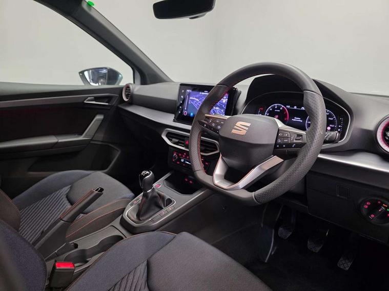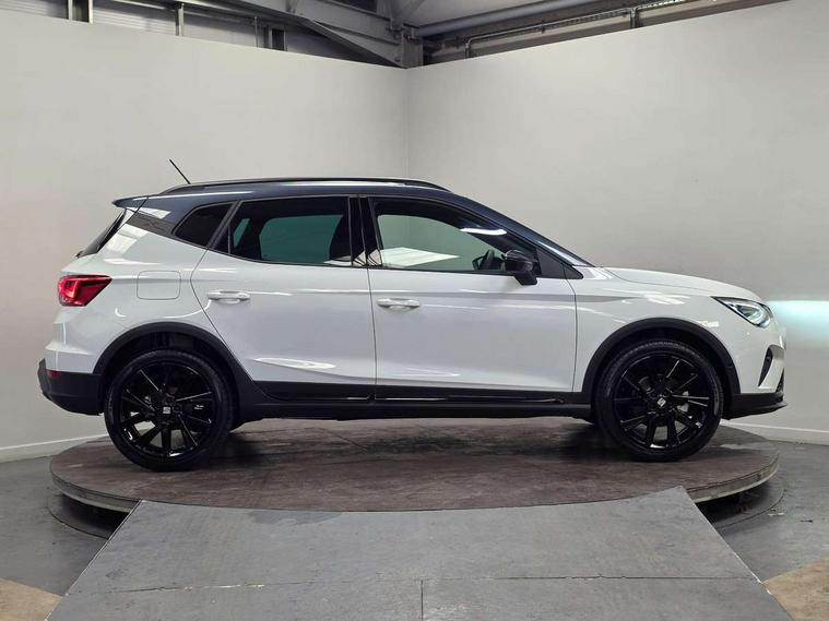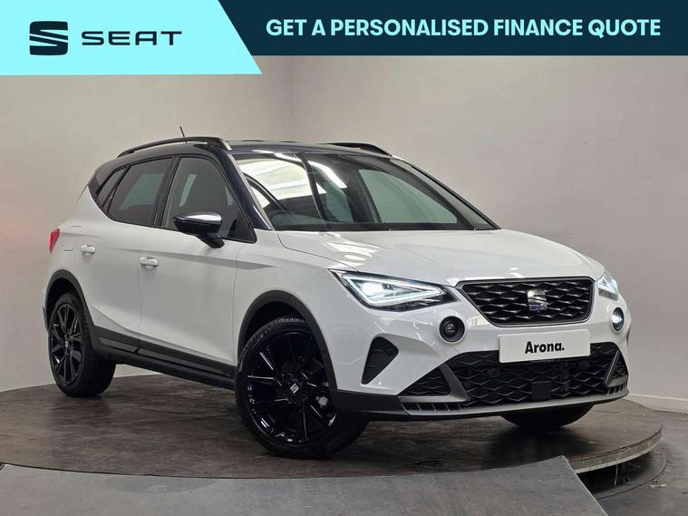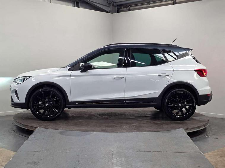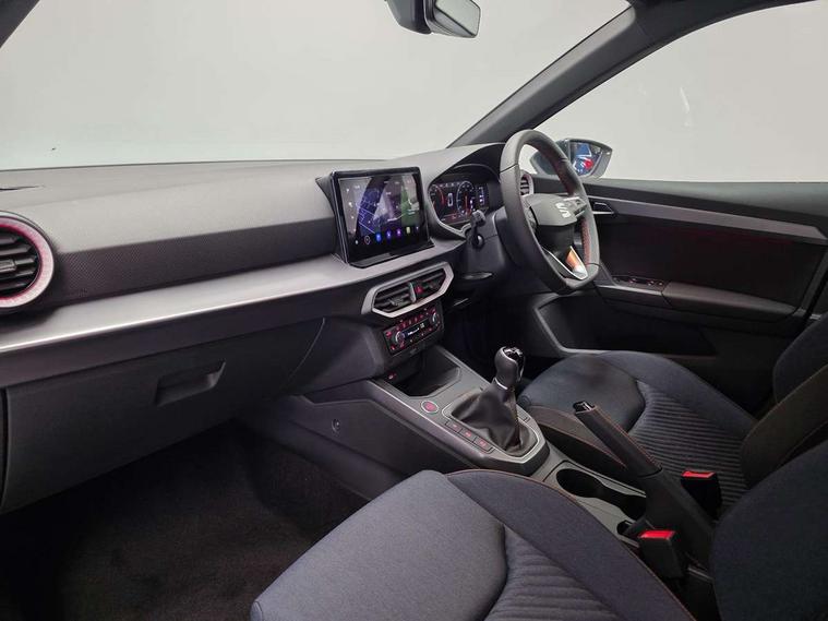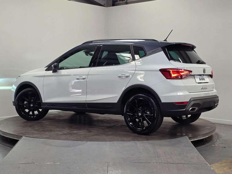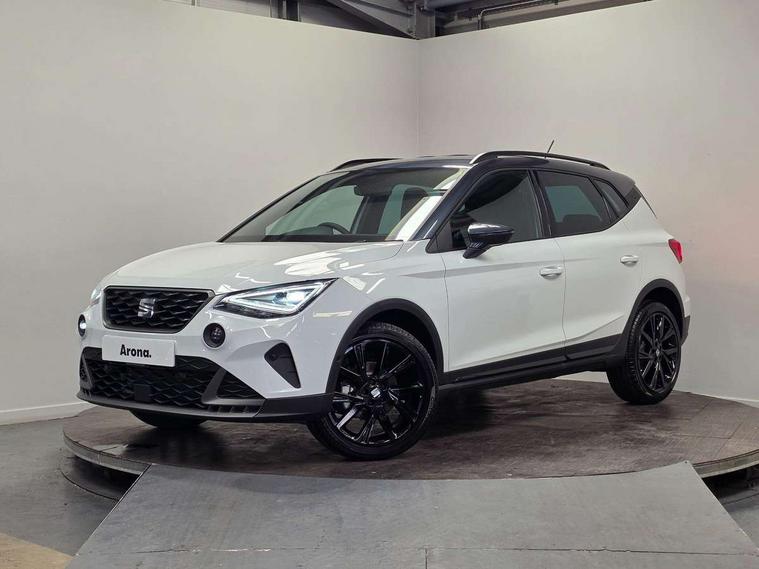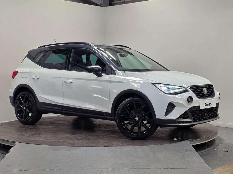'Lights On' Reminder warning buzzer, 10" Digital cockpit, Digital clock, E-call, Electric speed sensitive power steering, Full link smartphone integration with mirror link, wireless apple carplay, Google android auto + USB Type C cable for apple and android devices, Lane keeping system, Low fuel warning light, Outside temperature display, Park assist system, Rear view camera, RPM counter, SEAT Drive profile - Four different models normal-sport-eco-individual, steering response, throttle response, Trip computer, Wireless phone charger, 9.2" colour touchscreen with navigation system, voice control and USB port (type c), Bluetooth interface for hands free and audio streaming, DAB digital radio and AM/FM radio, Steering wheel mounted audio controls, Anti theft roof antenna, Auto dimming interior rear view mirror, Automatic activation of hazard warning lights, Black roof rails and window surrounds, Black side skirts, Body coloured bumpers, Body coloured door handle inserts, Dark tinted rear windows, Electric front/rear windows, Electrically adjustable, heated and folding door mirrors, Front fog lights with cornering function and rear fog light, FULL LED automatic headlights with dynamic headlight range control, coming and leaving home, LED daytime running lights, Lasered lettering on B pillar, LED rear tail lights and licence plate lights, Protective side mouldings, Rain sensing wipers, Rear side wing doors, Rear spoiler, Rear window wash/wipe, Roof colour door mirrors, Third brake light, Twin exhaust pipe styling hidden exhaust pipe, Visible VIN plate, 2 cupholders, 3 seat bench in 2nd row, 60/40 split folding rear seat, Aircare filter, Black interior roof, Double boot floor, Driver sunvisor with covered mirror + card holder, Dual zone climate control, Front courtesy light with front reading lights, Front seat back storage pockets, Gear shift indicator, Grey interior air vents, Heated front seats, Height adjustable front seats, Height/reach adjustable steering column, Illuminated air vent surrounds, Illuminated boot, Instrument lighting with brightness control, Interior ambient lighting, Interior light in footwell, central console and door panel, ISOFIX points in outer rear seats with top tether anchorage points, Microsuede cloth upholstery, Passenger sunvisor with vanity mirror, Perforated flat bottomed leather steering wheel/gear knob/handbrake with red stitching and FR logo, Potentiometer, Single front passenger seat, Sports cloth bucket seats, Two front and three rear height adjustable headrests, Interior chrome pack - Arona, Safe and driving pack (S) - Arona, Safety and driving pack (M) - Arona, ABS, Active front headrests, Child locks on rear doors, Driver and front passenger airbags with front passenger airbag de activation, front side and curtain airbags, Emergency Brake Assist (EBA) and front assist, Front and rear seatbelt reminder, Hill hold control, Multi-Collision braking, Tiredness recognition system, Traction control, Tyre pressure monitoring system, Alarm with back up horn with tow away protection, Deadlock, Electronic engine immobiliser, KESSY Keyless entry and go, Locking wheel bolts, Remote central locking, Titan black dashboard, 18" Black alloy wheels,