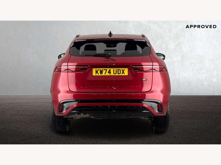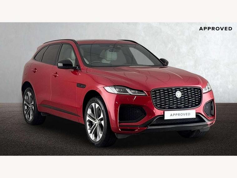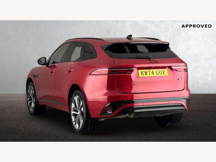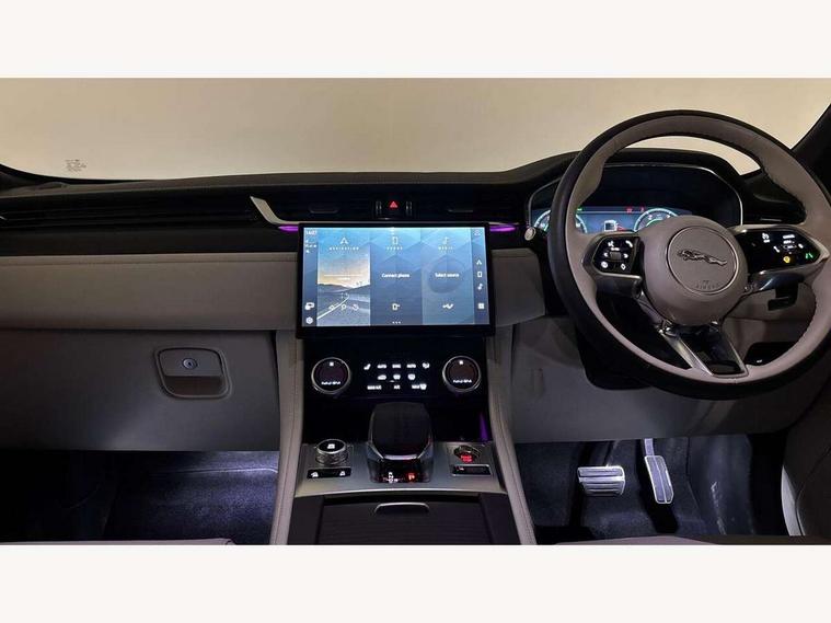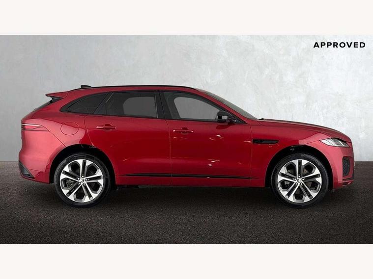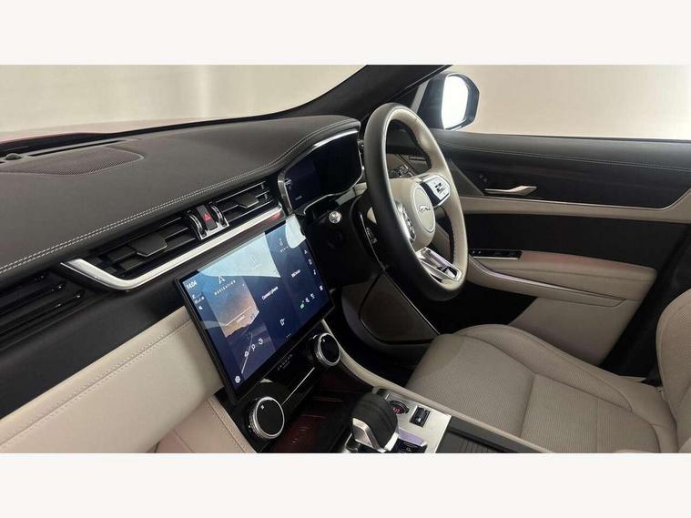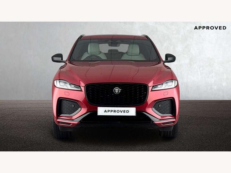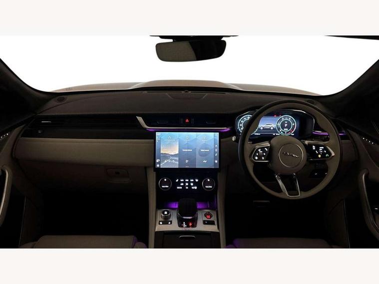 11.4" touchscreen, Adaptive cruise control with steering assist, Android Auto, Apple car play, Blind spot assist, Bluetooth connectivity, Clear exit monitor, Driver alert system, Driver condition monitor, eCall emergency call system, Eco driving style assistant, Electric power assisted steering, InControl remote, Interactive driver display digital with 12" TFT display, Jaguar Toggle shift selector, Lane departure warning system, Lane keep assist, Outside temperature gauge, Personalisation profile management, Pivi pro connected navigation system with app interface and media storage, Pro services and wifi hotspot, Push button starter, Rear collision monitor, Rear traffic monitor, Service interval indicator, Speed proportional steering, Start up sequence with movement in dials and lighting, Traffic sign recognition with adaptive speed limiter, Trip computer, Voice control system, Wireless device charging, 8 speed automatic transmission, Adaptive dynamics, All terrain progress control, All Wheel Drive (AWD), Configurable dynamics, Open differential with torque vectoring by braking, AM/FM radio, Bluetooth streaming, DAB Radio (Digital Audio Broadcasting), Dynamic volume control, InControl apps, InControl protect, iPod integration, 3 flash lane change indicators, 90th Anniversary Edition Badge, AHBA and animated directional indicators, Approach Illumination, Auto dimming rear view mirror, Automatic headlights, Electric heated/power fold memory door mirrors with approach lights and auto dimming driver side, Electric windows with one touch open/close and anti trap, F-Pace and R Dynamic badge, Green tinted glass, Heated front windscreen + heated washer jets, Heated rear window with timer, Illuminated metal tread plates with Jaguar script, Jaguar script and leaper, LED High level third brake light, LED tail lights, Metal load space scuff plates, Non acoustic front windscreen, Privacy glass (rear side windows and rear screen), R Dynamic badge on side door, Rain sensor windscreen wipers, Rear fog lights, Rear metal tread plates, Rear side wing doors, Rear wiper, Trailer stability assist, Variable front intermittent wipers, 12V power point front, 3 rear headrests, 3 seat bench in 2nd row, Additional power sockets - Two additional USB sockets in rear centre console and one 12V socket in trunk, Air distribution speed, Bright metal foot pedals, Centre armrest console, Centre console with side storage, Configurable cabin lighting, Deletion loadspace storage rails, Door sill tread plates, Ebony suede cloth headlining, Electrically adjustable steering column, Fold flat front seats, Front centre armrest with storage compartment, Front door storage space, Glovebox finisher with jaguar script, Heated steering wheel, Hooks in loadspace, Illuminated glovebox, Interior front door handles with separate locking switches, ISOFIX on outer rear seats, Jaguar sense, Leather steering wheel, Luggage tie downs in loadspace, Mist sensing, Multifunction steering wheel, Overhead lighting console, Overhead stowage for sunglasses, Passive front head restraints, Premium carpet mats, Rear air vents, Rear armrest with twin cupholders, Rear centre headrest, Rear door storage space, Reversible boot floor, Satin chrome gearshift paddles, Shopping bag hook, Single front passenger seat, Sunvisors with illuminated vanity mirrors, Twin front cupholders with cover, Online Pack with data plan - F-Pace, 355mm front brakes and 325mm rear brakes, 3x3 point rear seatbelts, ABS, All surface progress control (ASPC), Brake pad warning light, DSC - Dynamic Stability Control, Electric parking brake (EPB), Emergency brake assist, Front airbags with passenger seat occupant detector, Front and rear seatbelt reminder, Front side airbags, Full length side window curtain airbag, Hill launch assist, Power operated child locks, Traction control, Tyre pressure monitoring system, Immobiliser, Keyless entry, Keyless start, Locking wheel nuts, Perimeter alarm, Remote central locking, Valet mode,