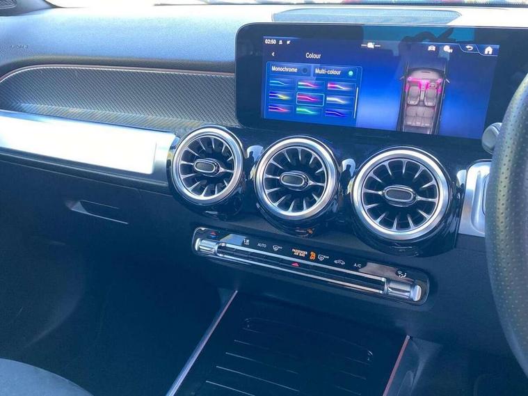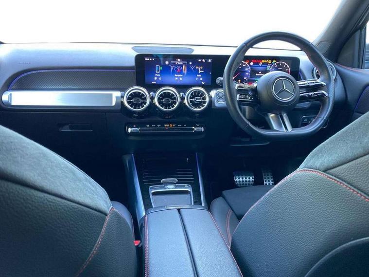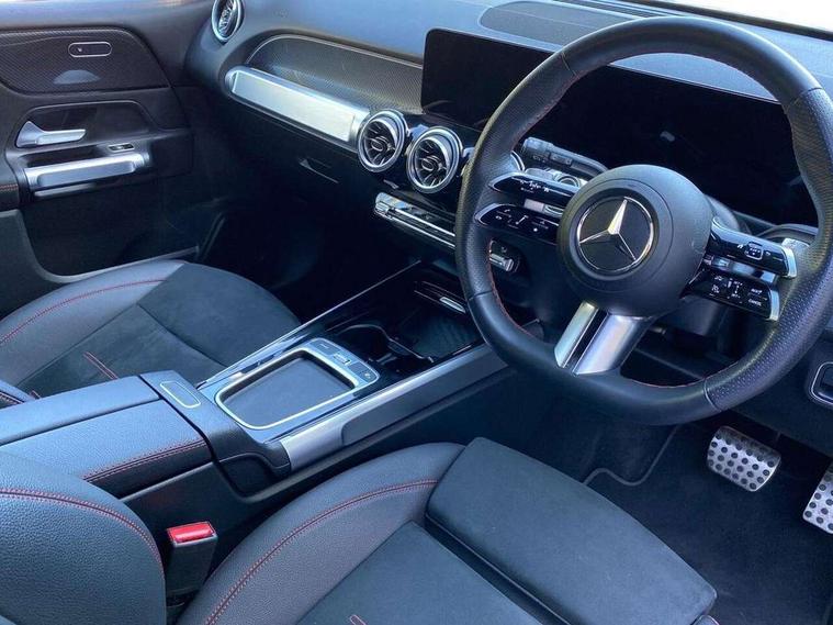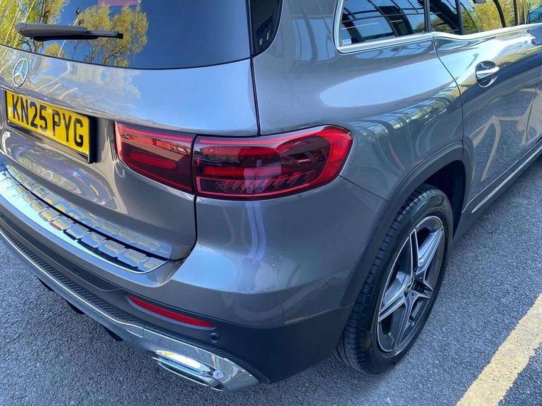 10.25 inch touchscreen central media display, 10.25" Digital instrument cluster display screen, Attention assist - Monitors steering behaviour and long journey fatigue, Blind spot assist, Bluetooth connection, Brake pad wear indicator warning light, Car wash mode, Direct steering, DYNAMIC SELECT with a choice of driving modes (ECO, Comfort, Sport and Individual), ECO start/stop function, Exit warning function, Fingerprint scanner, Fluid level warning indicator for fuel, oil, coolant and washer fluid, Hard disk navigation, Hey Mercedes Voice activation, Lamp failure indicator, Lane keep assist, MBUX navigation premium, Mercedes me connect including emergency call system, accident recovery, breakdown and maintenance management, Mercedes me remote services, Outside temperature gauge, Owners manual and service booklet in English, Pre-installation of private car share, Preinstallation for parking damage notification, Radio aerial integrated into front and rear windshields, Service indicator (ASSYST), Smartphone integration with Apple CarPlay and Android auto, Speed limit assist, Tailgate, Trip computer in multifunction display with current consumption indicator, Wireless charging, Comfort suspension with ride height lowering, Rear axle multi-link, DAB digital radio tuner, MBUX multimedia system, Mercedes Benz sound system (100 W) with 6 speakers, Pre installation for Mercedes Benz Link, Adaptive brake lights, Adaptive high beam assist, AMG front apron with front splitter in the colour of the vehicle with chrome trim element, AMG rear apron with visible tailpipe trim and chrome trim element, AMG specific/dual flow exhaust pipes in chrome (non-functional), Beltline trim and window line trim strip in high gloss aluminium, Black grained side sill trim with chrome inlay, Body coloured door handles, Electric adjustable and heated door mirrors with integrated LED side indicators, Front and rear electric windows, Headlamp assist automatic headlamp activation, Heat insulating dark tinted glass for rear side windows and rear window, Heated glass rear windscreen + timer control, High level LED third brake light, Interior mirror with black reading lamps and frameless, LED high performance headlamps with integrated LED daytime running lights, LED tail lamp, Polished aluminium roof rails, Radiator grille as a diamond grille with chrome pins and central Mercedes star, Rain sensor windscreen wipers with two sensitivity stages, Rear fog lamp, Rear side wing doors, Rear wiper, Single louvre in matt grey with chrome inserts and black highlights, Two visible tailpipe trim elements exhaust, Wheel arch liners in the colour of the vehicle, 3 seat bench in 2nd row, 3 twin spoke flattened multifunction steering wheel in nappa leather - horizontal twin spoke in high gloss black, vertical twin spoke in silver chrome, 4 way adjustable lumbar support, 40:20:40 split folding rear seats, Air vents with silver chrome surrounds, AMG floor mats, AMG sports pedals with brushed stainless steel surfaces and black rubber studs, Artico man-made leather/Microcut microfibre upholstery, Automatic child seat recognition sensor, Black roof lining, Fluorescent jacket, Front and rear headrests, Front centre armrest with stowage, Galvanised steering wheel gearshift paddles in silver chrome, Heated front seats, Height adjustable head restraints, Height/reach adjustable steering column, Interior lighting - 64 colour Ambient lighting, Luggage net on driver/front passenger seat backrest, Single front passenger seat, Sports seats, Stowage compartment in centre console with retractable cover and double cupholder and 12 V socket, Sun visors with illuminated vanity mirrors, THERMATIC automatic climate control, Third row of seats for two people on rear seat, Twin front cup holders, Two outer rear seat isofix and top tether child seat fixing points, Easy pack tailgate, Interior lighting with light and sight pack - GLB, KEYLESS-GO Comfort package - GLB, Mirror package - GLB, Parking Package with reversing camera - GLB, Seat comfort package - GLB, USB package plus - GLB, 3 rear 3 point seatbelts, Active bonnet pedestrain safety measure which detects an impact and raises bonnet by 65mm, Active brake assist includes forward collision warning system with autonomous braking, Adaptive brake assist with hold function and hill start assist, Airbags - kneebag for driver, Anti-lock braking system (ABS) with brake assist, Bonnet with power domes, Childproof locks manually operated for rear doors and electrically operated for rear power windows, Crash responsive emergency lighting, Curve dynamic assist, Driver and front passenger head and sidebags, Driver and front passenger windowbags, Dual stage driver and front passenger airbags, Electric parking brake, Electronic stability programme with acceleration skid control, Front and rear seatbelt reminder, Front brake callipers with Mercedes Benz lettering, Front passenger seat occupancy sensor, Perforated front brake discs, Tyre pressure monitoring system, Warning triangle and first aid kit, Guard 360 degree vehicle protection - Anti theft alarm system, tow away protection with visual, acoustic warning and alarm, Interior monitoring system, KEYLESS-GO starting function, Remote central locking and crash sensor with emergency opening function, Thatcham category 1 alarm system with immobiliser and interior protection, Black seatbelts, Carbon structure trim, 19" AMG 5 twin spoke light alloy wheels aerodynamically optimised, painted in high-gloss black and with a high-sheen finish RTG, Summer tyres, Tirefit tyre sealant kit,