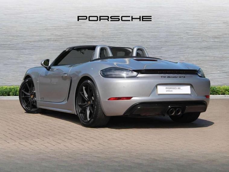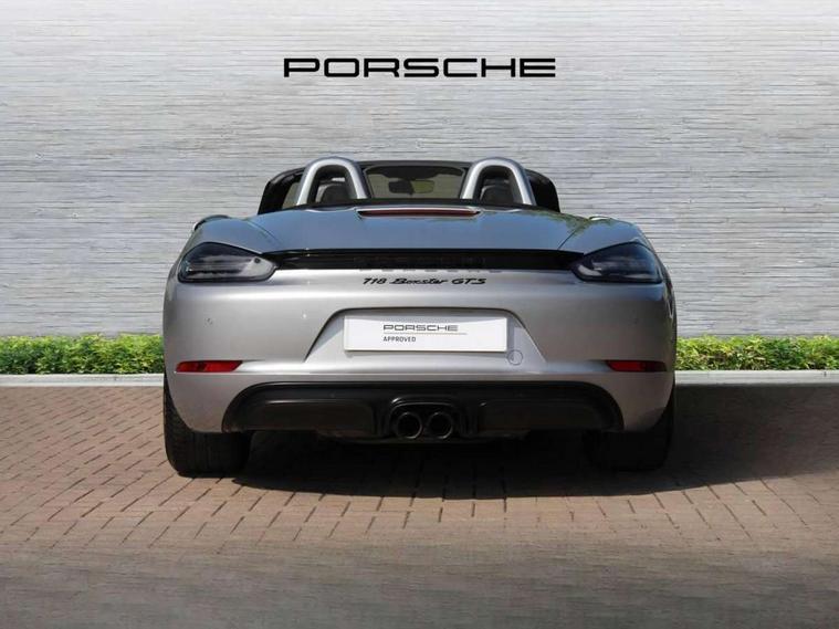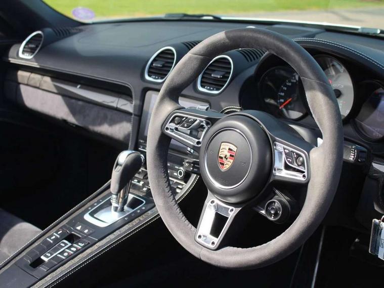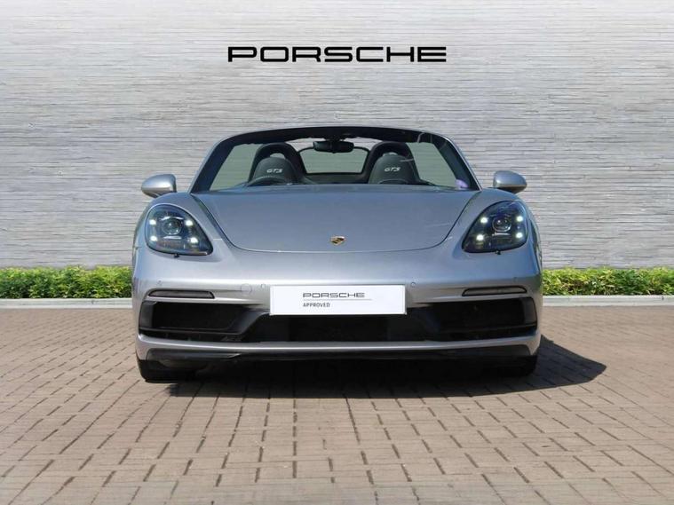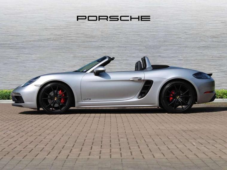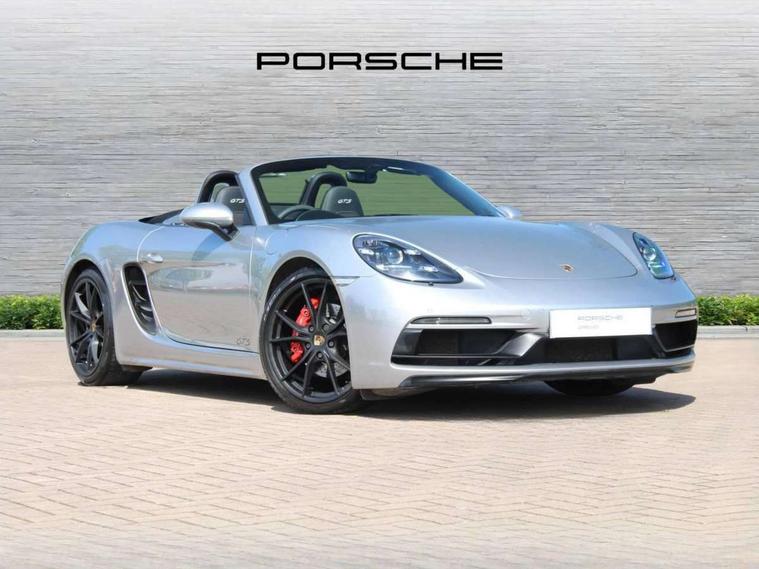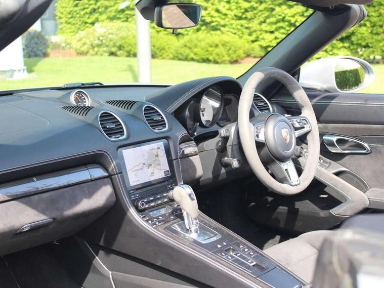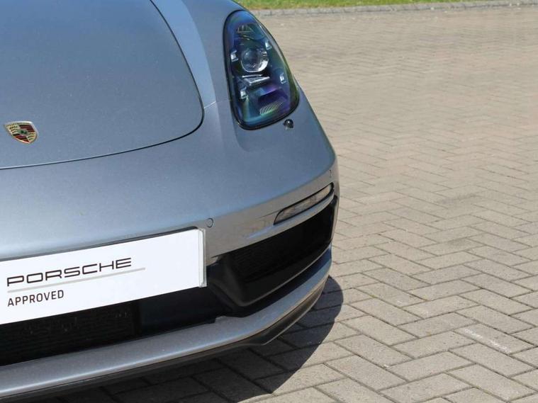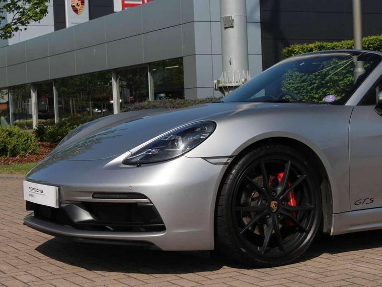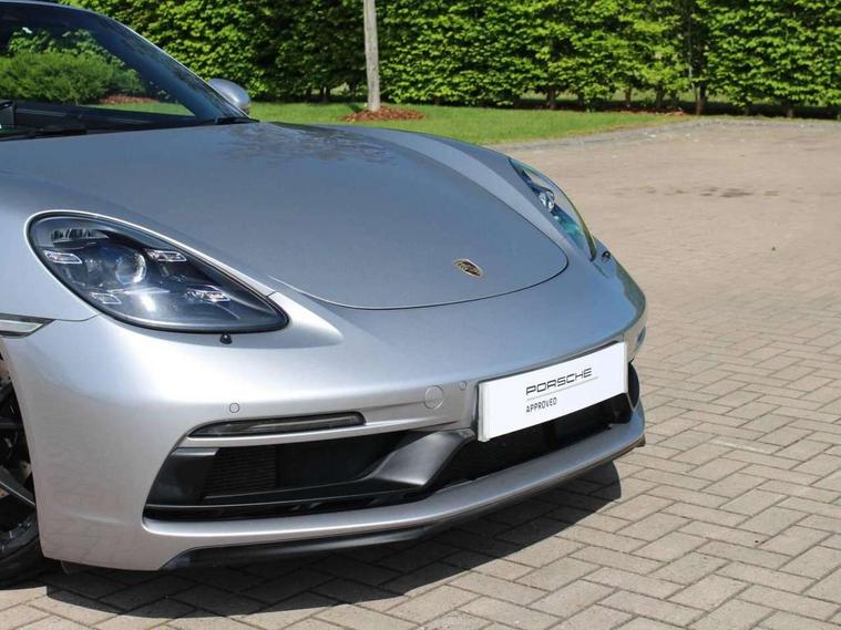 Connect Plus, Apple CarPlay, telephone module, wireless internet access, carfinder, remote vehicle status, remote service, vehicle track, Digital displays for vehicle speed, chosen gear, odometer, trip odometer and clock, Instrument cluster with central rev counter and high-resolution 4.6 inch colour display, Multi function display, On board computer, Porsche Communication Management (PCM) including online navigation module, mobile phone preparation, audio interfaces and voice control system, Porsche track precision app, 4 valves per cylinder, 64 litre fuel tank, Aluminium block and cylinder heads, Direct fuel injection (DFI), Gasoline particulate filter, Integrated dry-sump lubrication with an on-demand oil pump, Porsche Doppelkupplung (PDK), Porsche Stability Management (PSM), ABS with extended brake functions, Porsche TORQUE Vectoring (PTV) with mechanical rear differential lock, Turbocharger with variable turbine geometry (VTG) and intercooler, VarioCam Plus variable valve timing and lift, Water cooled with thermal management, DAB Digital radio, Integrated compatible SIM including Porsche Connect Services, Wifi and music streaming, Automatic headlight activation including welcome home lighting, Automatically extending rear spoiler, Body colour bumpers, Electrically adjustable heated exterior mirrors on door waist rails, aspherical on driver's side, Fully automatic fabric hood, electrically operated/heatable rigid glass rear screen, operable approx 30 mph and convenient operation by key remote, Green tinted heat insulating glass, GTS front apron partially painted in black, GTS rear apron partially painted in black, Heated rear windscreen, Intelligent lightweight body in Aluminium/Steel composite construction, LED taillights and integral 4 point brake lights and reversing lights, Net wind deflector, Power windows with one touch operation and door seal protection, Separate auxiliary lights in the front end with LED indicators and position lights, Top tinted windscreen, Twin tract sports exhaust system with black central twin tailpipe in stainless steel, Water repellent side windows, Windscreen washer system with two wiper speeds and washer jets, 12V sockets in passenger footwell and centre console storage compartment, Adjustable fan with air recirculation and defroster functions, Clothes hooks on front seat backrests, Elevated centre console with uncovered storage compartment and closed storage compartment, Footwell illumination, Front and rear luggage compartments, Front headrests, Height/reach adjust steering wheel, Hood lining in black fabric, Interior roof lining, LED reading lights, orientation, ignition lock, additionally luggage compartment and glove compartment lighting, Lockable glovebox, Storage compartments in each doors, Three way catalytic converter and on board diagnostics for monitoring emission control system, Two individual cup holders (integral to dashboard trim strip), Sport chrono package including mode switch - Boxster, 3 point automatic seatbelts, ASR, Electrically controlled parking brake, Front and rear 4 piston aluminium monobloc fixed calipers, discs internally vented and cross drilled, front/rear disc diameter, brake calipers in red, Front and rear lightweight spring strut axle, Front seatbelt pretensioners + load limiters, Full size driver and passenger airbags, Passenger airbag deactivate switch, Porsche side impact protection doors with thorax airbag in outer backrest side bolster and head airbag for driver/passenger in door panel, Tyre pressure monitoring system, Alarm system with interior surveillance, Anti-theft wheel bolts, Auto start/stop function including coasting (in connection with PDK), Engine immobiliser with in key transponder, central locking and remote control, Tyre sealing compound and electric air compressor kit,