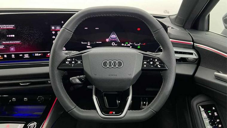 Audi application store, Audi assistant, Audi connect emergency call and service, Audi connect with Amazon Alexa Integration, Audi digital key, Audi drive select, Audi phone box with wireless charging, Audi virtual cockpit, Automatic start/stop system with coasting functionality, Bluetooth interface, Luggage compartment lid with Electric opening / closing, MMI navigation plus with high resolution 14.5" OLED touchscreen colour display, Power assisted steering, Service interval indicator, Smartphone interface includes wireless Apple carplay/Android Auto, Voice control system, Quattro with ultra technology, Sports suspension, Audi sound system impressive sound with 10 loudspeakers including centre speaker and subwoofer, 6-channel amplifier with a total output of 180 watts, DAB Digital radio, USB ports with charging function, Aluminium roof rails, Audi Matrix LED technology, Auto dimming rear view mirror, Automatic-dynamic headlight range control, Body colour door mirrors, Body coloured door handles, Dipped beam, main beam, position light, dynamic indicator and cornering light, Door mirrors - electrically adjustable, heated, folding and auto dimming on both sides, Dynamic light scenarios of the coming home/leaving home function when stationary, Electric front/rear windows, Frameless auto dimming interior rear view mirror, Front illuminated aluminium inlay door sill trims with S logo, Headlight cleaning system, LED headlights Plus incl. digital daytime running lights, turning light, all-weather light, motorway light, manouevring light and intersection light, LED rear lights pro incl. brake lights, tail lights, rear number plate lights, reversing lights, continuous light strip, LED third brake light, Privacy glass, Rain and light sensors, Rear and side windows with heat insulating glass, Rear side wing doors, Rear wiper, Roof spoiler, S line exterior styling, Sport exterior inc Radiator grille, air inlets and diffuser in scandium grey as well as inlay in diffuser in selenite silver, White rhombus logo projection light in exterior mirrors, Window trim strips in aluminium look, Windscreen with heat insulating and acoustic glazing, 3 seat bench in 2nd row, 3-spoke Sport leather steering wheel flat top and bottom with multifunction and shift paddles, 4 way electric lumbar support for driver and front passenger, 4 zone deluxe automatic climate control, 40:20:40 split folding rear seat bench with centre armrest and cup holders, Centre armrest, front- adjustable angle with four settings, Electrically adjustable front seats, Front head restraints, Heated front seats, i-Size child seat mounting on the front passenger side and outer rear seats, i-Size and top tether on the outer rear seats, Manual steering wheel adjustment, Net partition, Rear headrests, Single front passenger seat, Sport front seats, Stainless steel pedals and footrest, Steering wheel trim in chrome look, S emblem, steering wheel grips in perforated leather and contrasting stitching, Twin leather/artificial leather upholstery, Ambient lighting package plus - A6, Drive and Park assistance package - A6, Protective warning assistance package - A6, 3x3 point rear seat belts, Acoustic vehicle alerting system, Black seat belts, Convenience key with safelock, Driver and front passenger airbags, EBD - Electronic brakeforce distribution, Electric rear child safety lock, Electromechanical parking brake, Electronic Stability Control (ESC) including ABS, ASR and EDL, First aid kit with warning triangle and vests, Front passenger airbag deactivation, Seatbelt monitoring, Side airbags front with head airbag system and interaction airbag, Standard 18"steel disc brakes front and rear, Tyre pressure monitoring system, Anti theft alarm, Anti-theft wheel bolts, Immobiliser, Keyless Go, Remote central locking, Accents in the interior in aluminium look, Inlays in matt brushed aluminium with linear embossing, anthracite, Upper and lower interior elements in leatherette with contrasting stiching, Wraparound interior elements in artificial leather, Tyre repair kit,